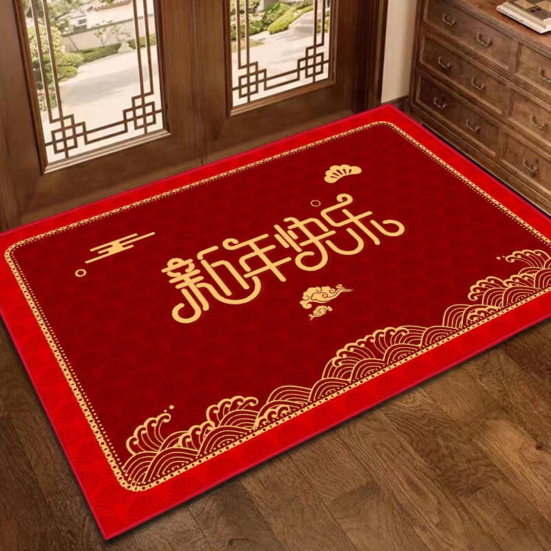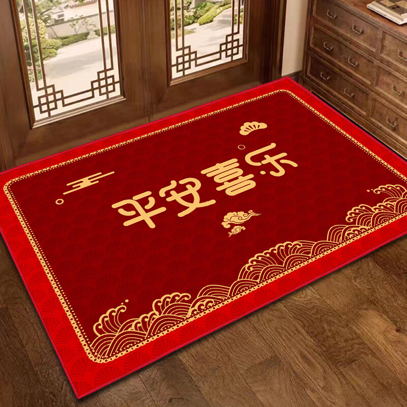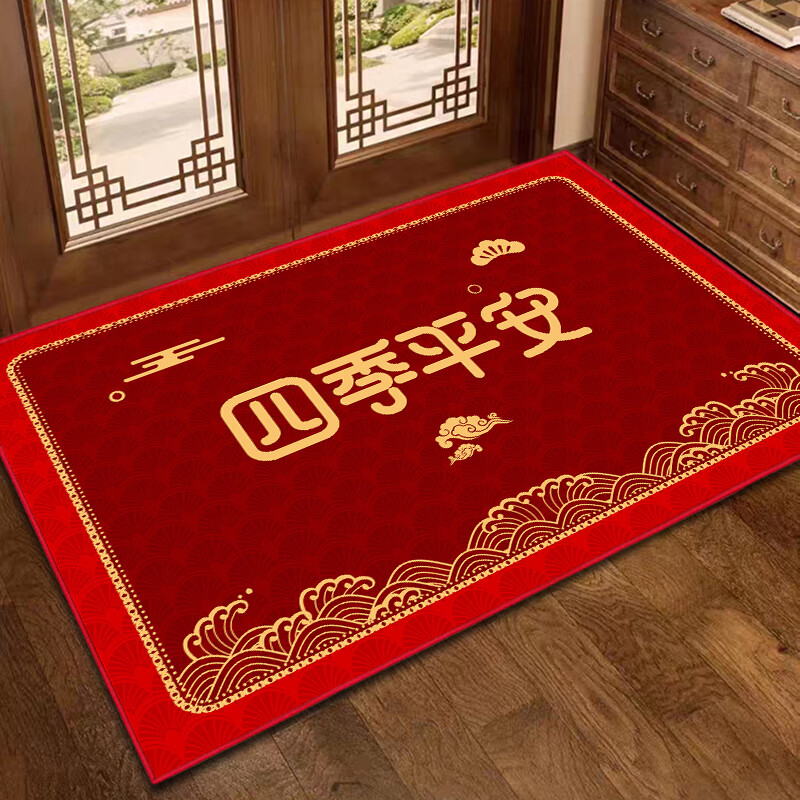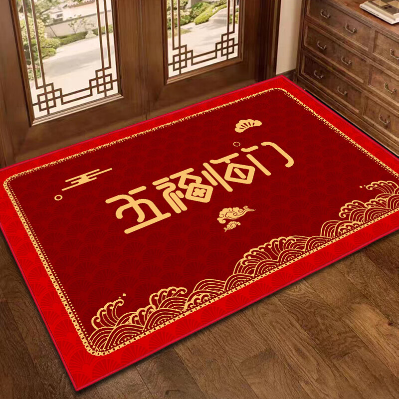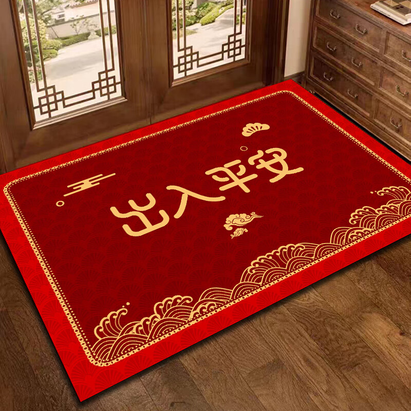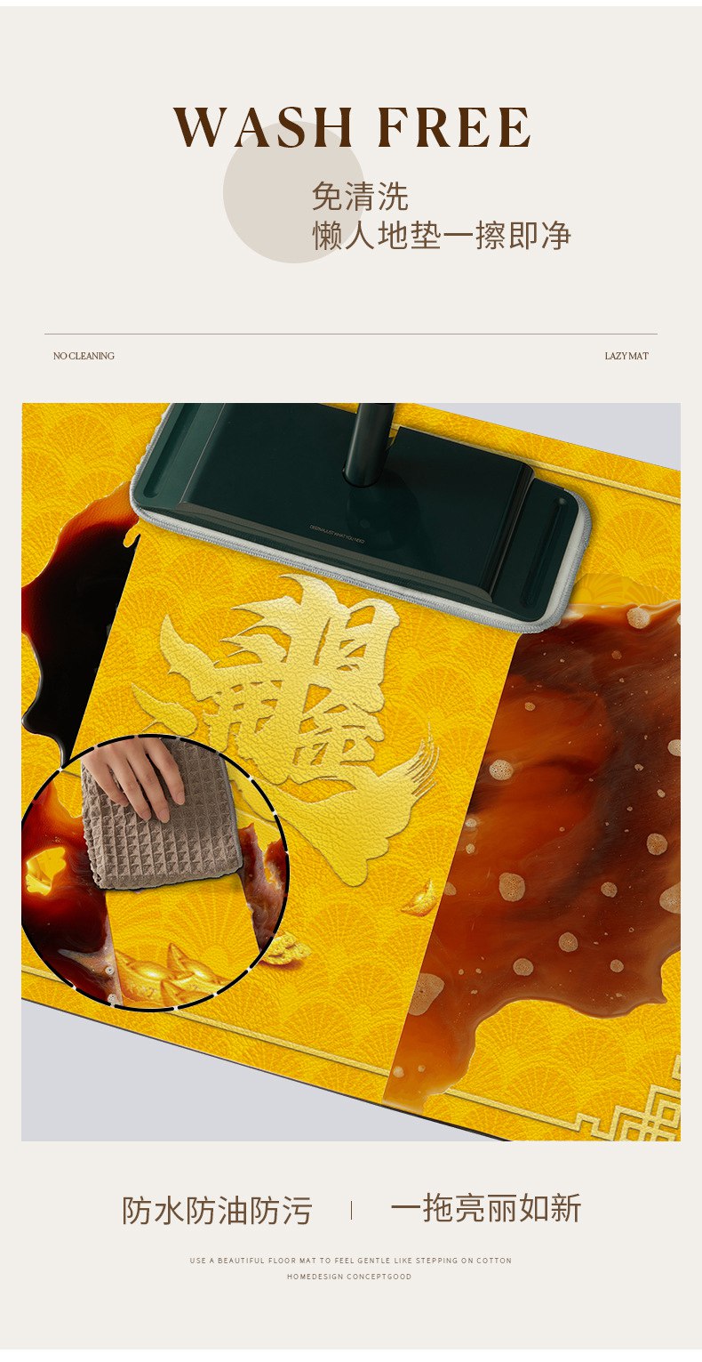 迎菲金色黄色入户门地垫脚垫2026年新款门垫进门口地垫玄关地垫可裁剪 赤金色-聚财(出入平安) 50cm*80cm 【皮革-横版】高*长