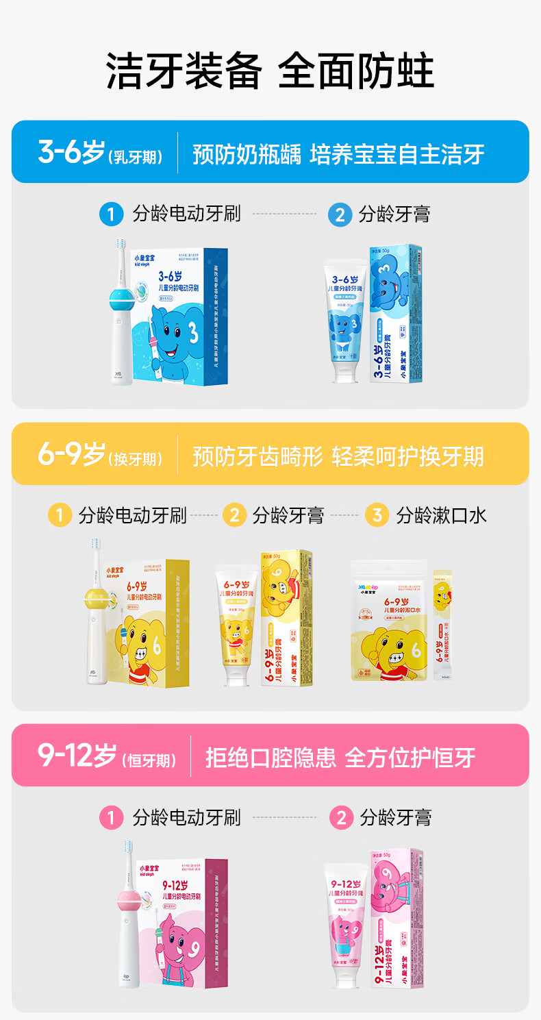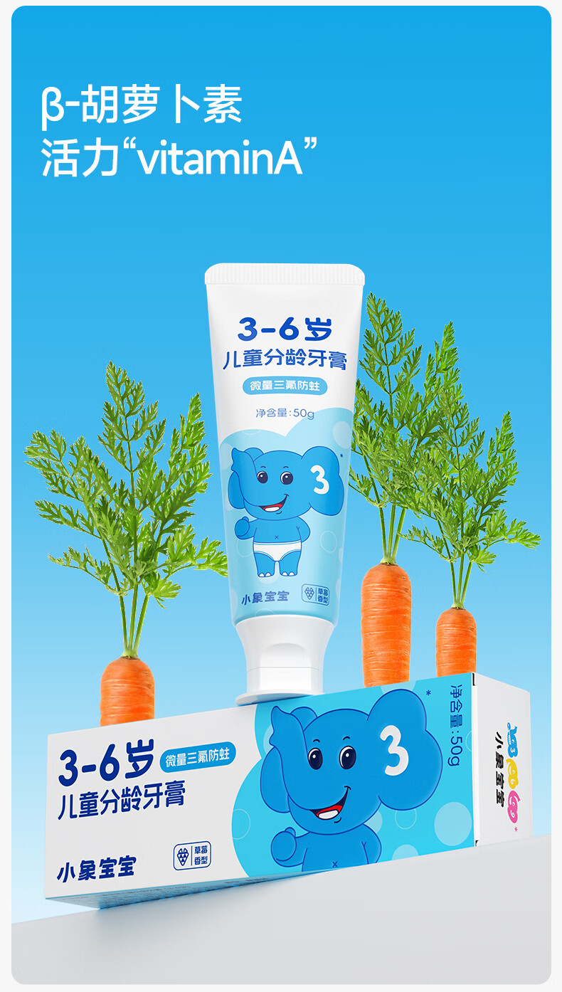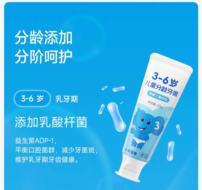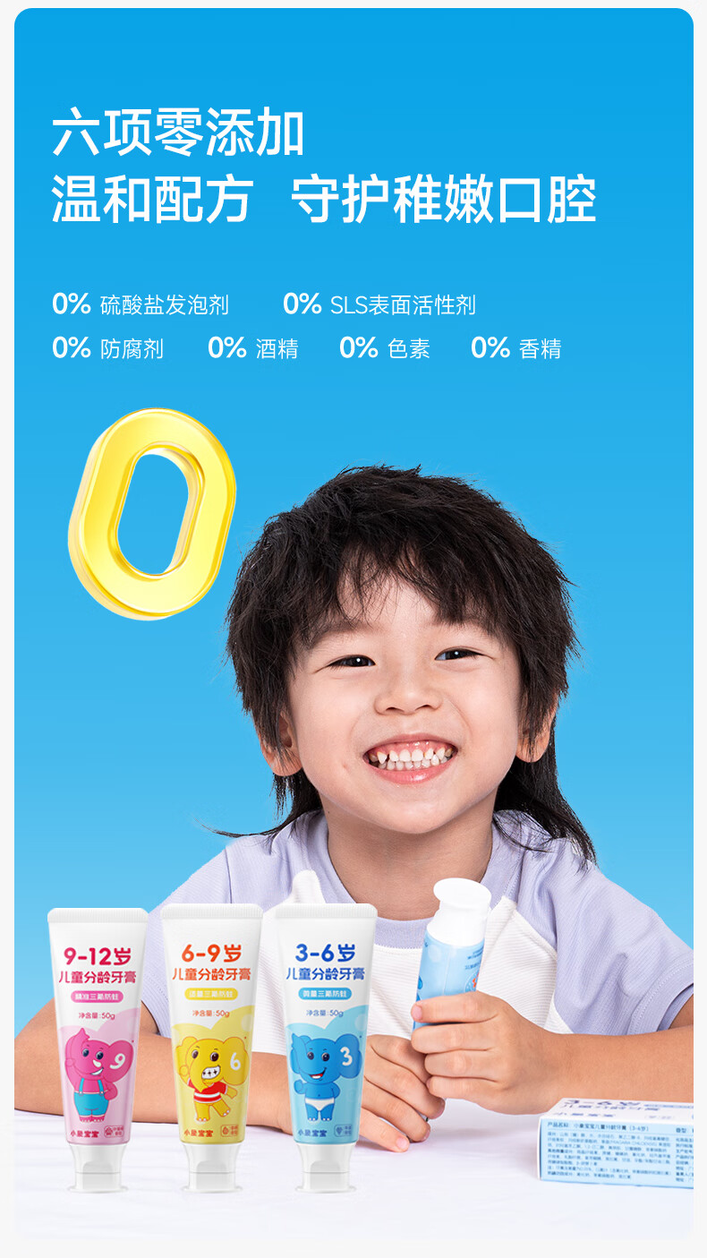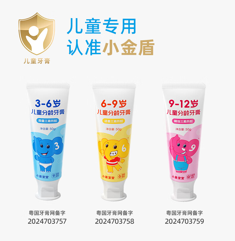 小象宝宝儿童分龄牙膏3-6岁6-9岁9-12岁含氟防蛀三氟复配儿童牙膏50g 【6-9岁】香橙味50g 2支装