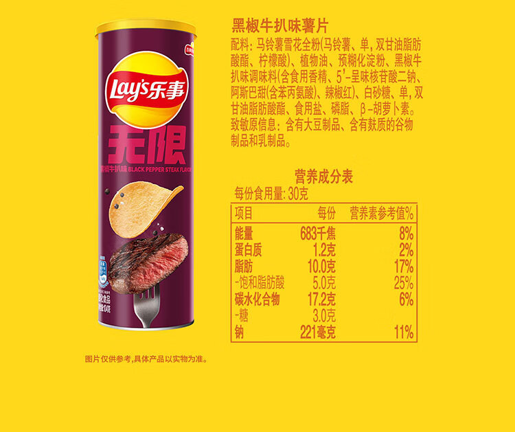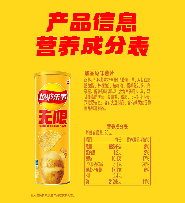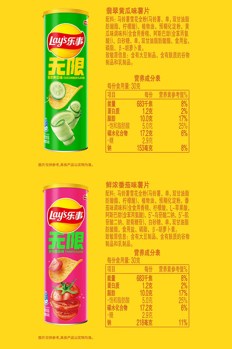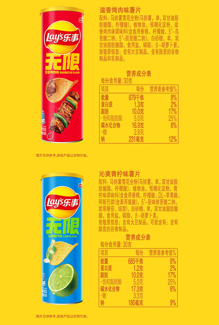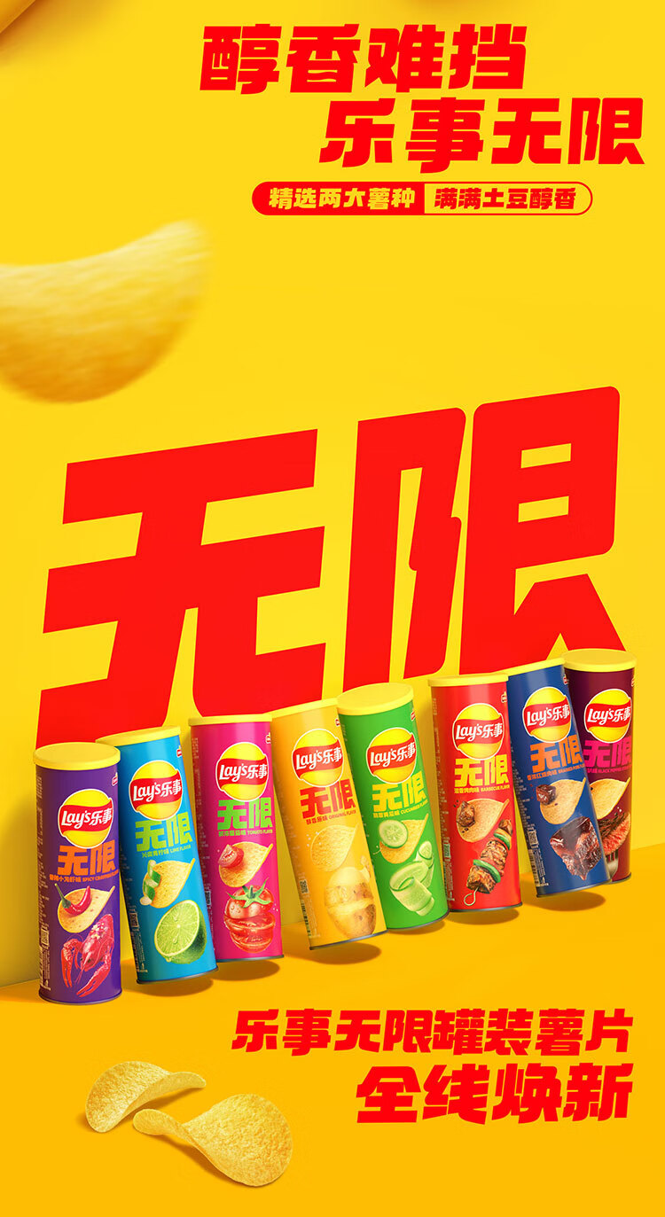 乐事(Lay's)无限薯片 沁爽青柠味 104g 罐装 膨化食品 零食 休闲食品