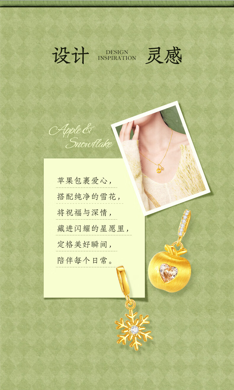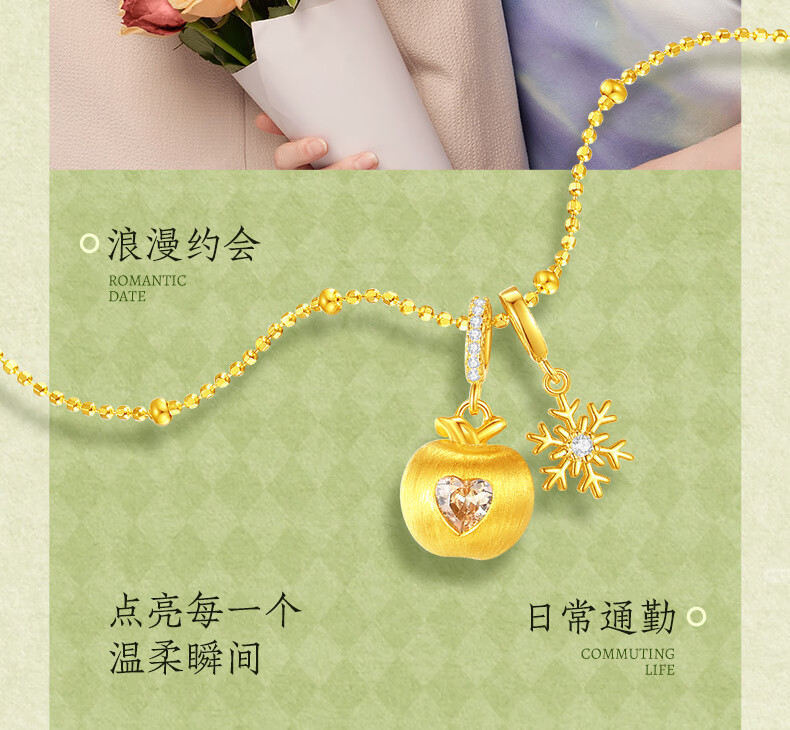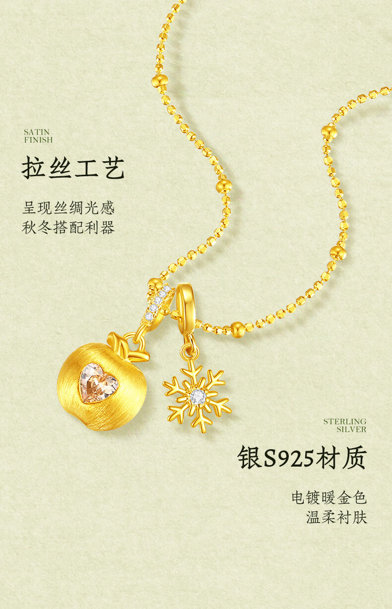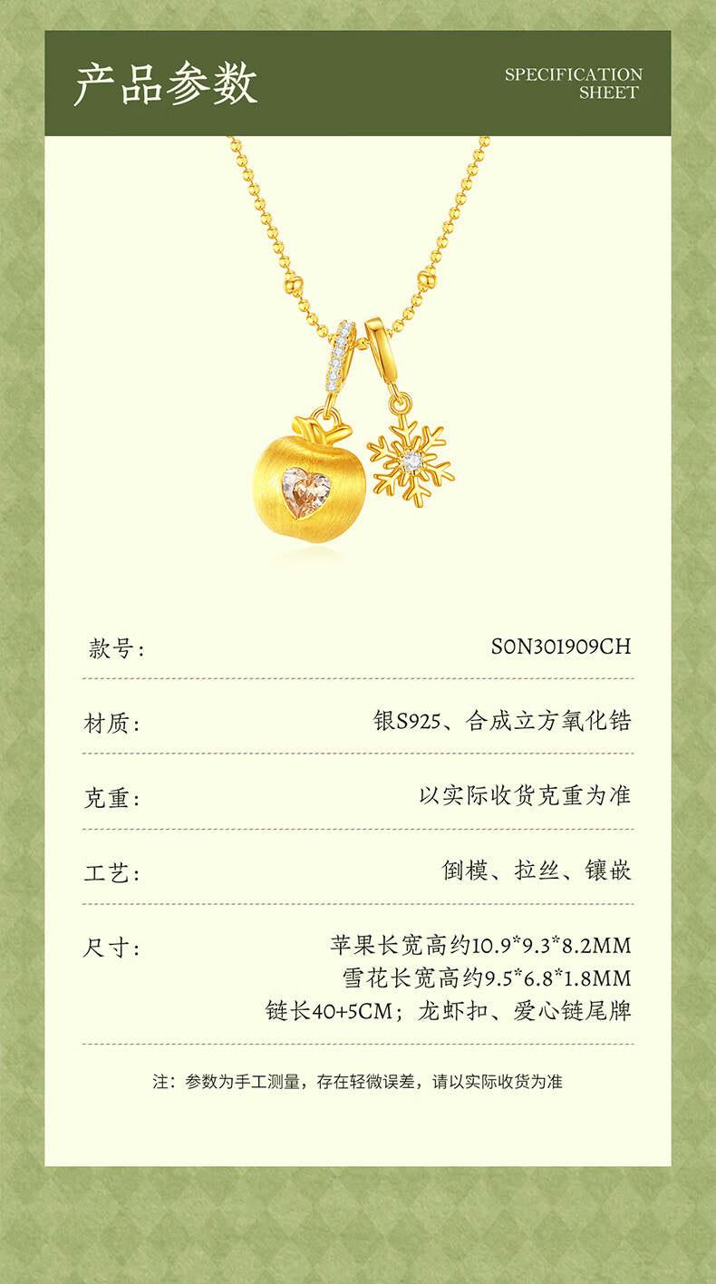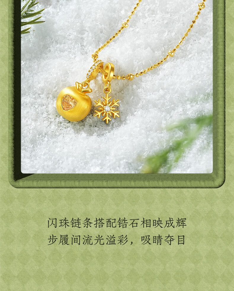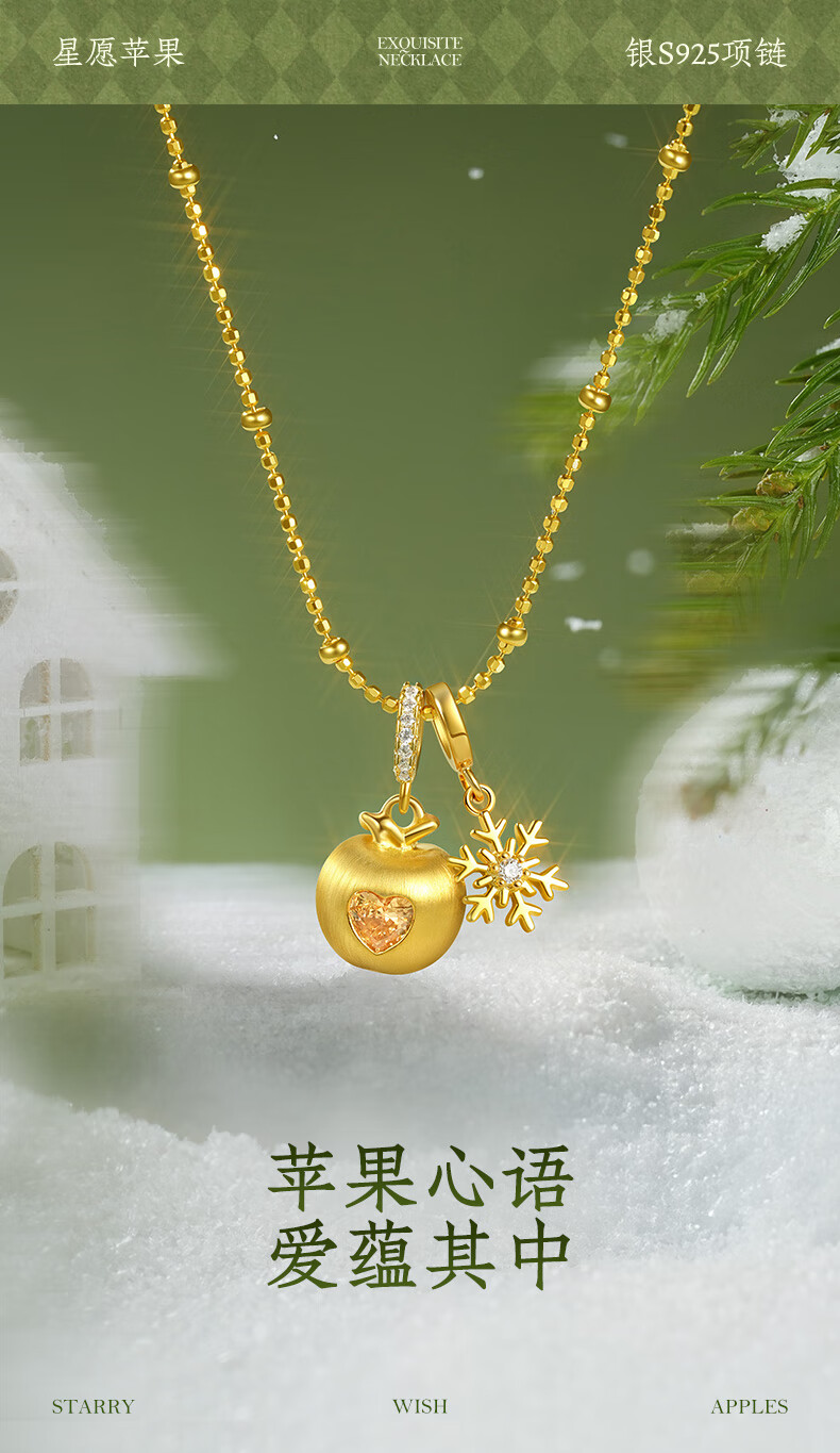 周大生【圣诞礼物】雪伴苹安拉丝苹果银项链女雪花吊坠高级感生日送女友 星愿苹果银项链