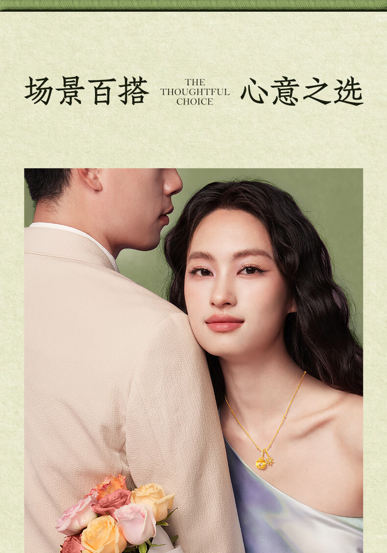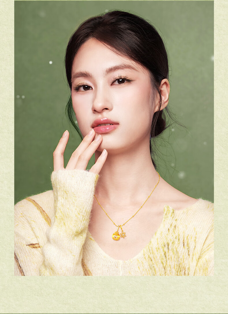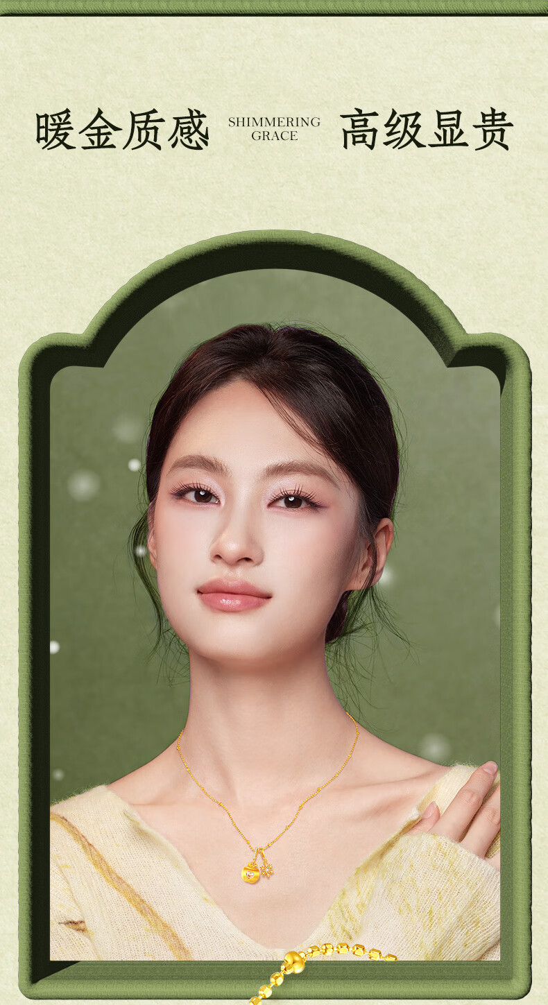 老凰祥足银999描金牡丹花吊坠女款国风中式纯银项链民族风毛衣链 足银牡丹花银珠款20克