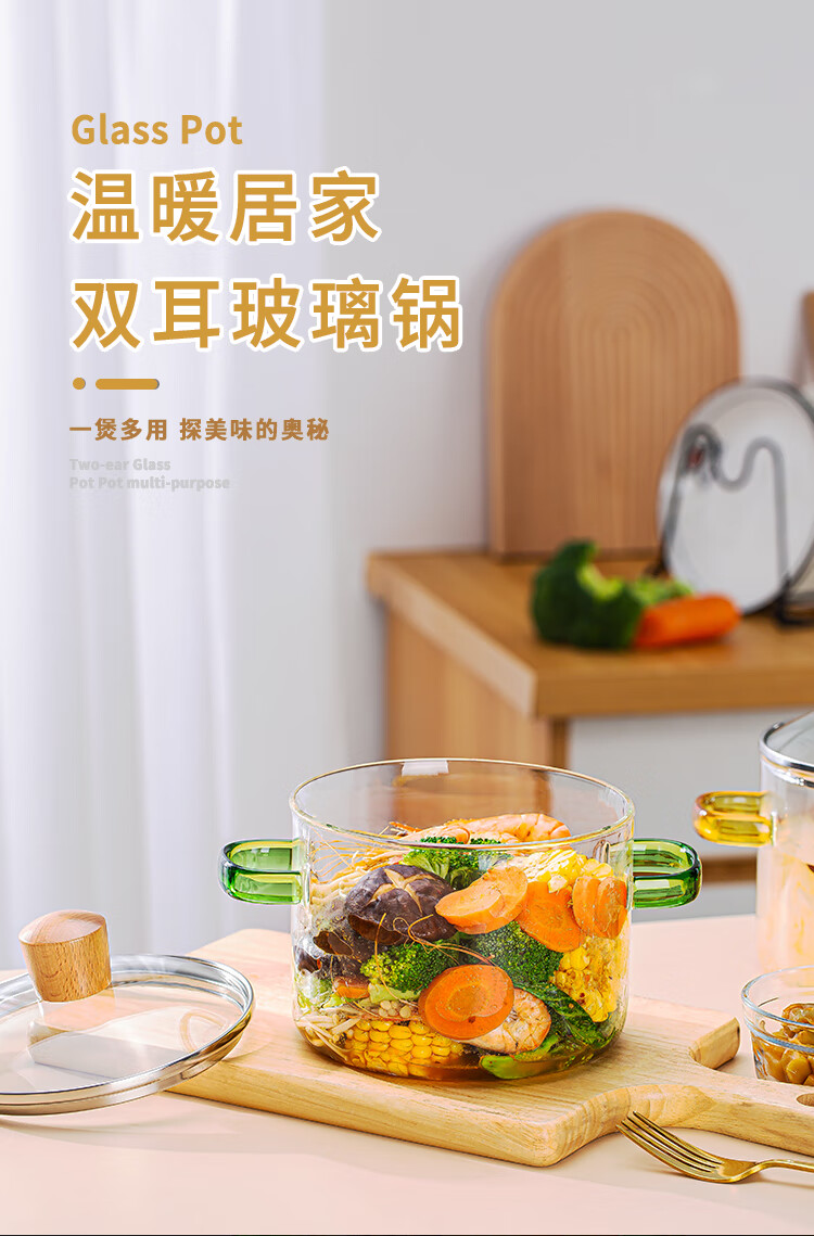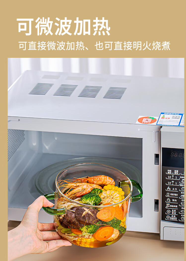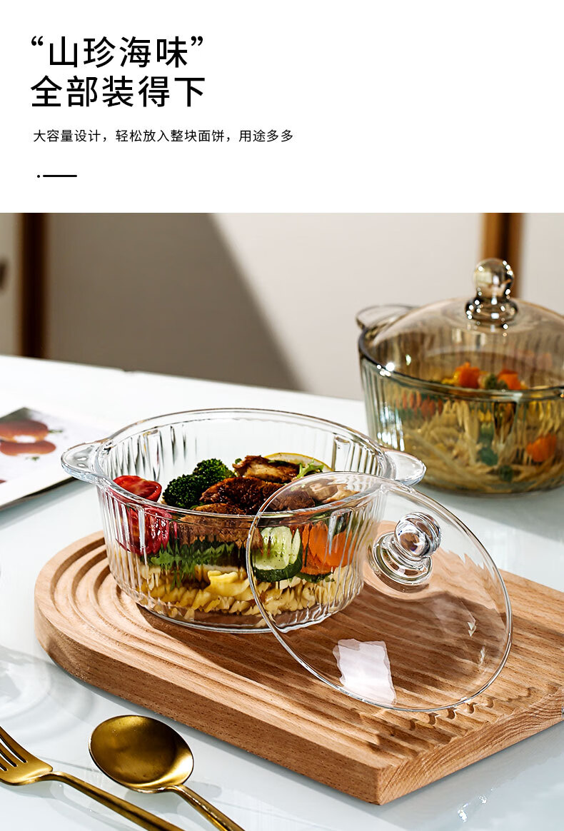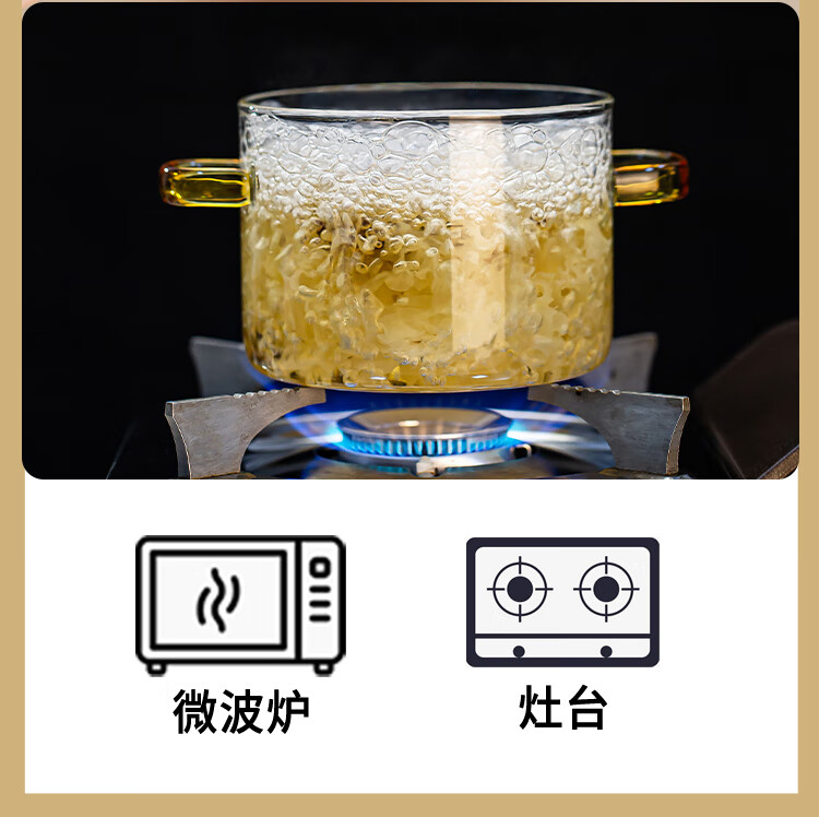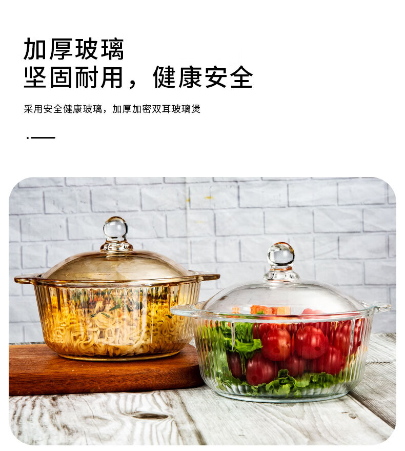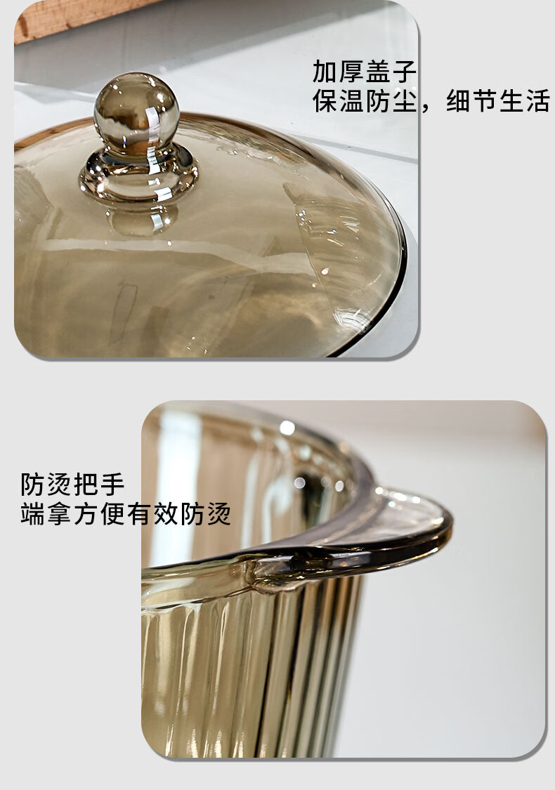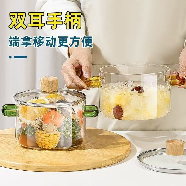 简漾耐热高硼硅玻璃碗炖锅有盖泡面碗炖汤煲带盖双耳碗煤气加热煲汤锅 1.6琥珀色把手煲 1cm