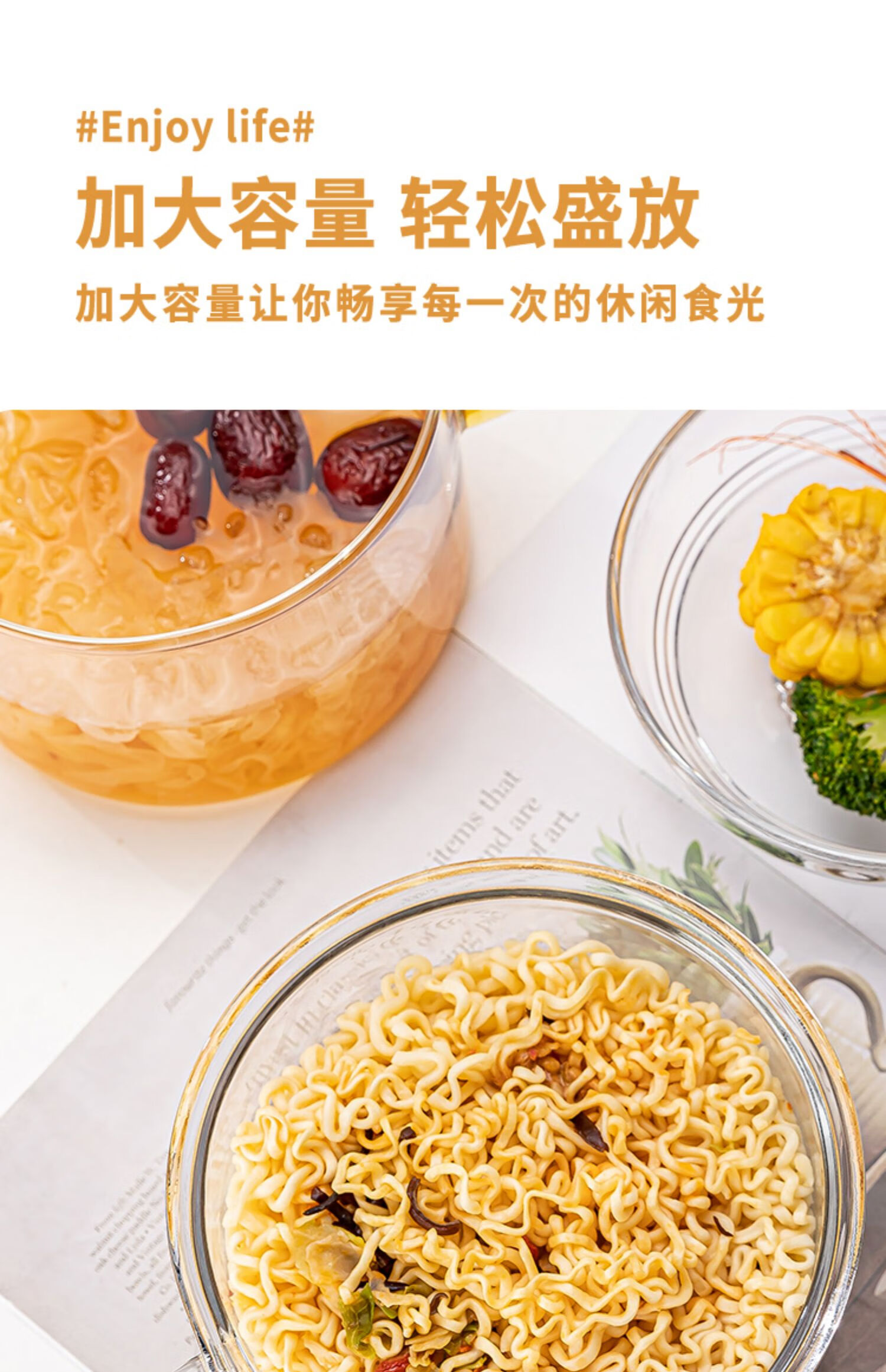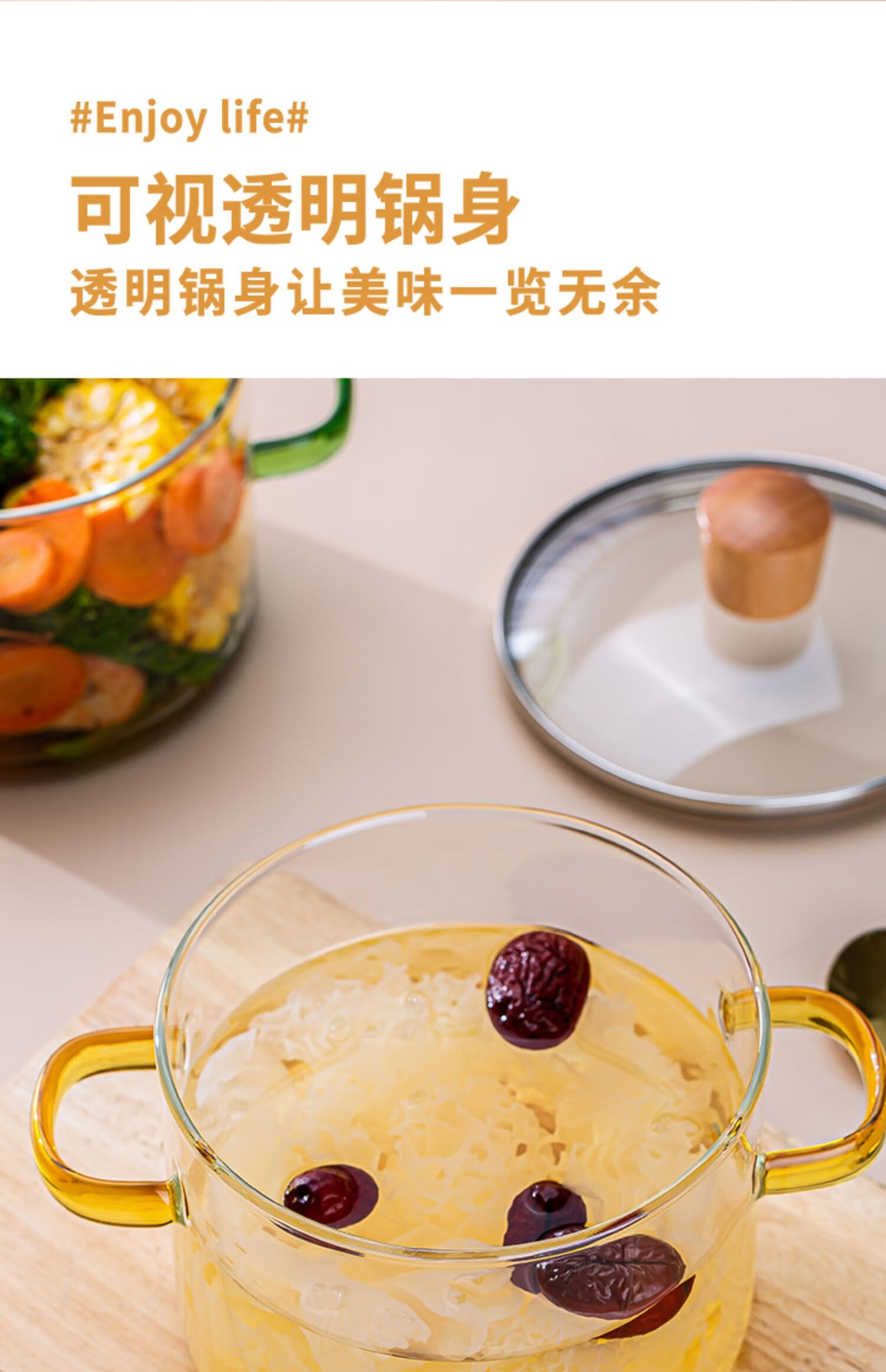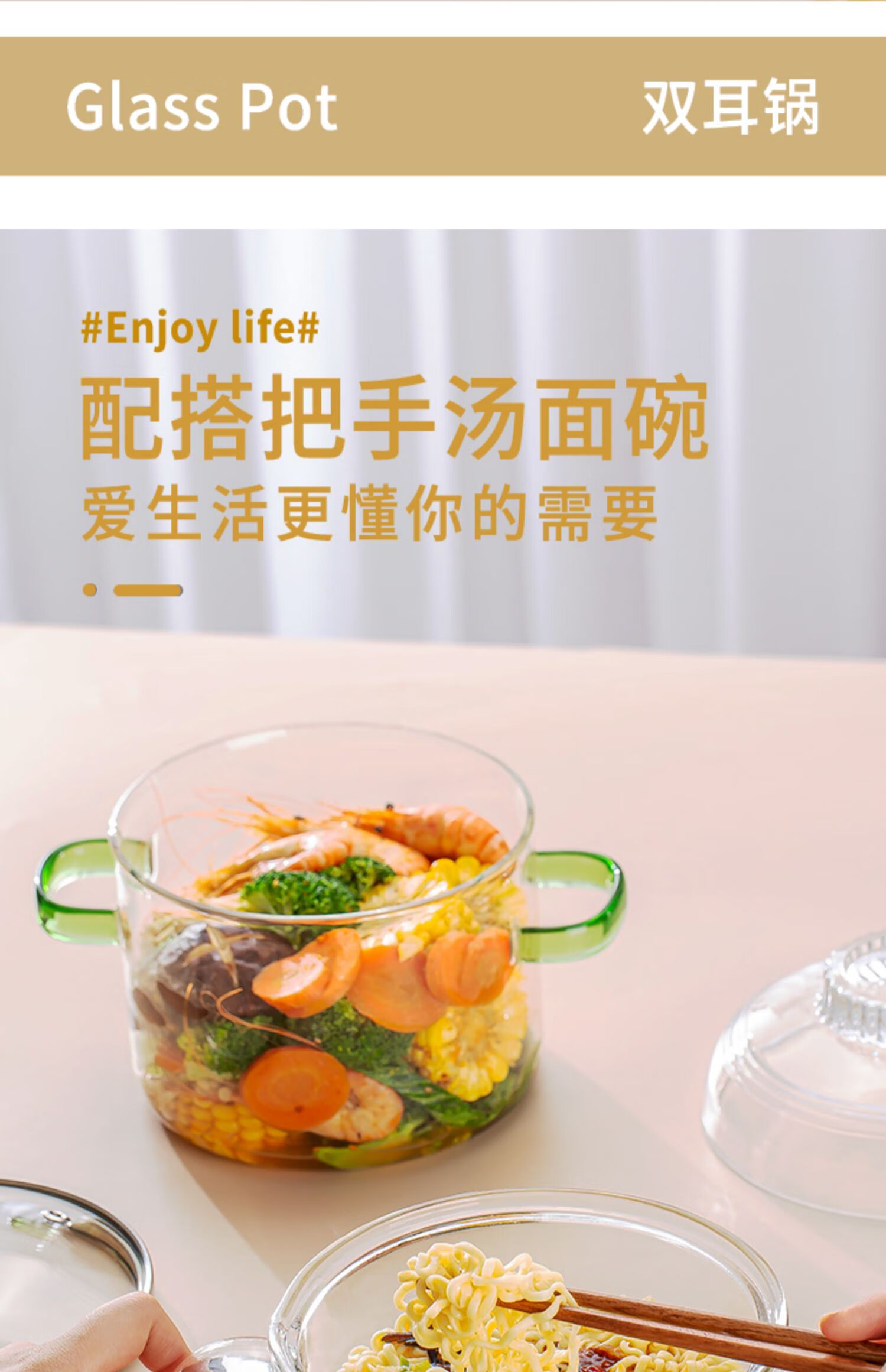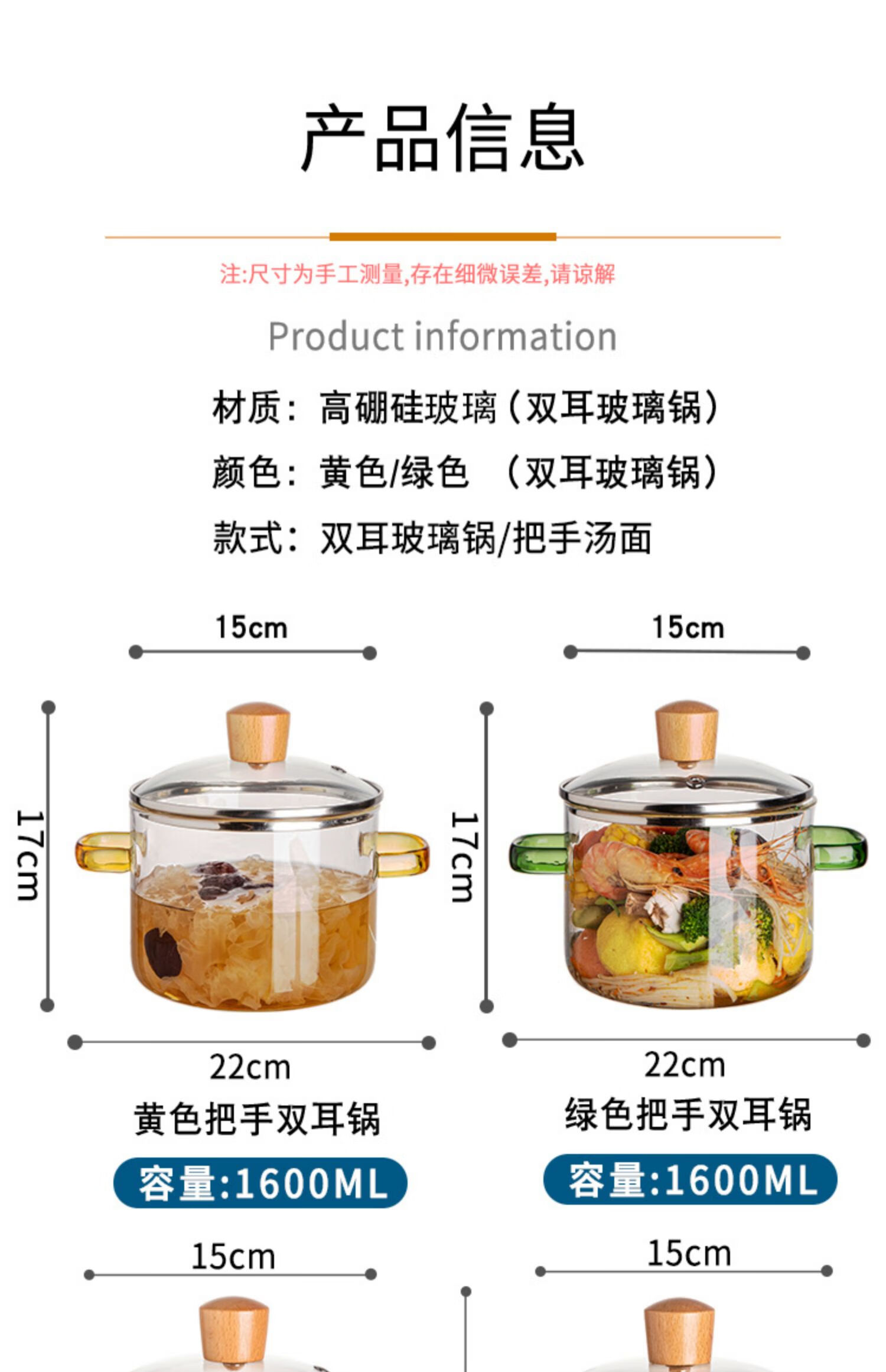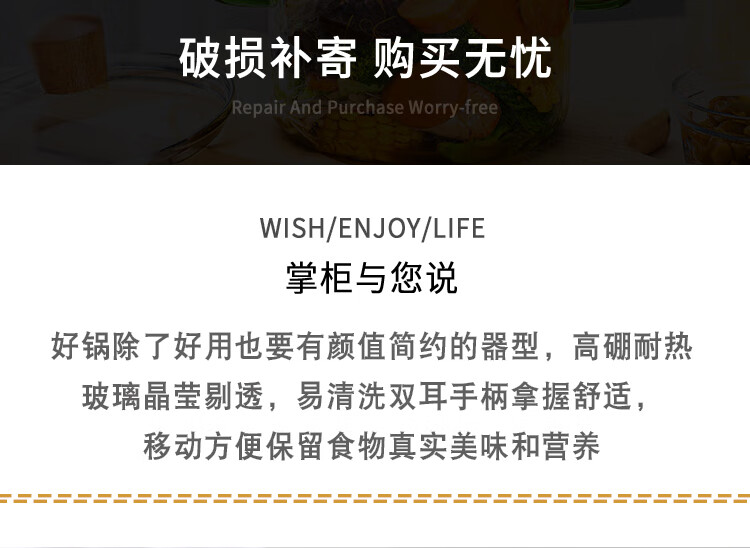 简漾耐热高硼硅玻璃碗炖锅有盖泡面碗炖汤煲带盖双耳碗煤气加热煲汤锅 1.6琥珀色把手煲 1cm