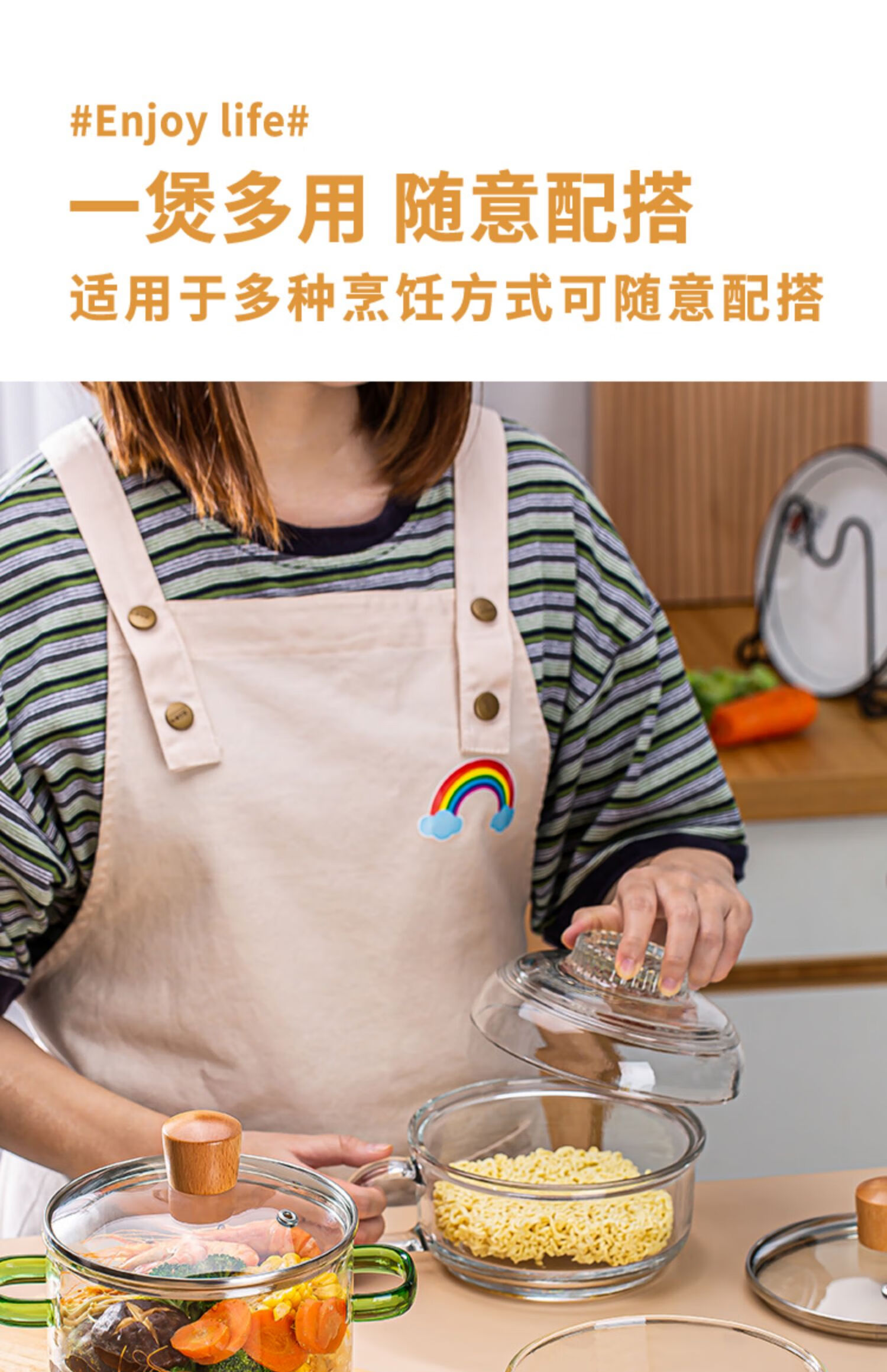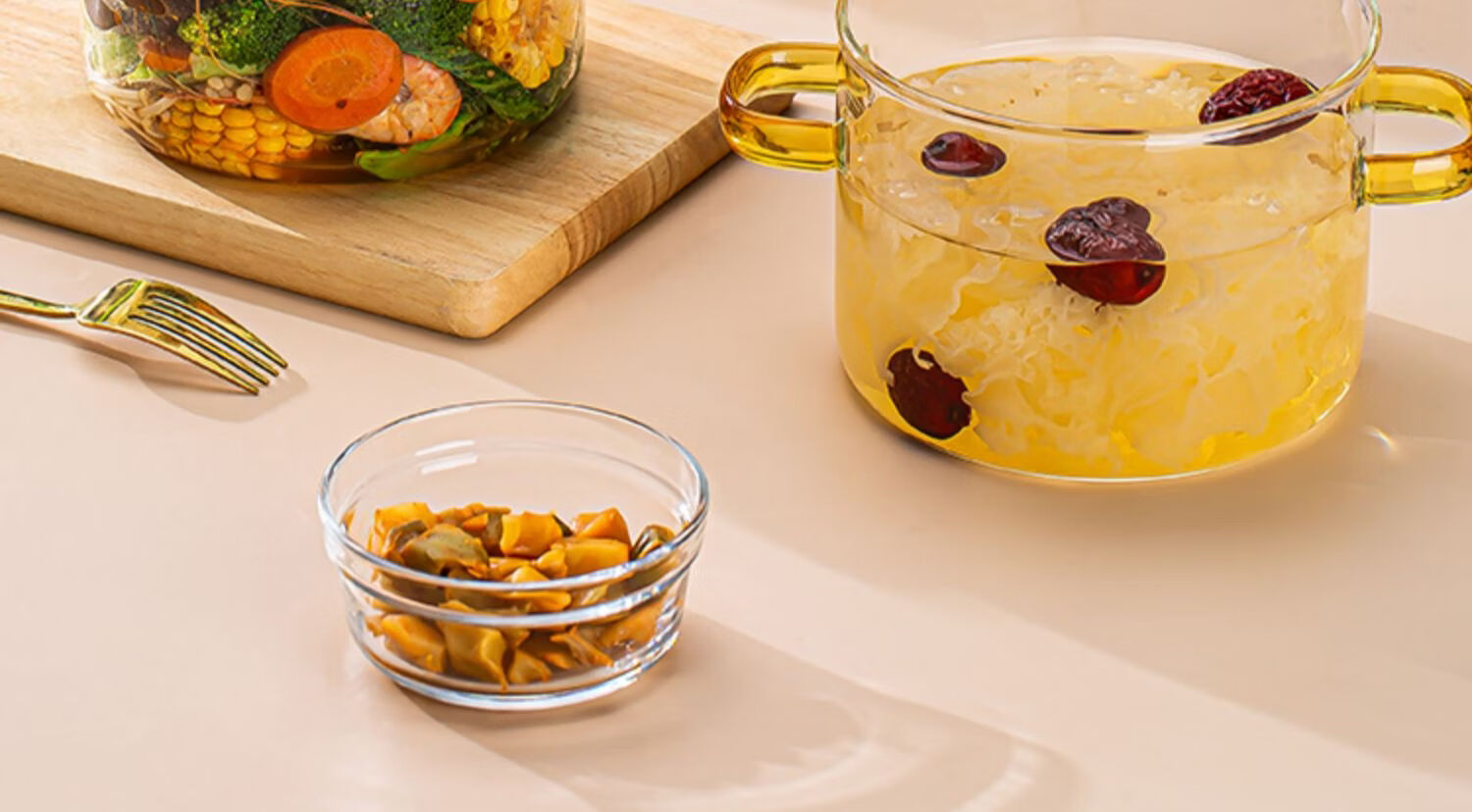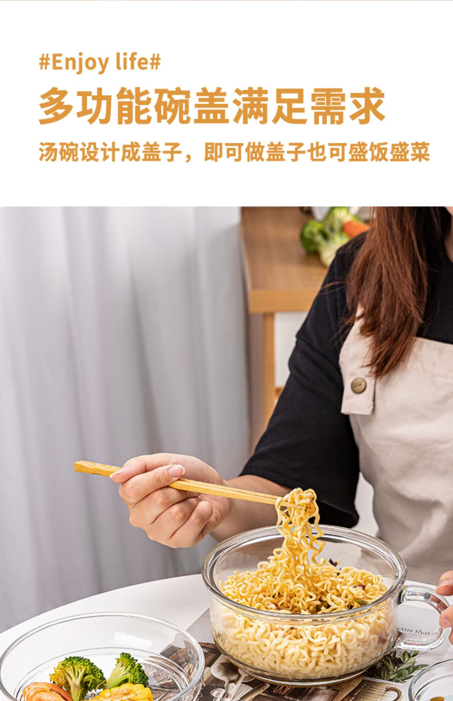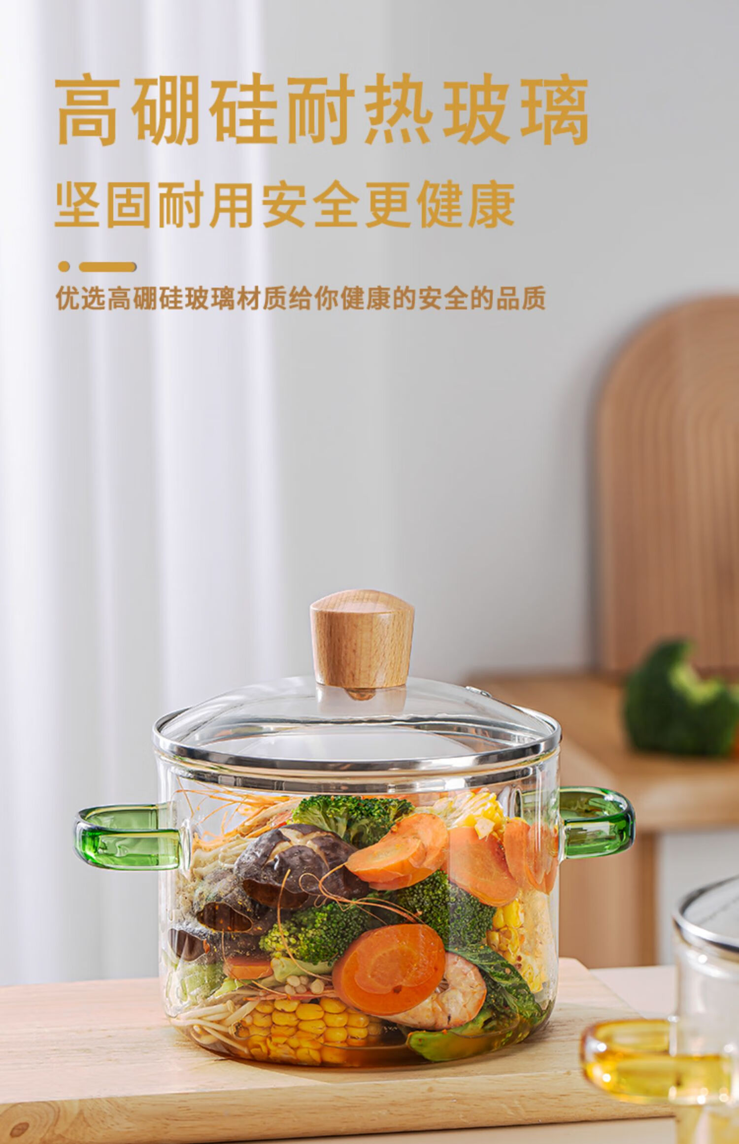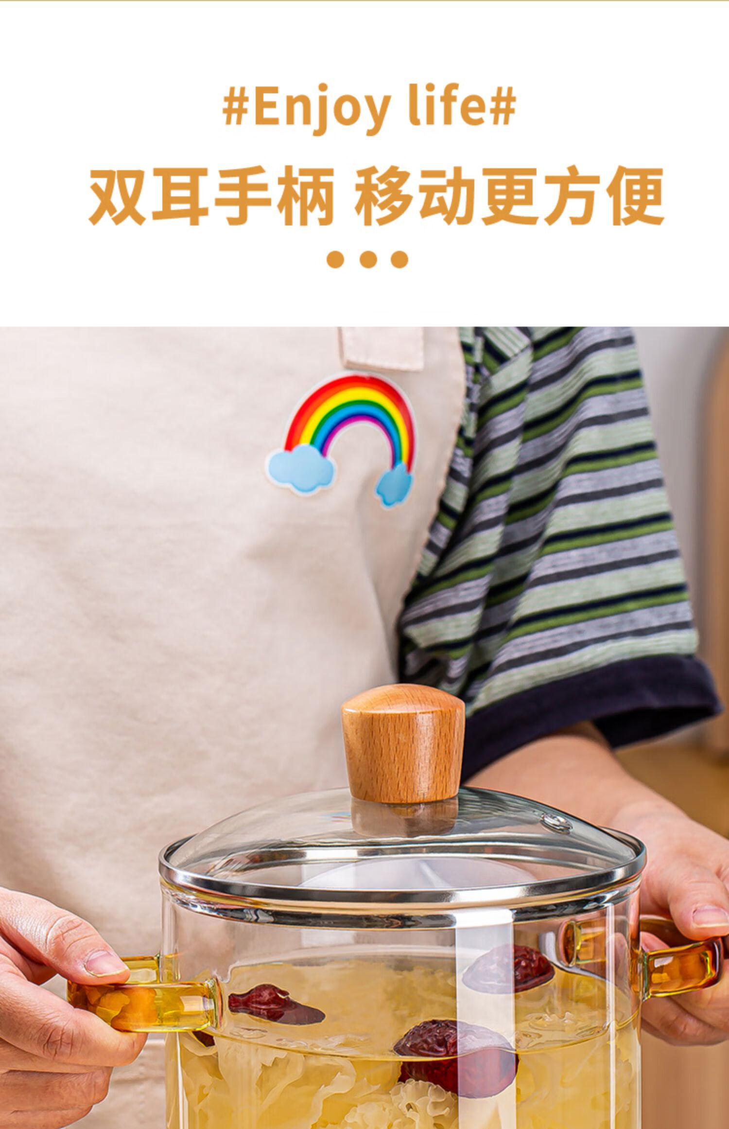 简漾耐热高硼硅玻璃碗炖锅有盖泡面碗炖汤煲带盖双耳碗煤气加热煲汤锅 1.6琥珀色把手煲 1cm