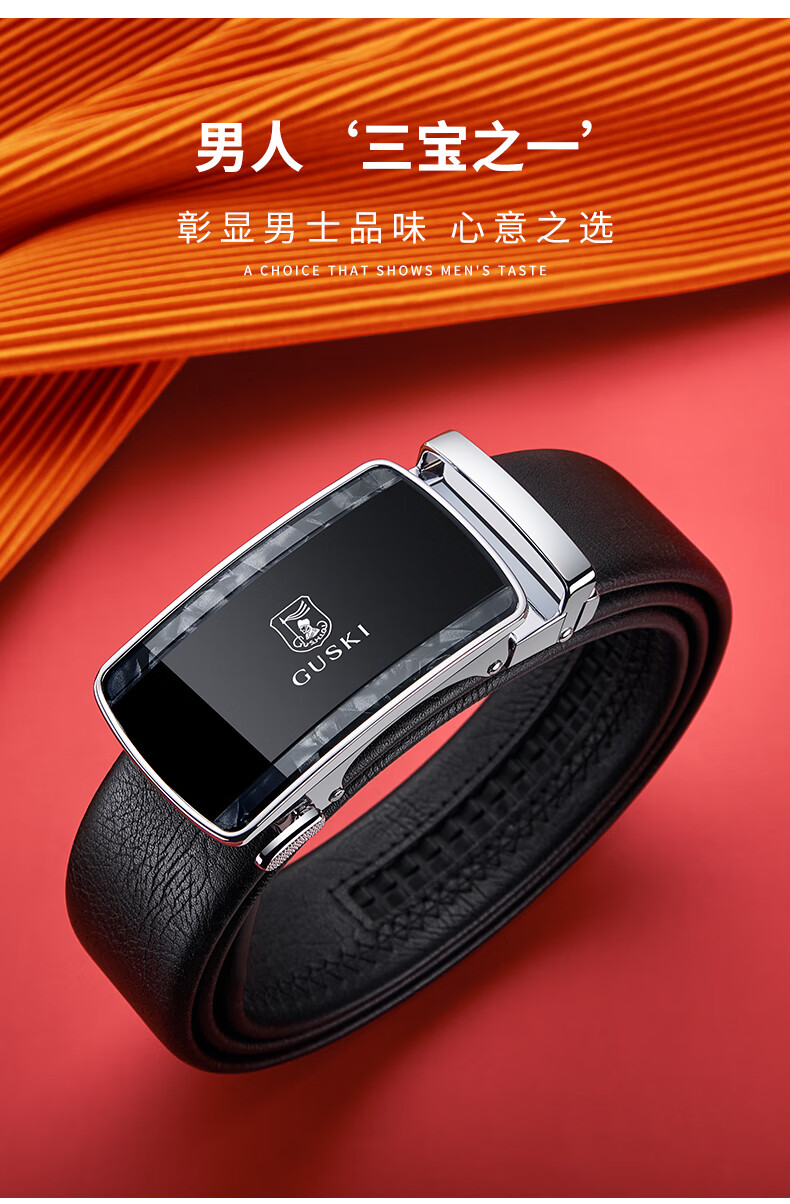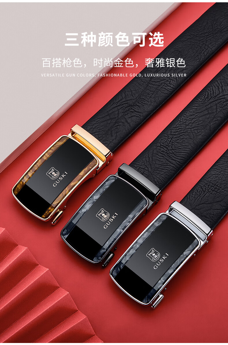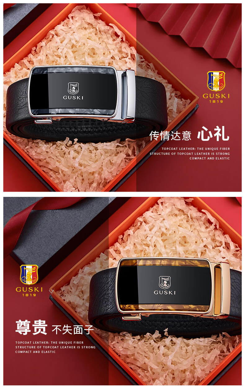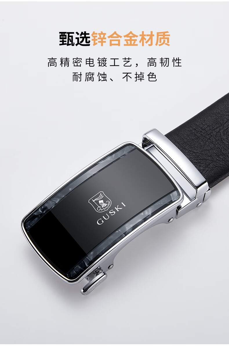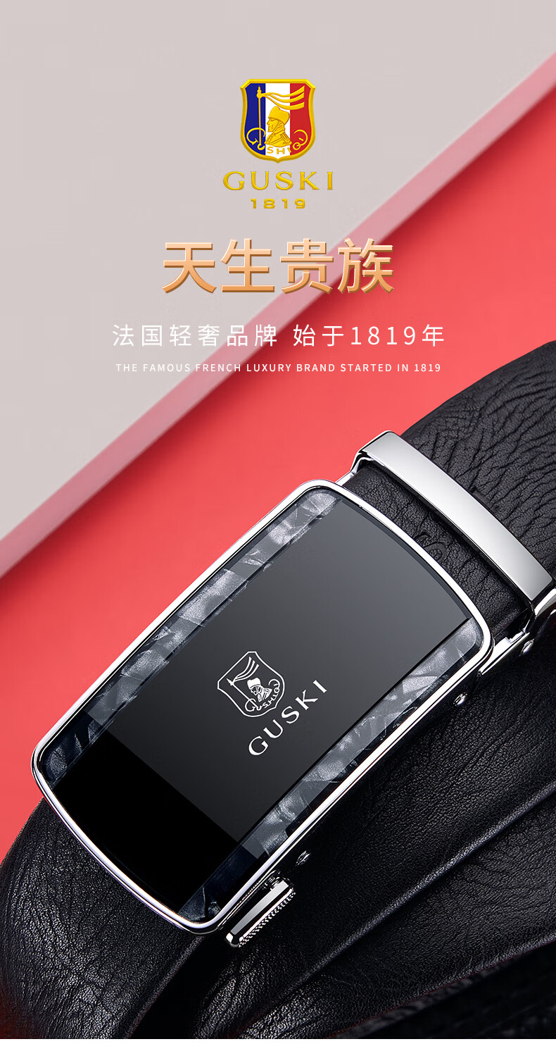 古士旗(GUSKI)法国品牌皮带男真皮自动扣男士裤腰带高档生日礼物送男友老公 银边+头层牛皮【专柜礼盒】 115cm -130cm随机联系客服指定
