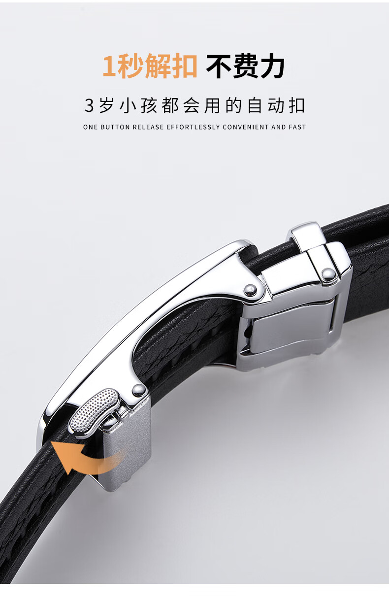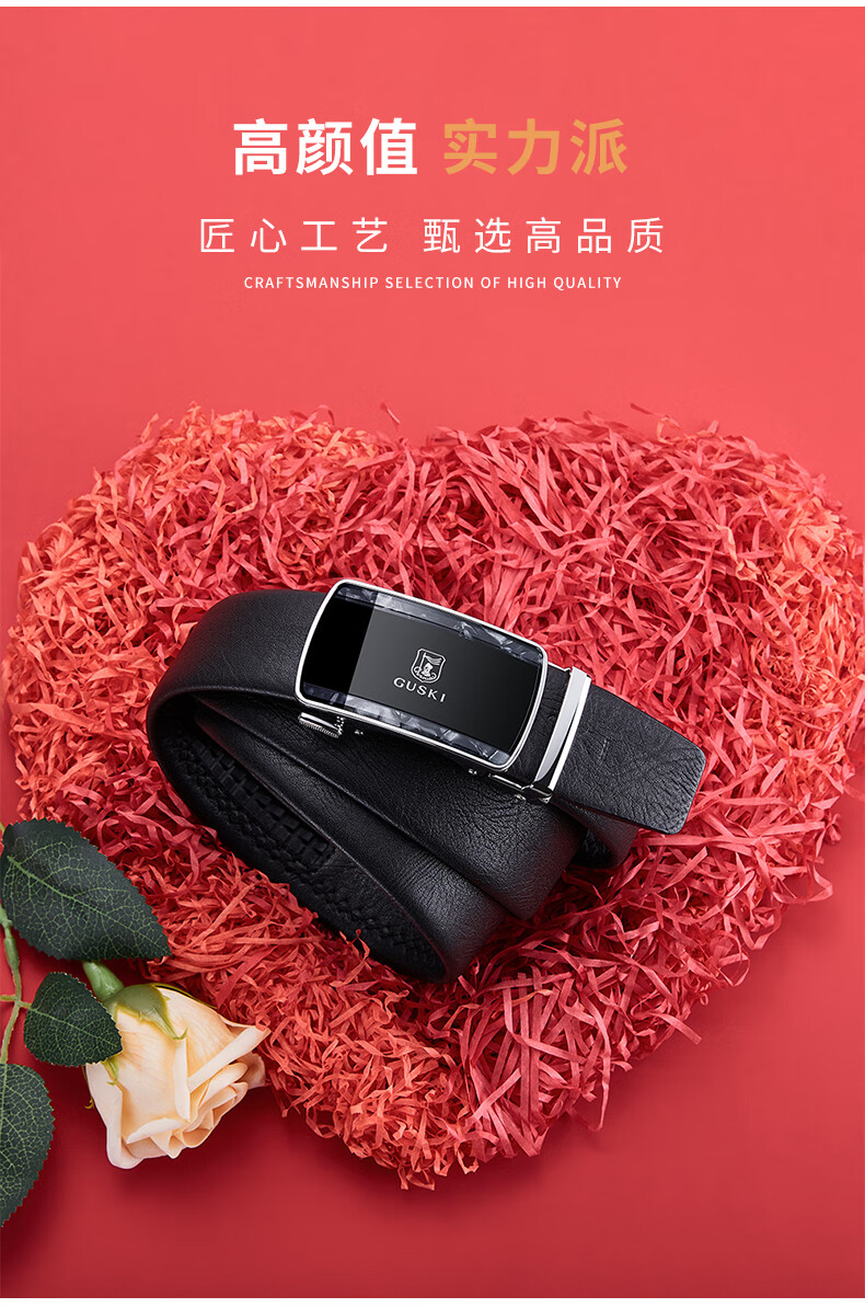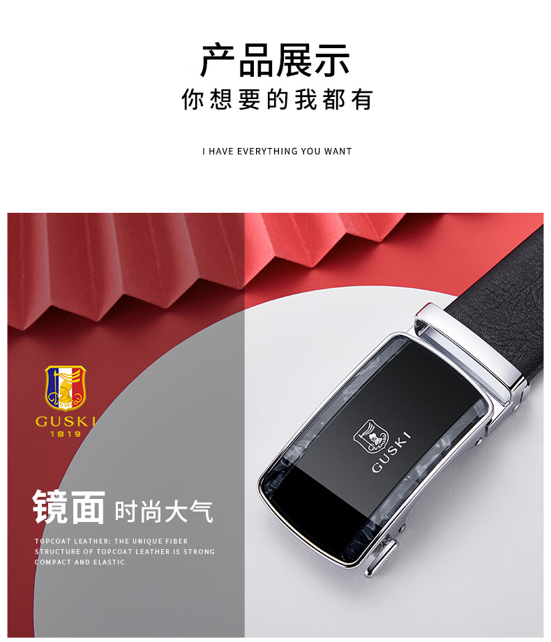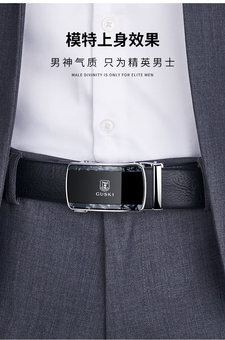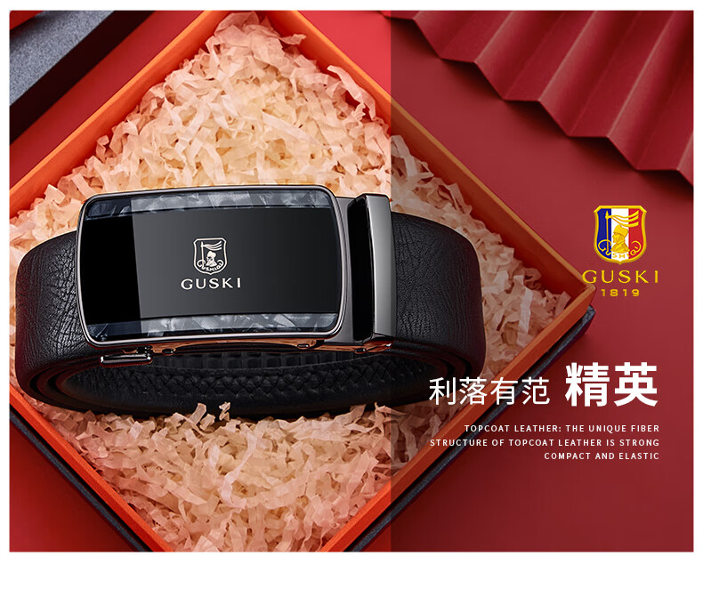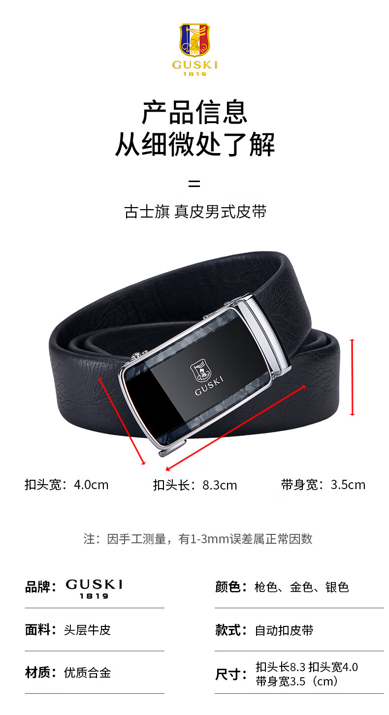 古士旗(GUSKI)法国品牌皮带男真皮自动扣男士裤腰带高档生日礼物送男友老公 银边+头层牛皮【专柜礼盒】 115cm -130cm随机联系客服指定
