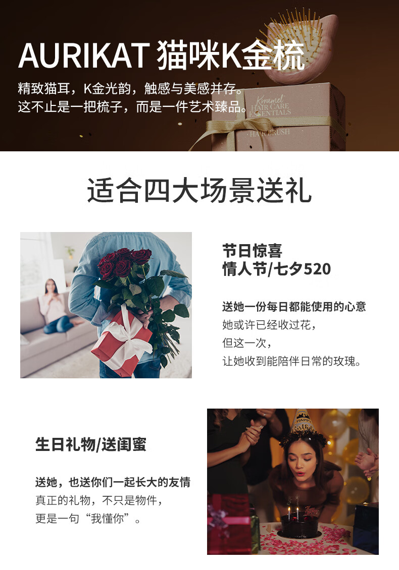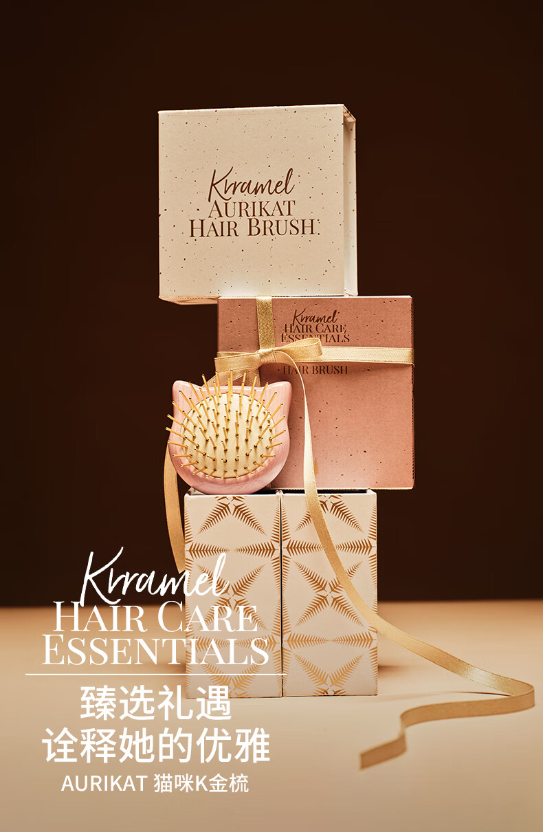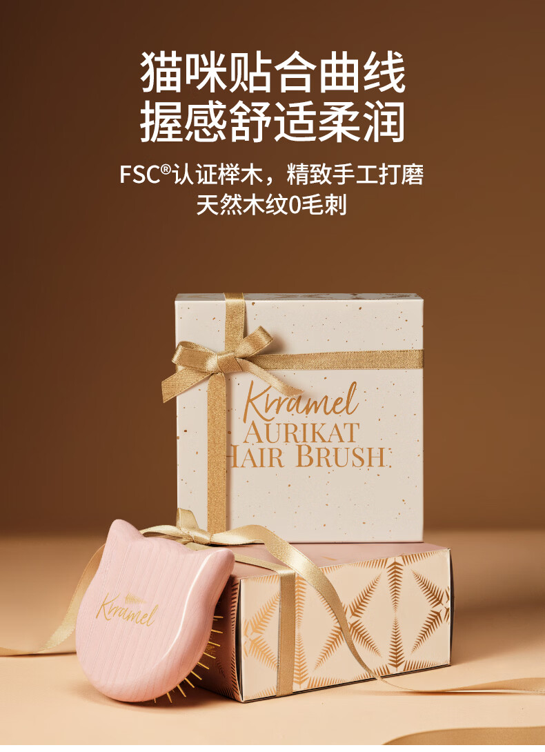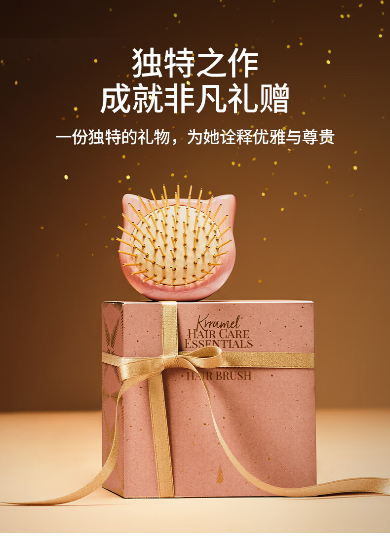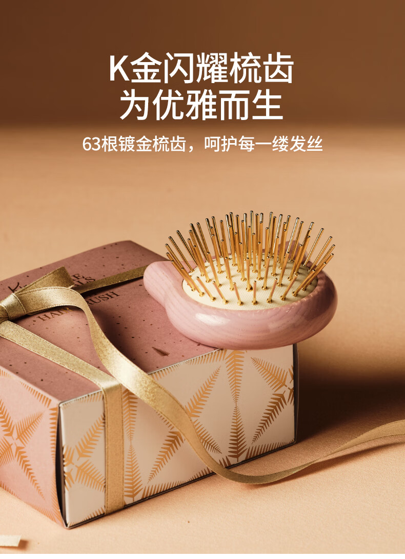 KRRAMEL生日礼物女士猫咪K金梳子实用气垫梳按摩梳送闺蜜新婚礼物 豌豆K金梳(粉色)(赠送K金美肤板)