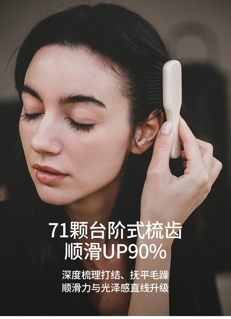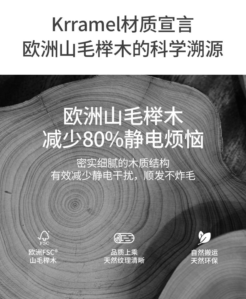 KRRAMEL生日礼物士梳子防静电进口醋酸扁平发夹盘发实用送妈妈 中号【松塔梳】-原木色+椭圆【醋酸发夹】-云岫灰