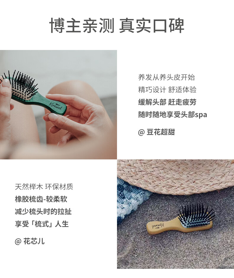 KRRAMEL新款迷你便携小梳子气垫梳蓬松颅顶随身携带儿童专用梳子 【橄榄木】迷你便携梳12cm((含贺卡,可代写))