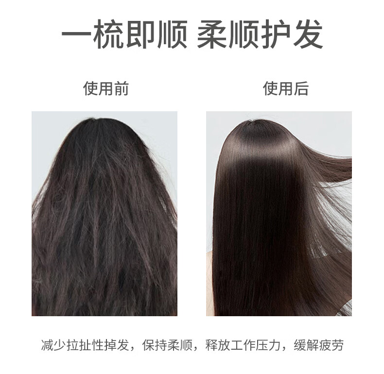 KRRAMEL生日礼物女士梳子防静电进口醋酸扁平发夹盘发实用送妈妈送闺蜜 中号[松塔梳]-原木色+椭圆[醋酸发夹】-云岫灰