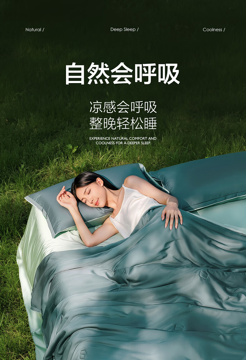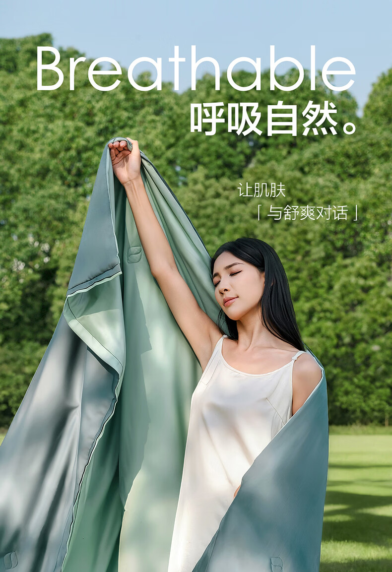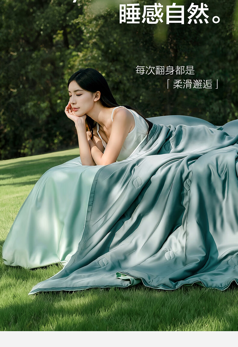 水星家纺被子夏凉被 空调被可机洗凉感天丝棉夏被 A类夏被 植愈舒爽【60S莱赛尔纤维/A类抑菌】绿 200cm*230cm