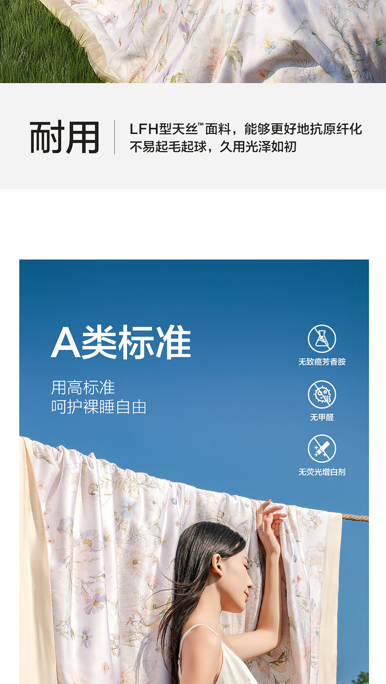 水星家纺四件套床上A类天丝™棉凉感莱赛尔被套枕套床单26年新款套件 境·马上发财 床单款 (被套150*210cm)
