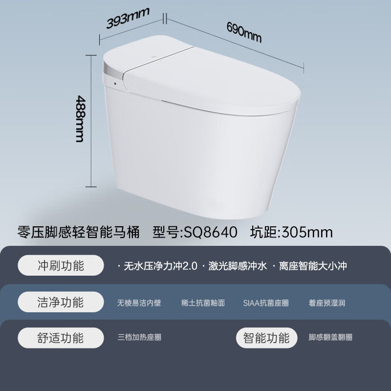 九牧(JOMOO)轻智能马桶无水压限制脚感翻盖翻圈无棱内壁SQ8640-SA-CJM305
