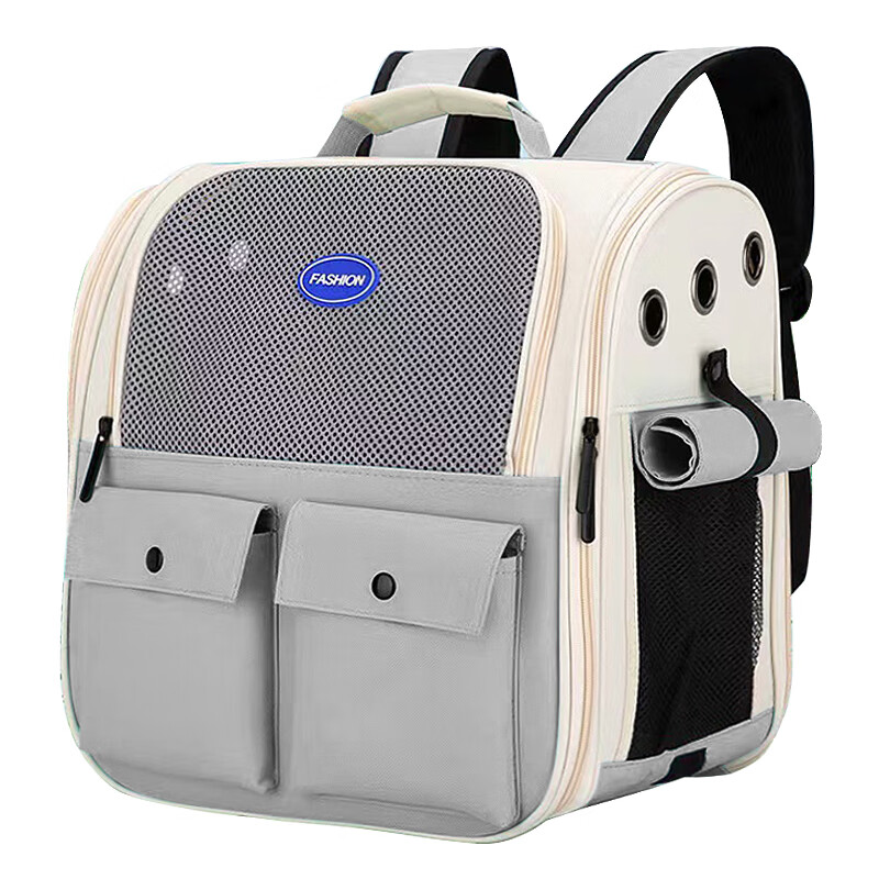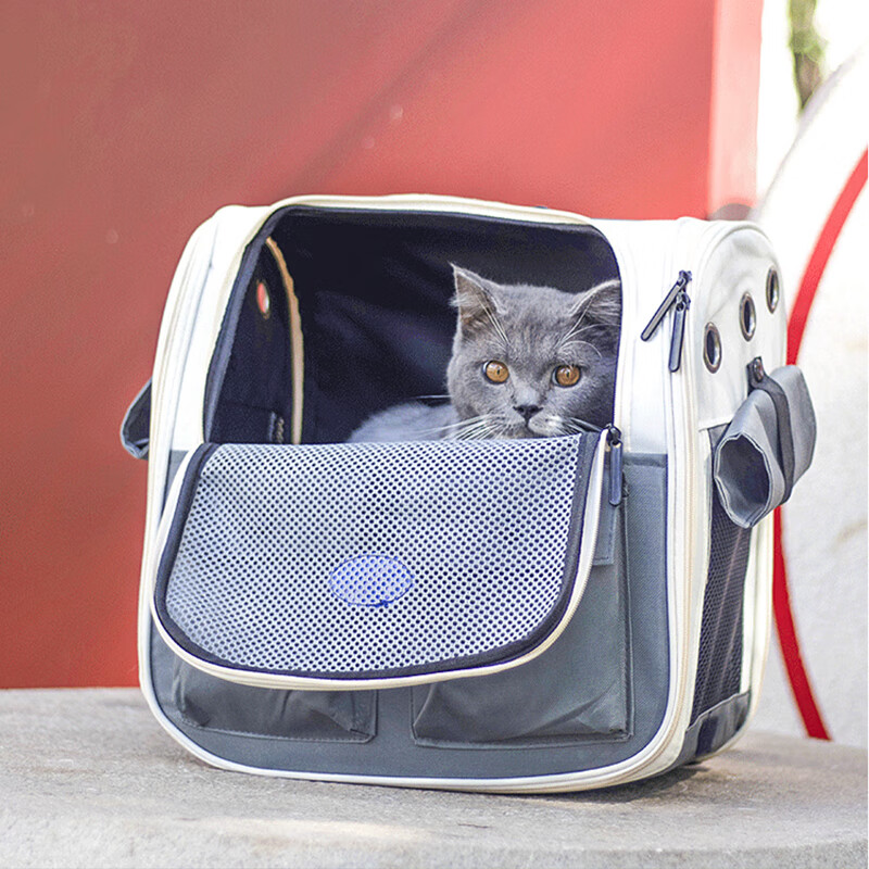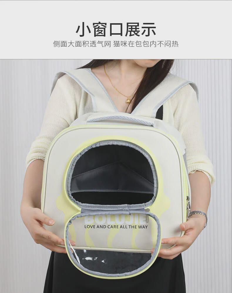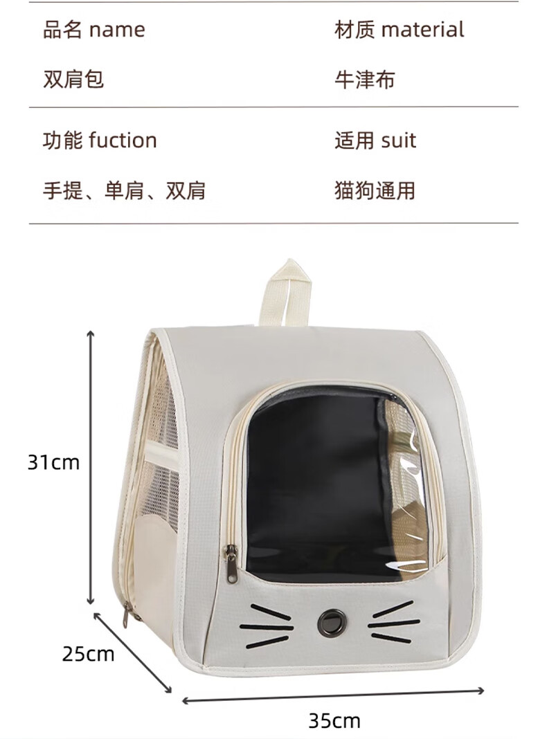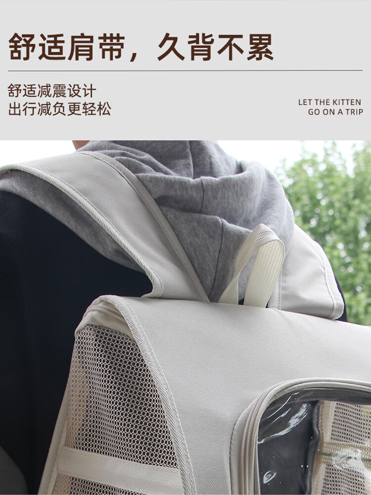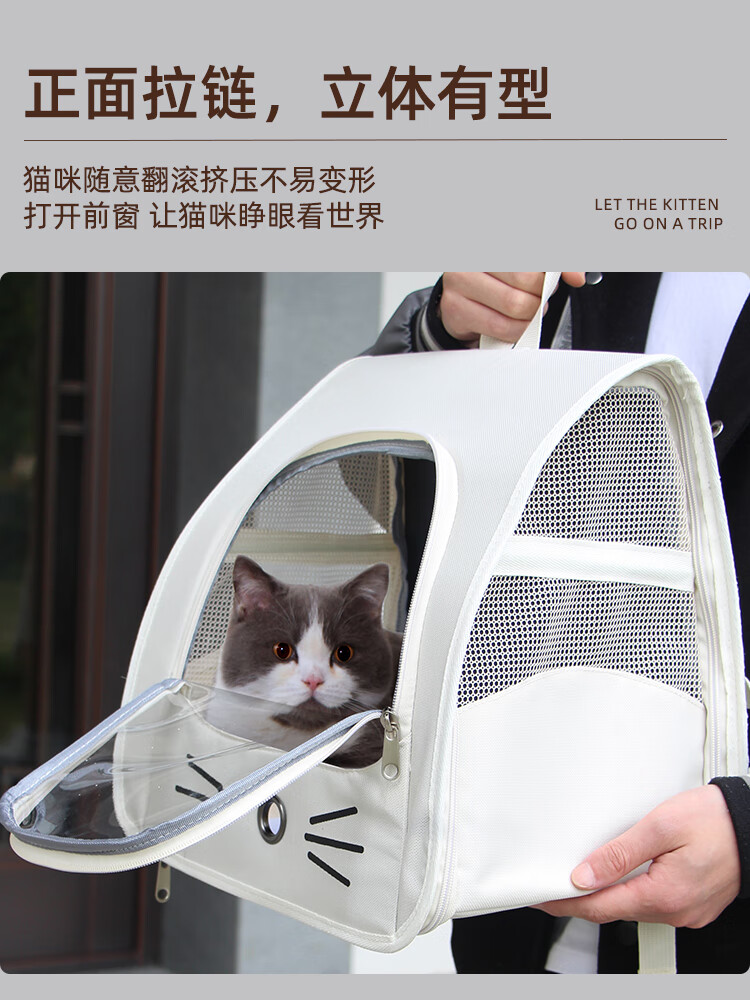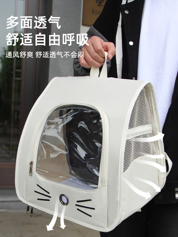 京喜自营-专用品牌猫包外出便携包 大容量多面透气双肩书包 舒适出行 米白猫胡须-适12斤内