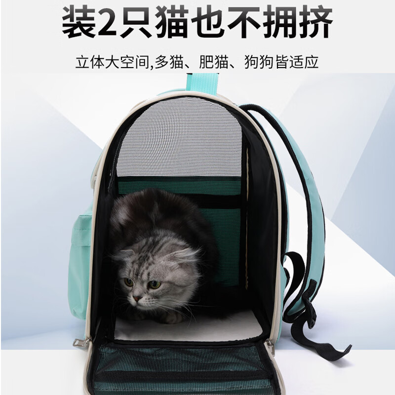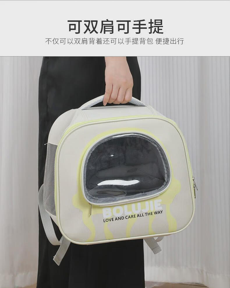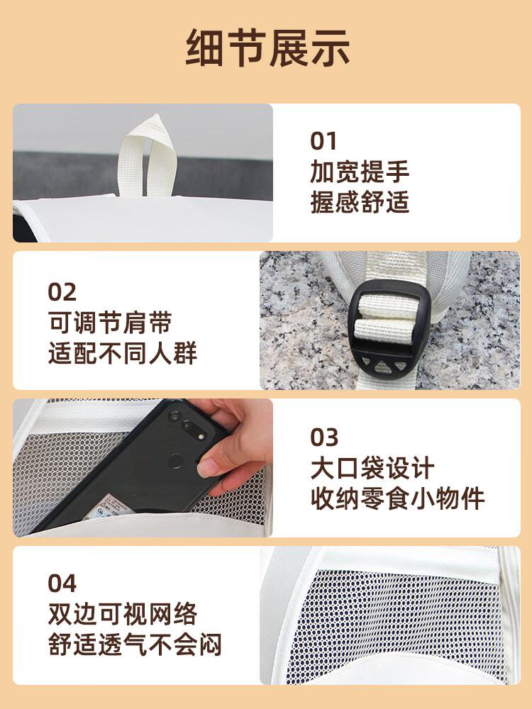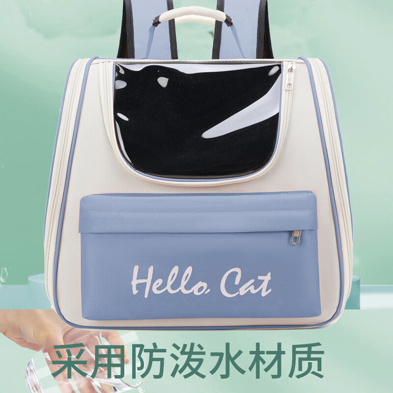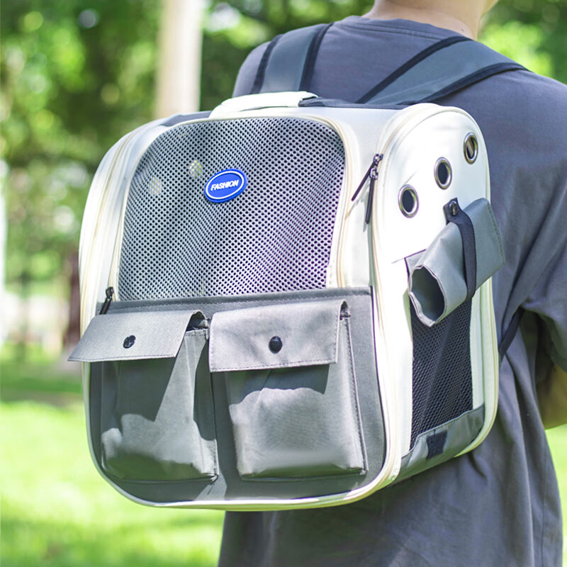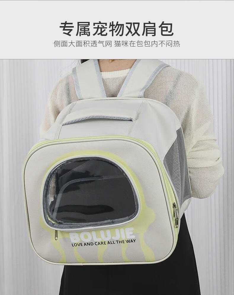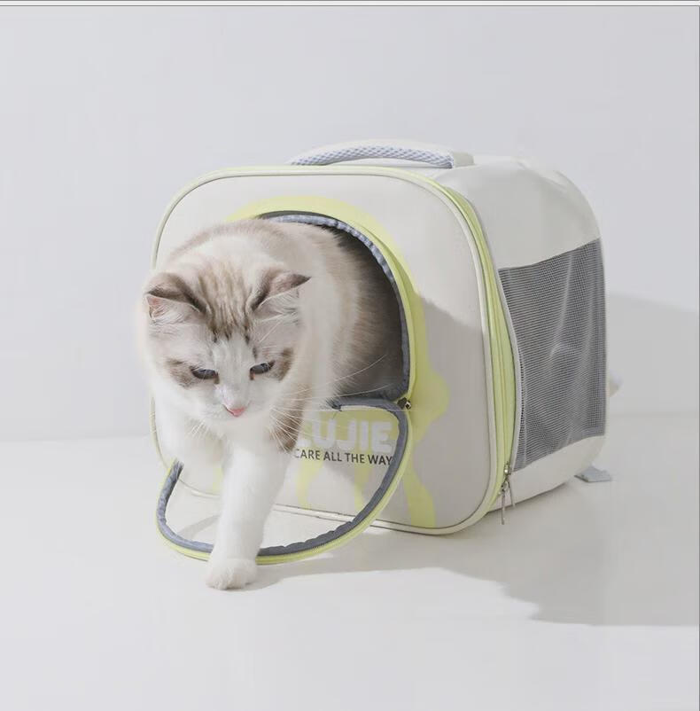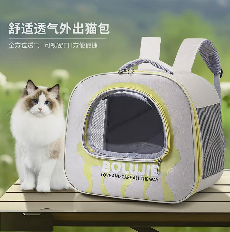 京喜自营-专用品牌猫包外出便携包 大容量多面透气双肩书包 舒适出行 米白猫胡须-适12斤内