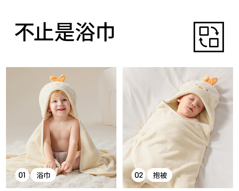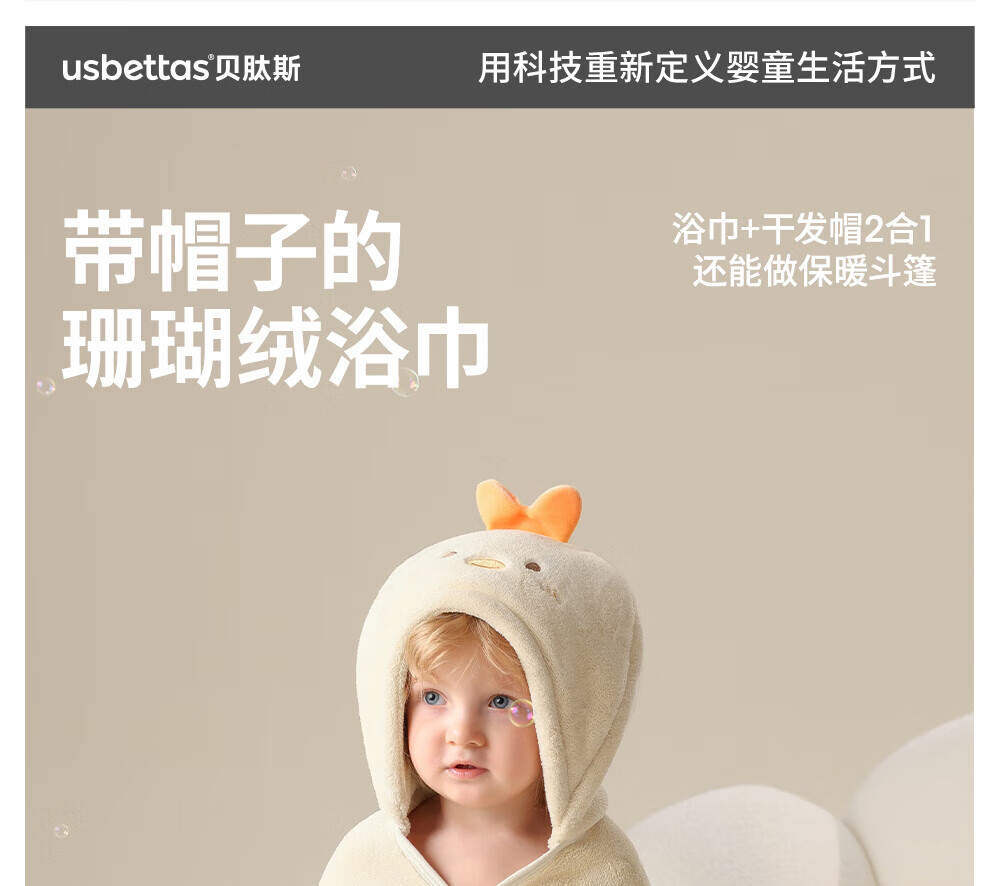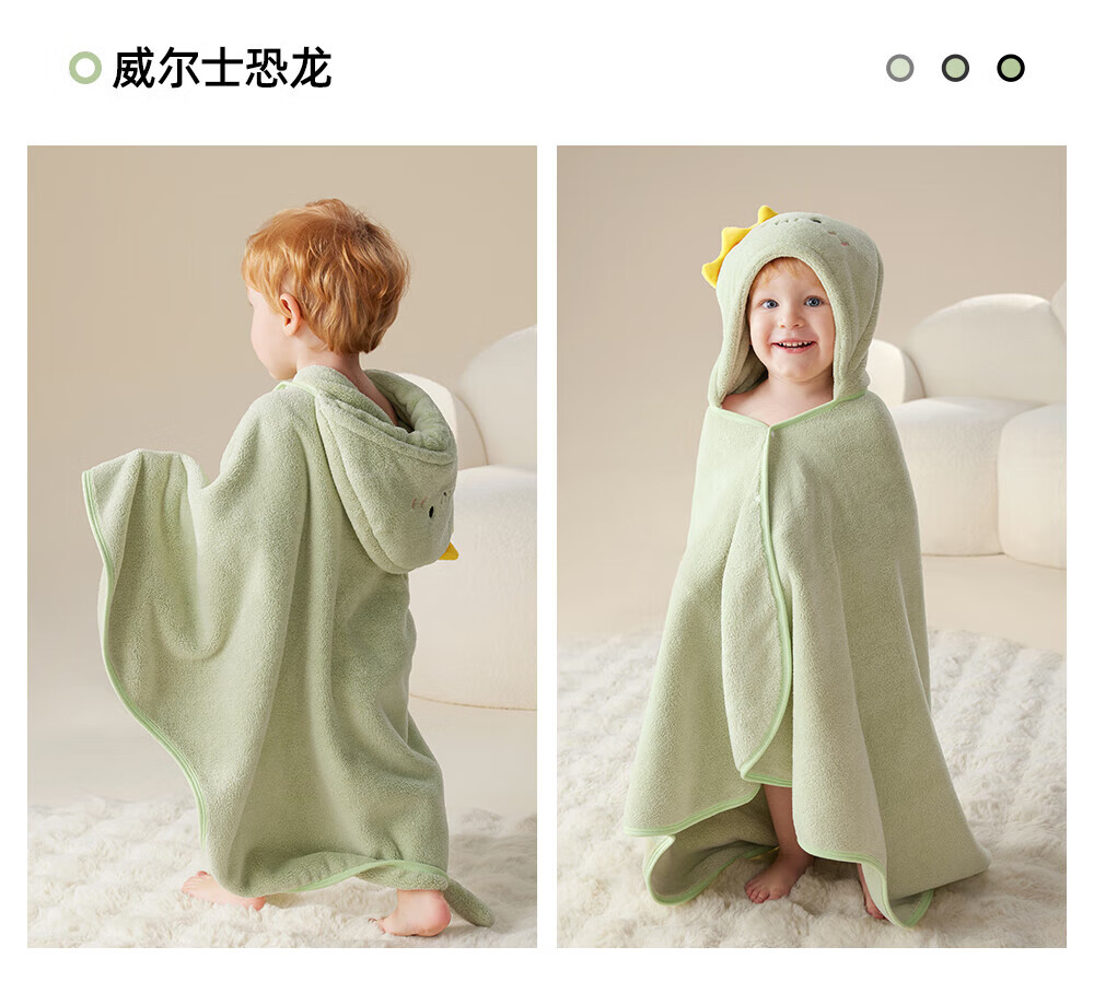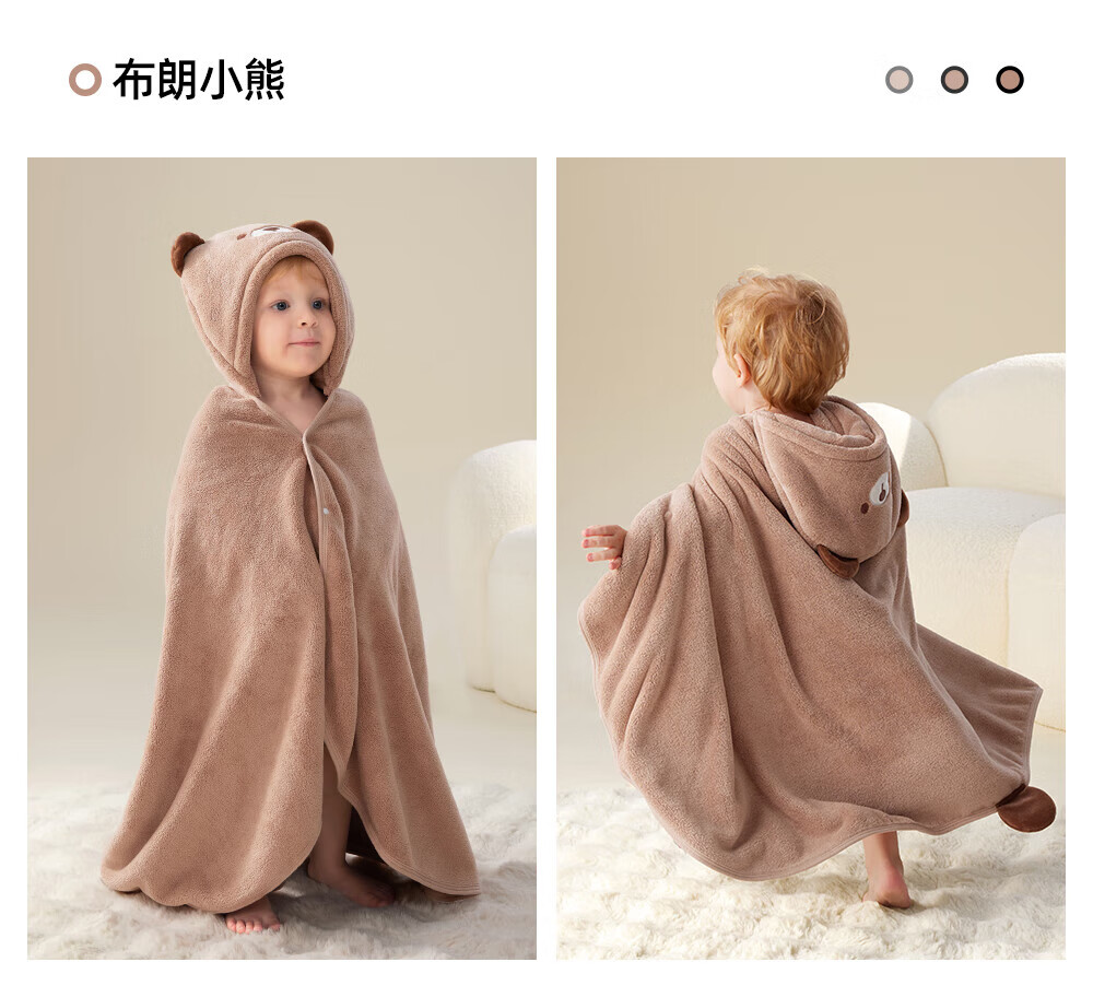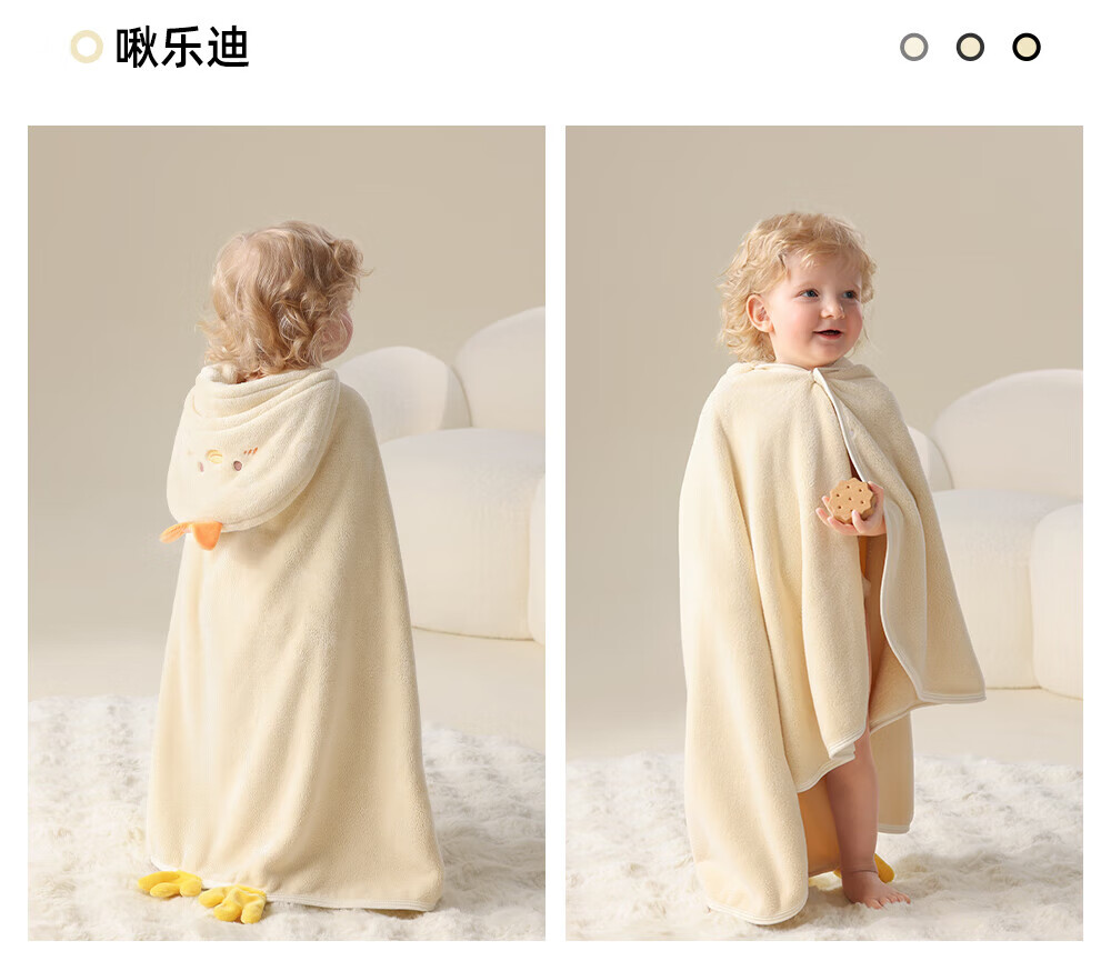 贝肽斯儿童浴巾软新生婴儿全棉带帽斗篷可穿宝宝速干a类洗澡巾 瞅乐迪【7A抗菌0掉毛不起球】双面珊瑚绒 125x70