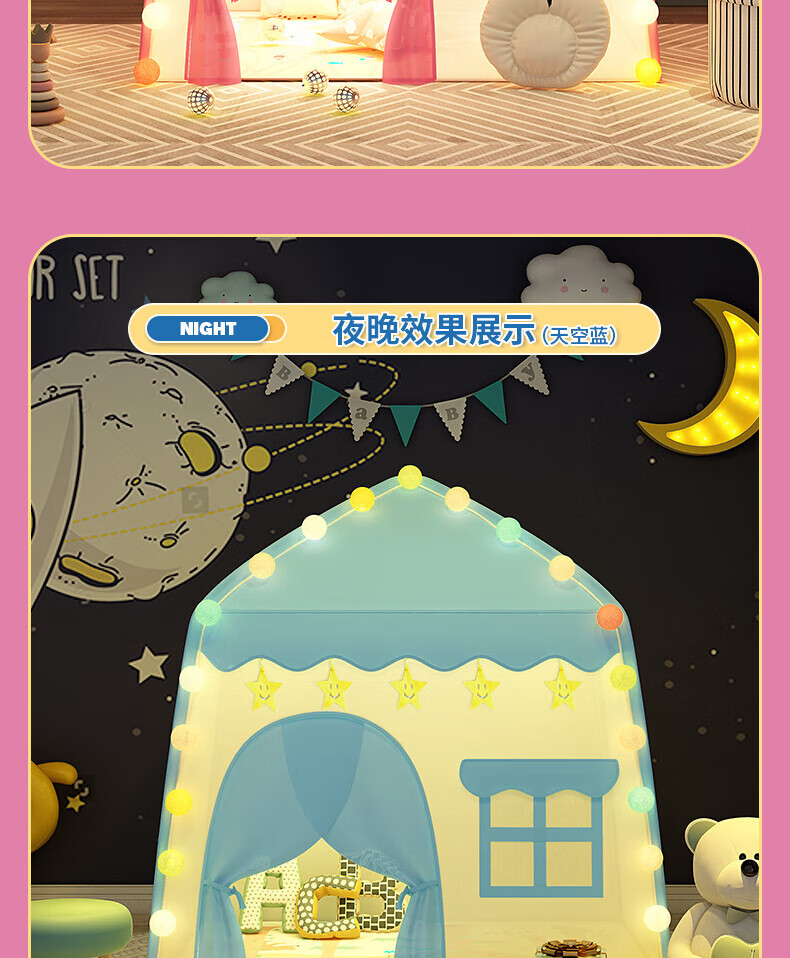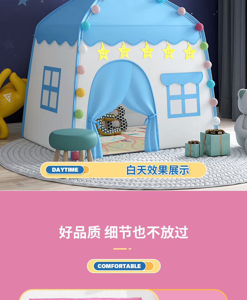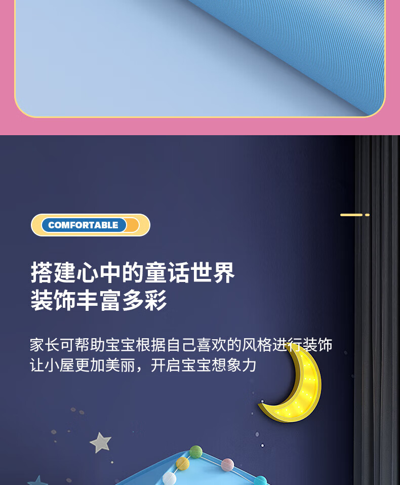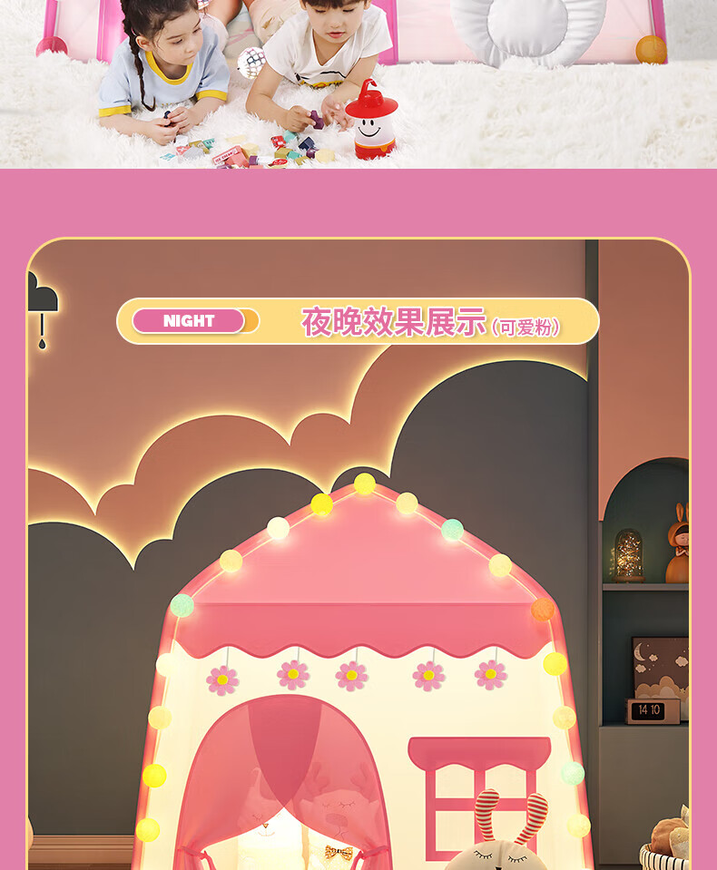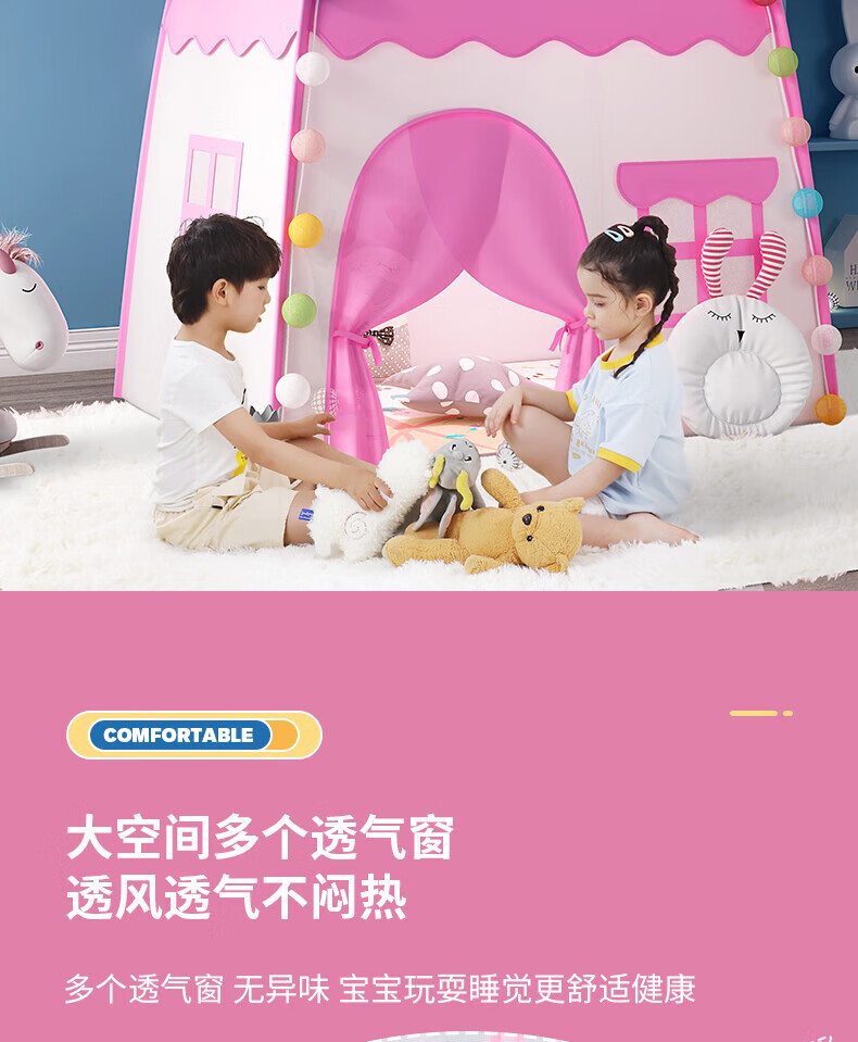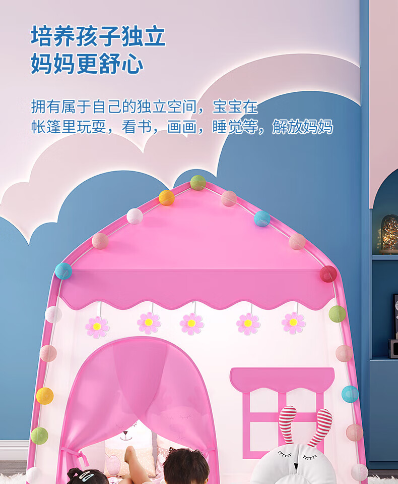 宰搂帐篷儿童614岁室内游戏公主屋小房子家用女孩小型城堡床上帐篷 棉垫款-粉可丢沙包沙包+标