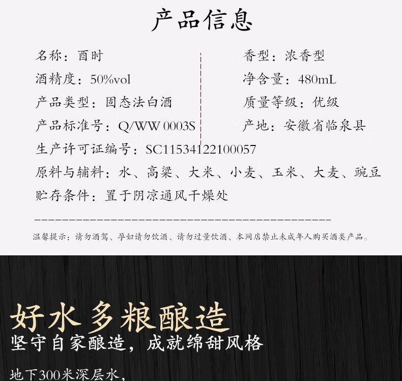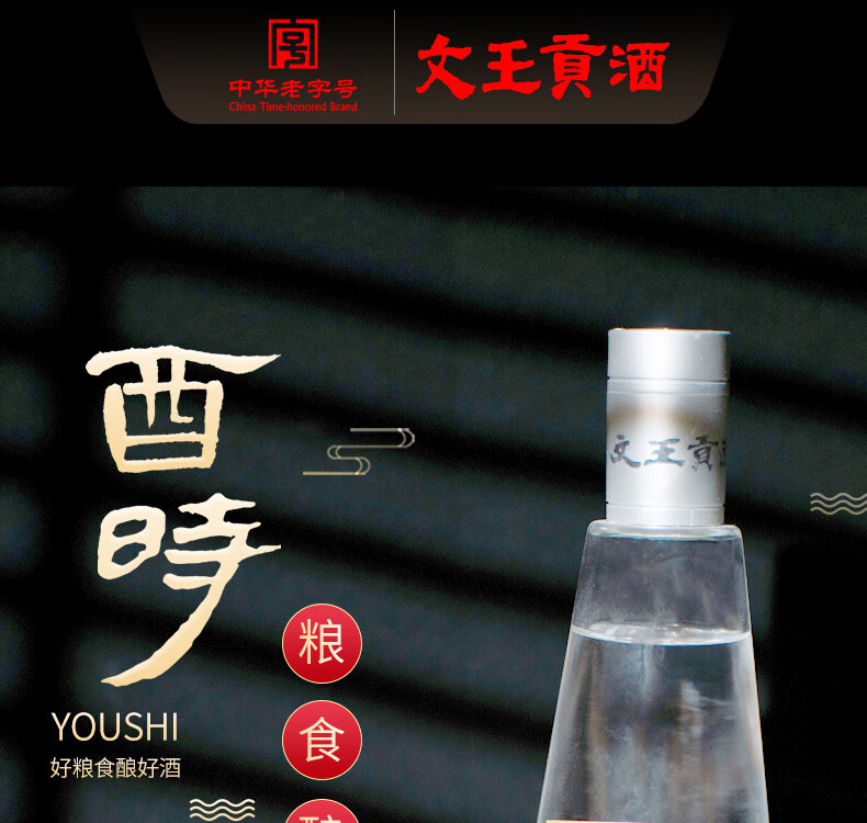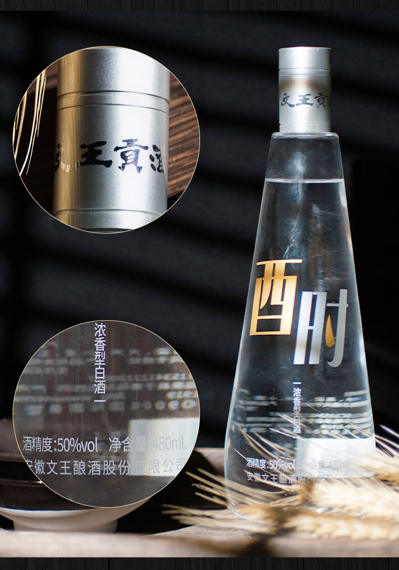 文王贡酒酉时 安徽临泉特产 浓香型白酒 纯粮食酿造 光瓶口粮酒 50度 480mL 4瓶 【口粮酒】整箱装
