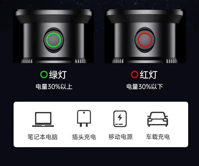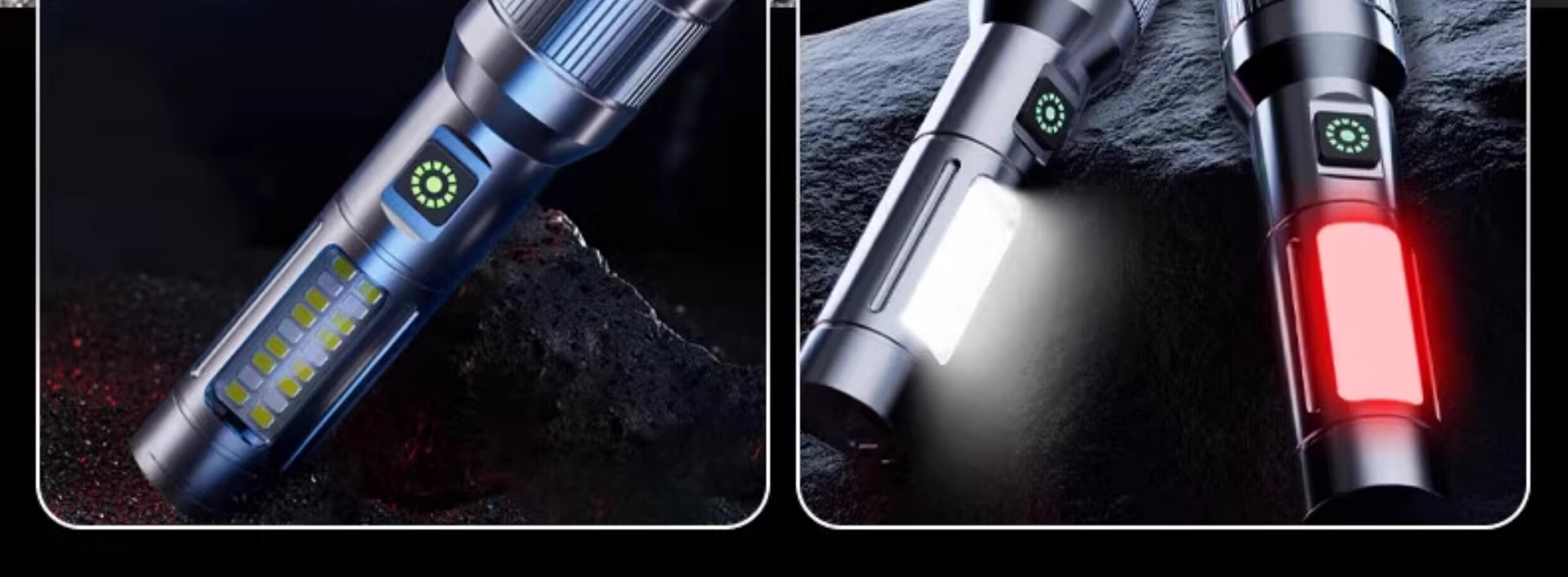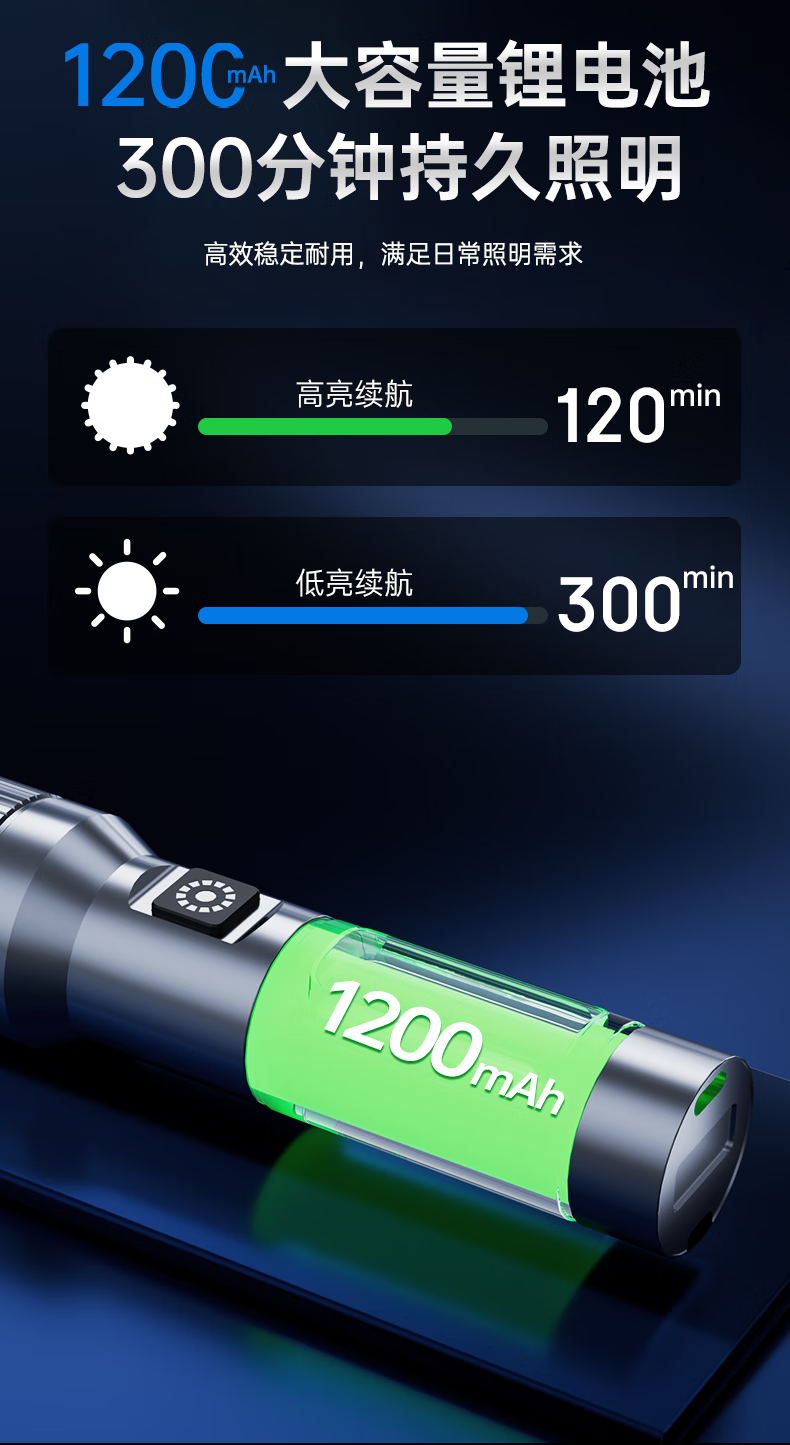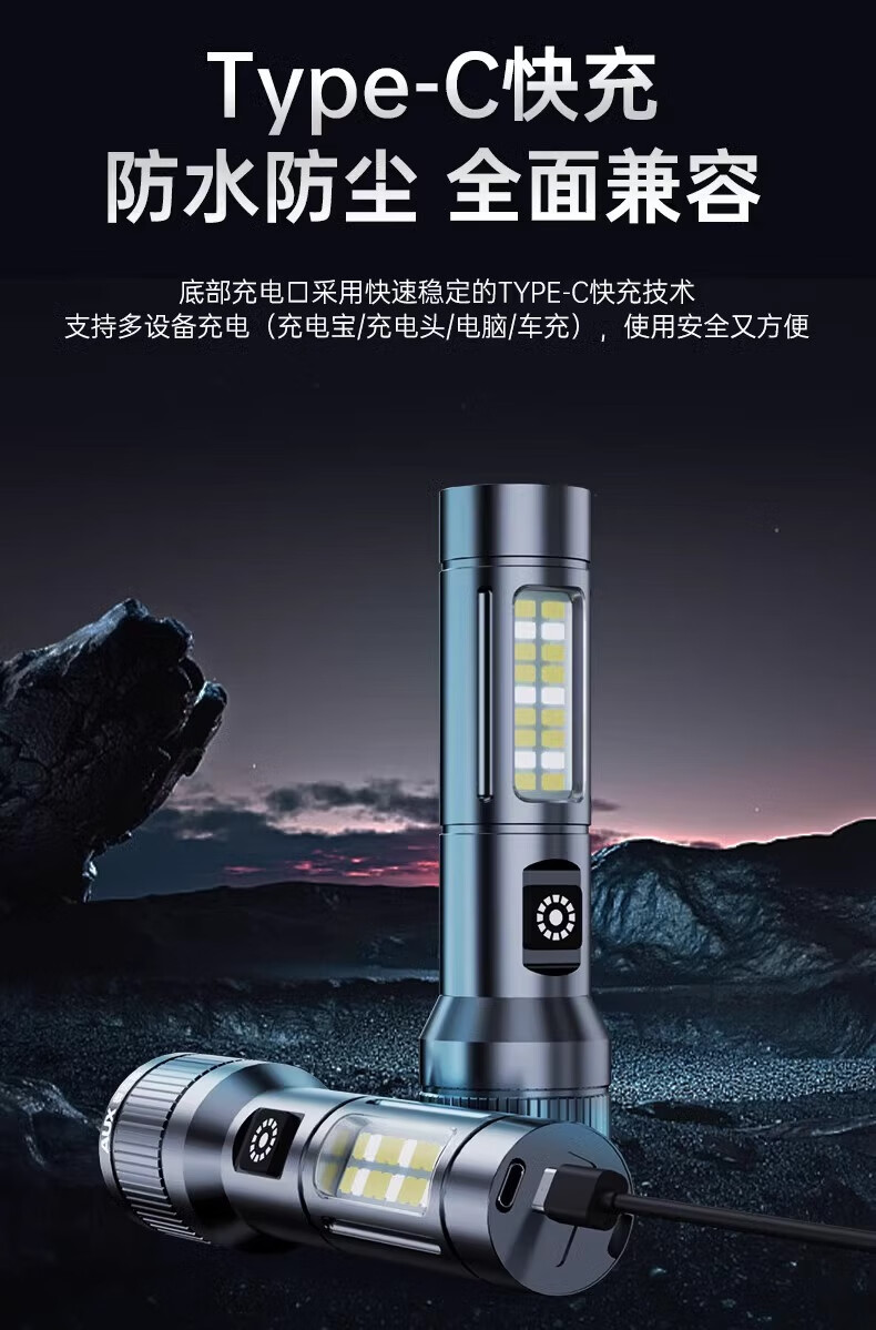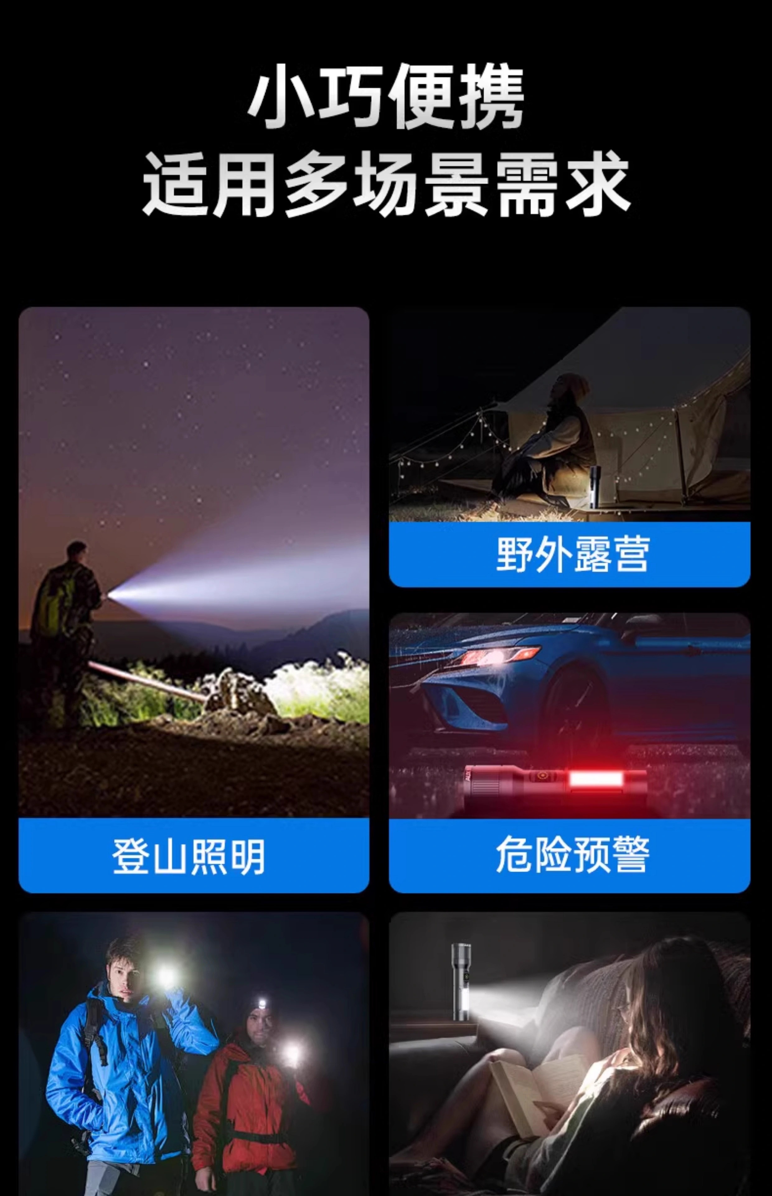 奥克斯伸缩变焦强光手电筒电筒户外超亮爆闪远射家用续航高亮警示侧灯 【M9白激光灯珠-爆亮】续航12H