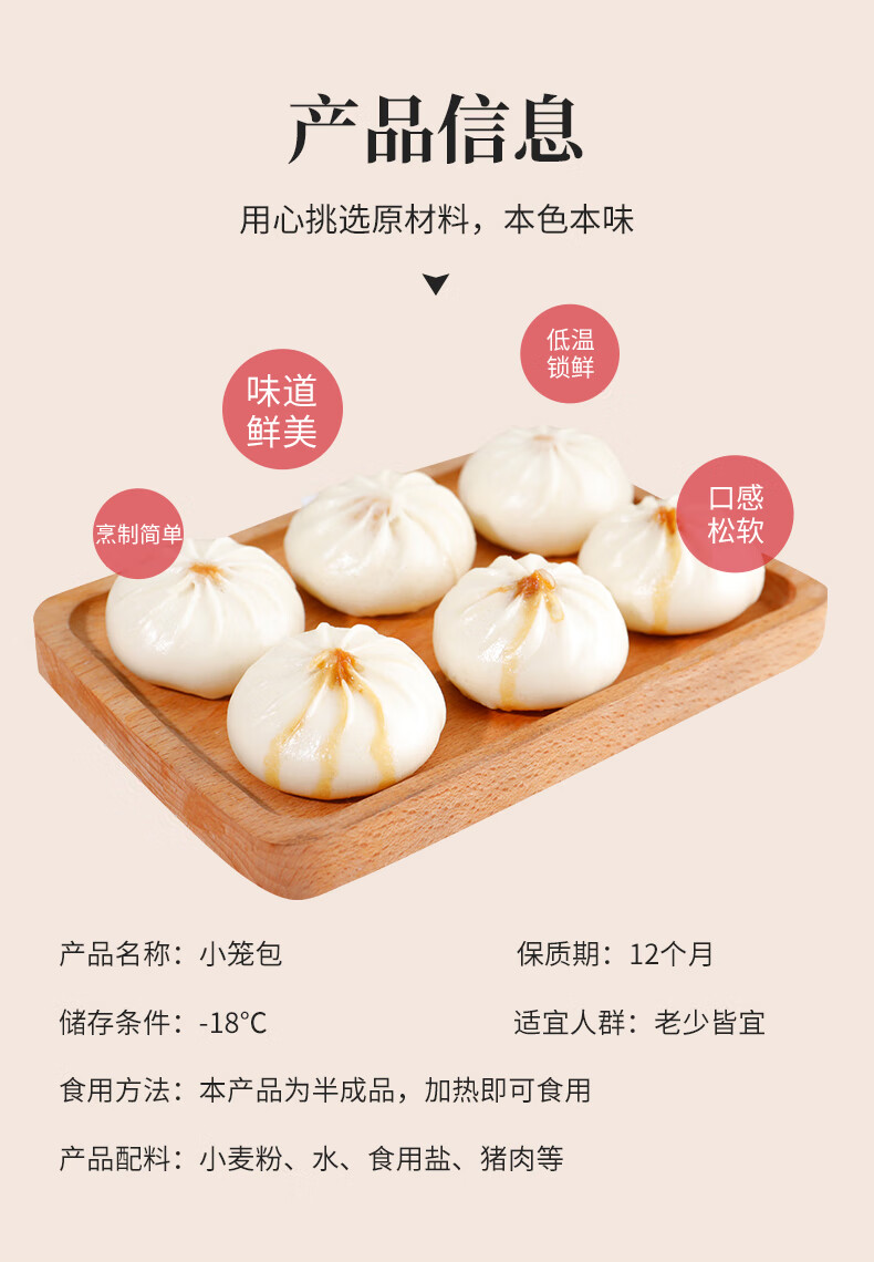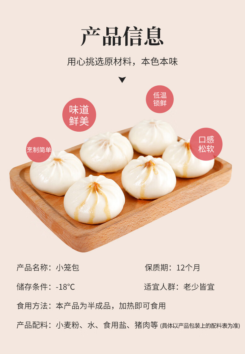 连福记2斤约52个鲜肉蒸煎小笼包即食早餐酱肉包子速冻食品 【1袋2斤 约52个】鲜肉小笼包