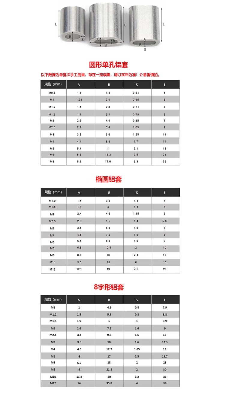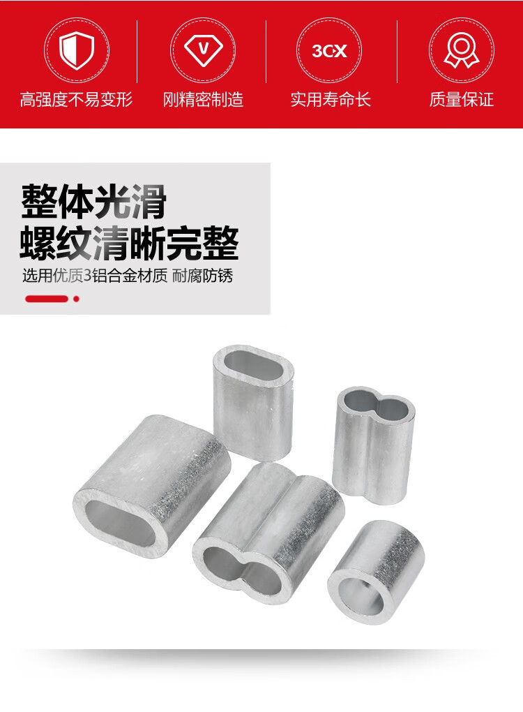 固万基 钢丝绳用铝夹头双孔8字型铝套单孔八字椭圆铝套卡扣M0.5/1/2/3/20紧固件大全 8字双孔 M3[20个]