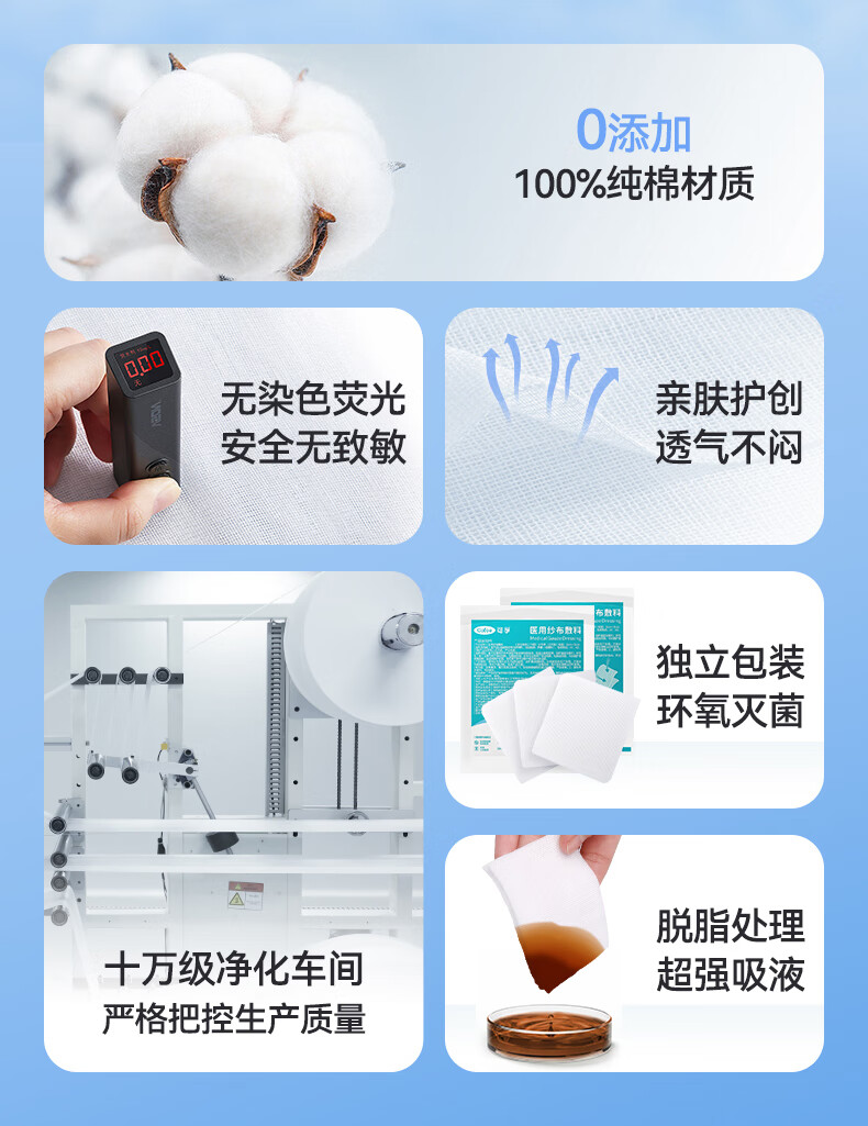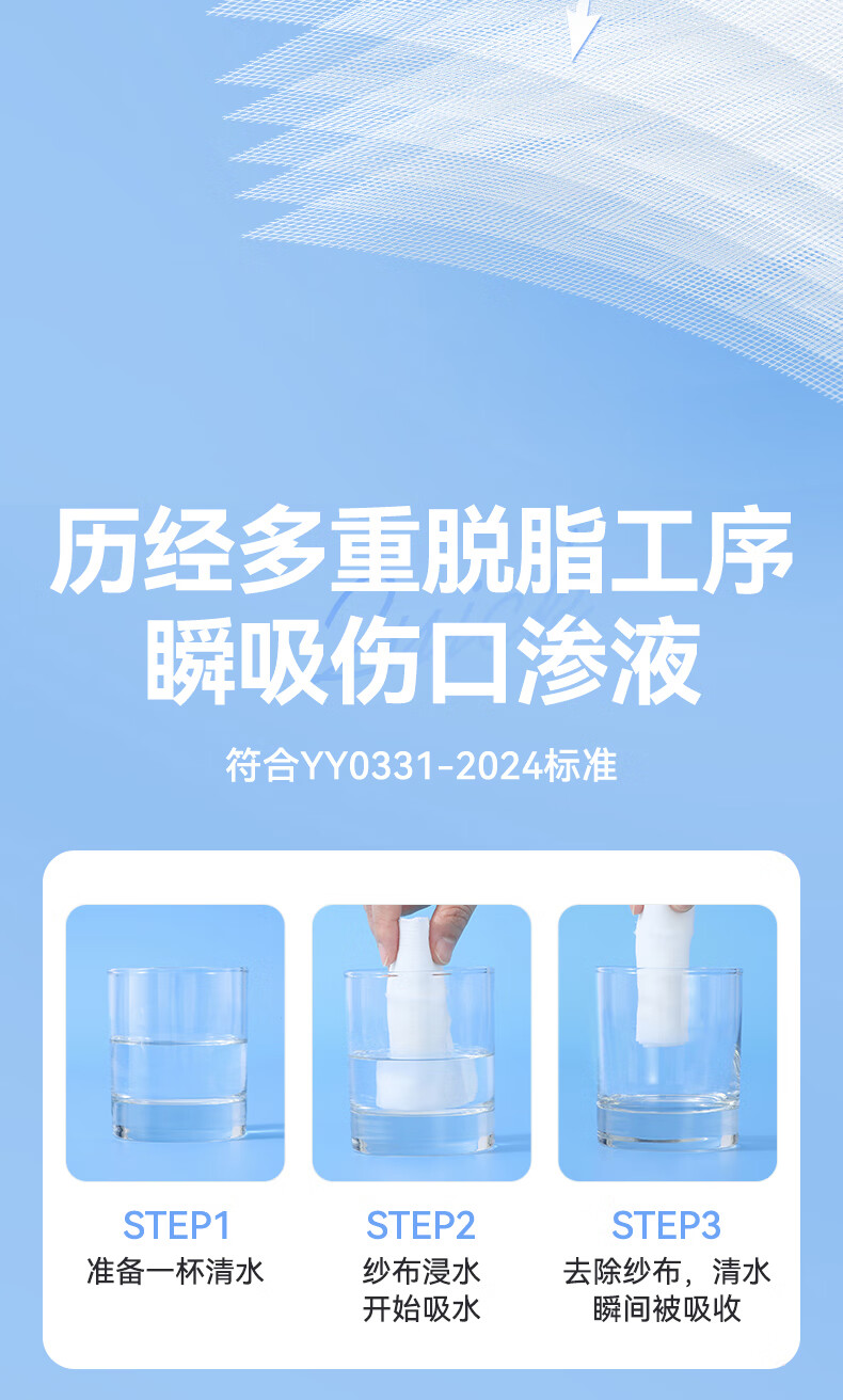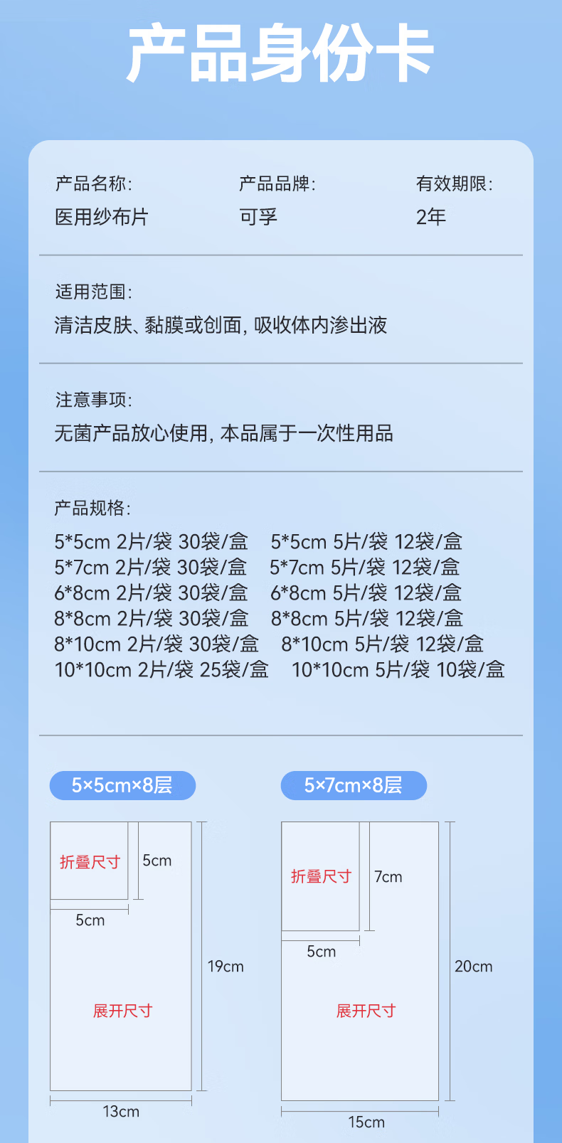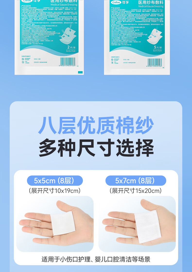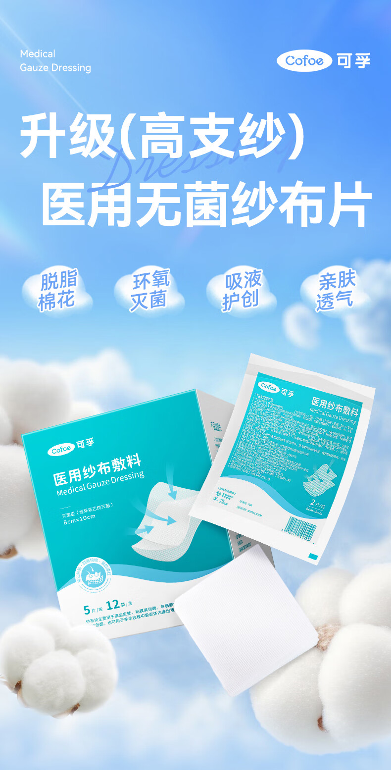 可孚医用无菌纱布块5X7cm*2片*10袋小片消毒脱脂敷料贴一次性独立包装