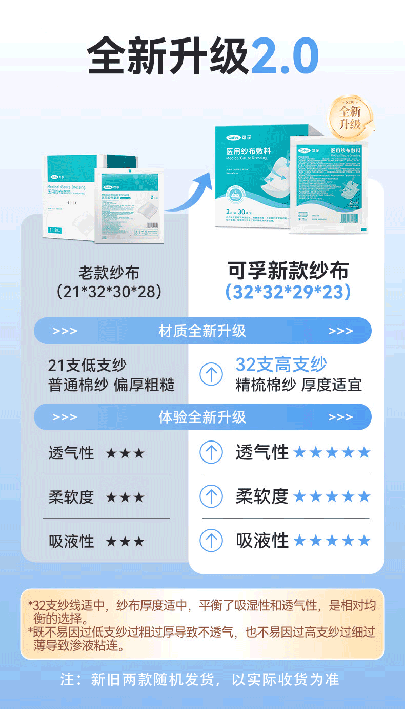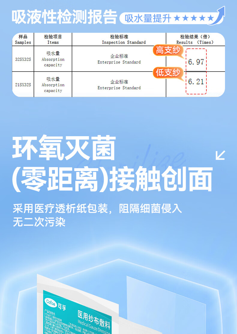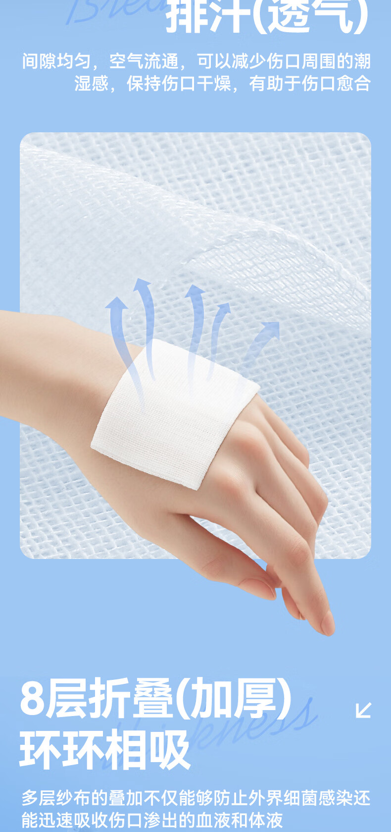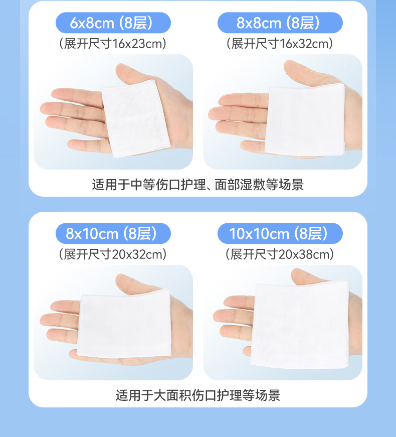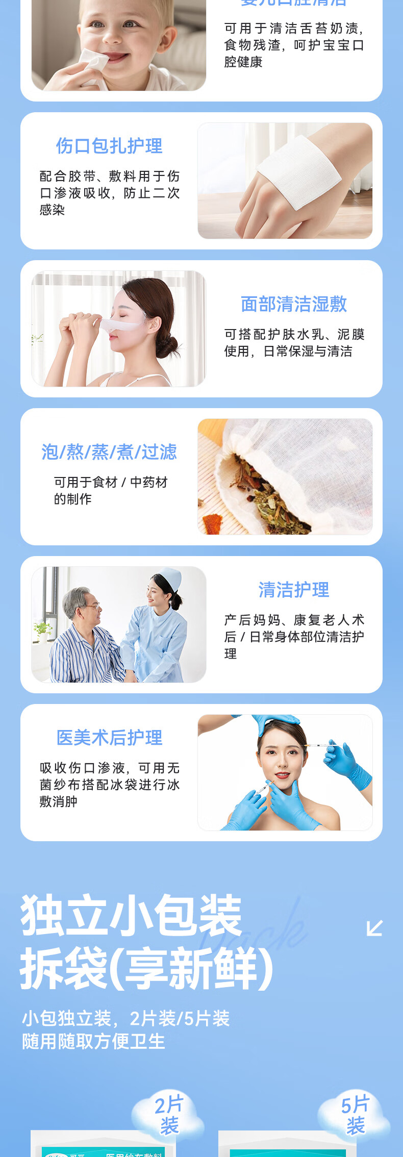 可孚医用无菌纱布块5X7cm*2片*10袋小片消毒脱脂敷料贴一次性独立包装