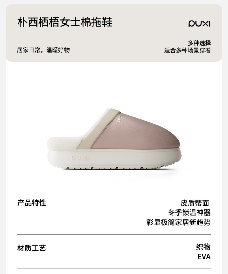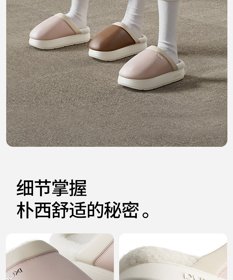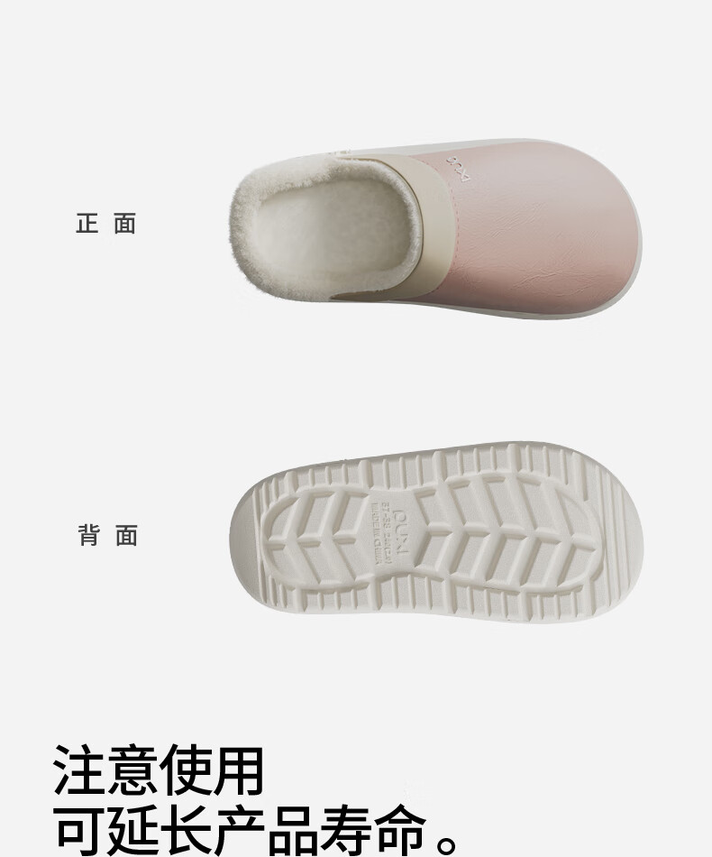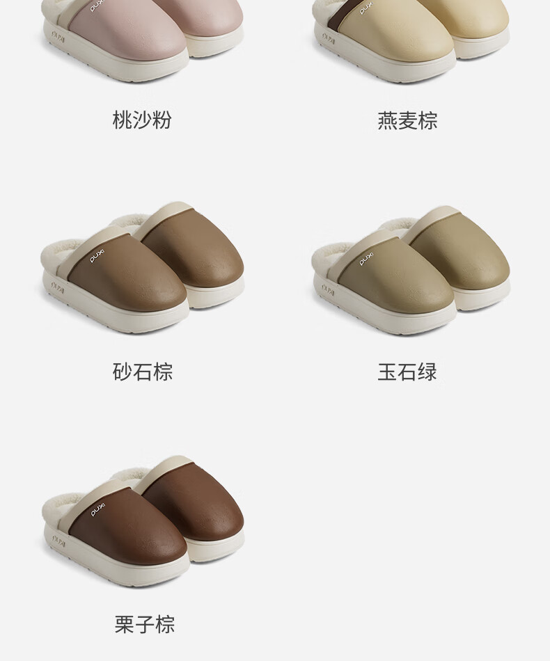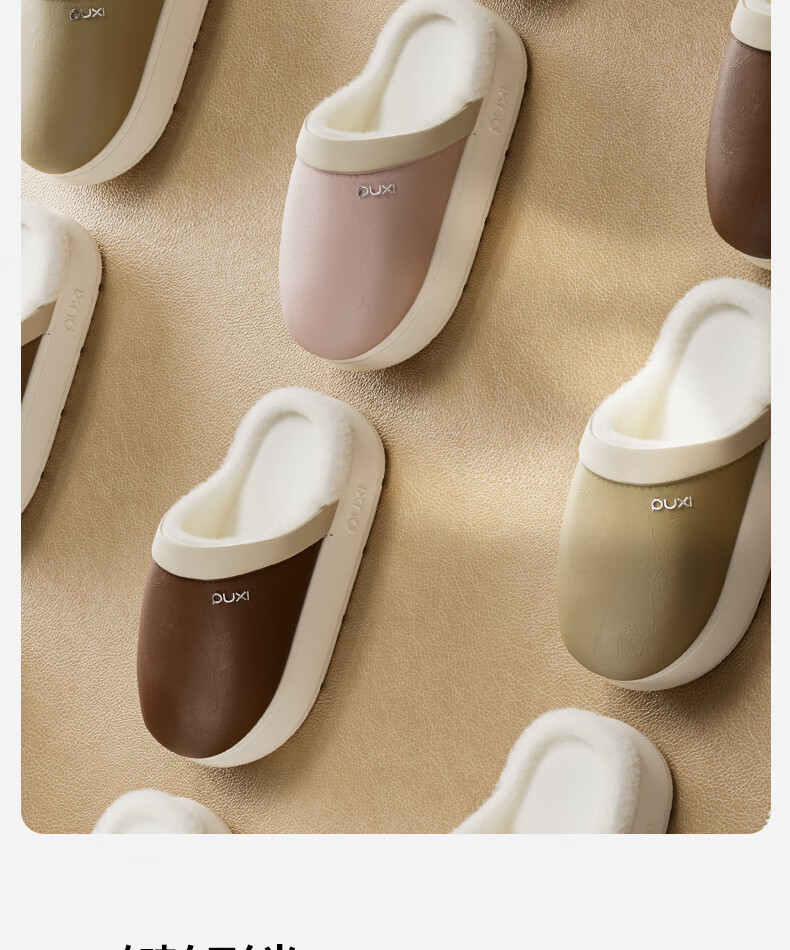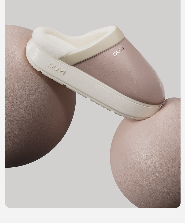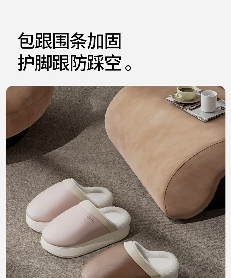 朴西栖梧情侣加绒棉拖鞋女士秋冬居家室内保暖防滑棉拖防泼水皮面 桃沙粉 35-36