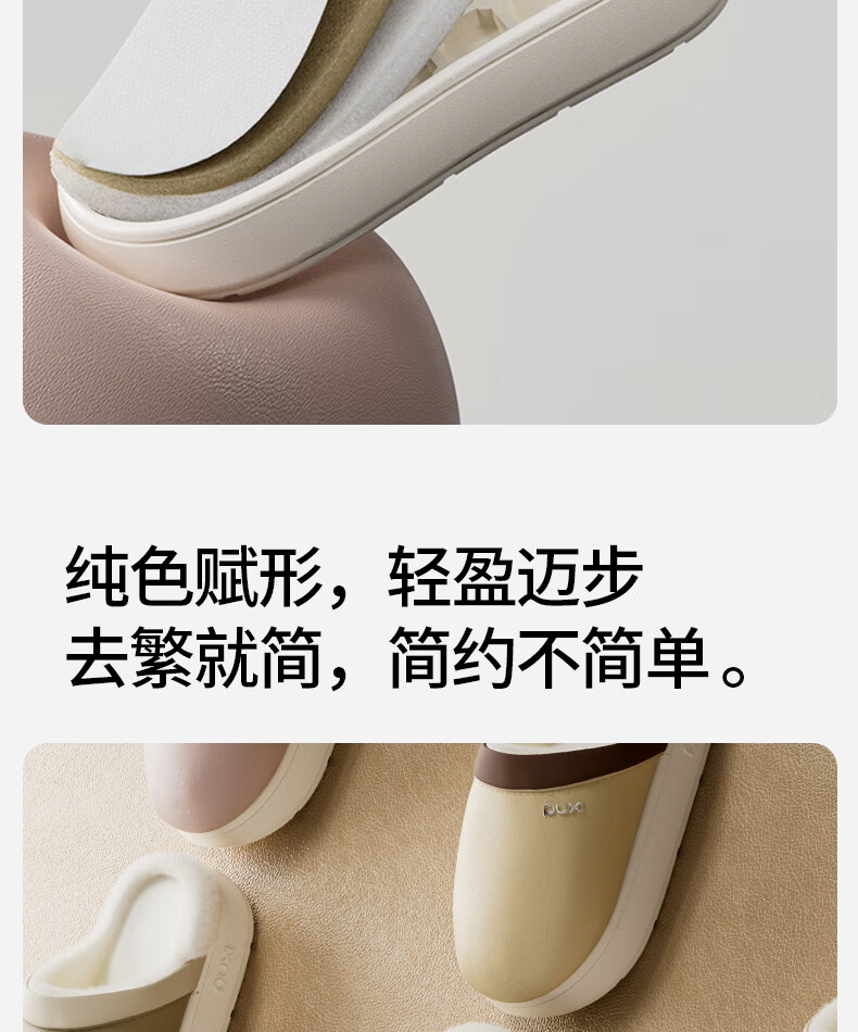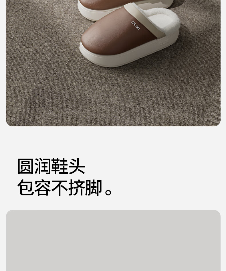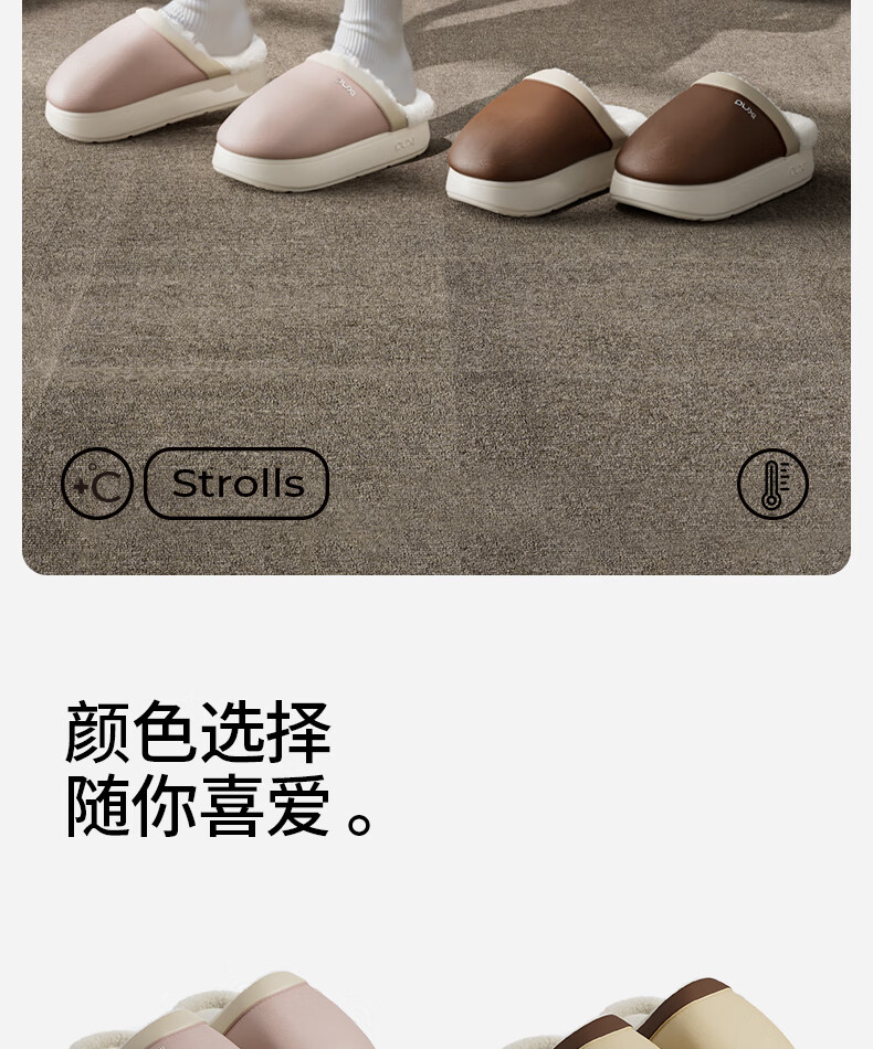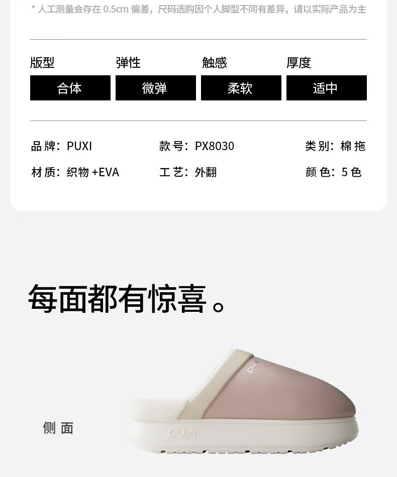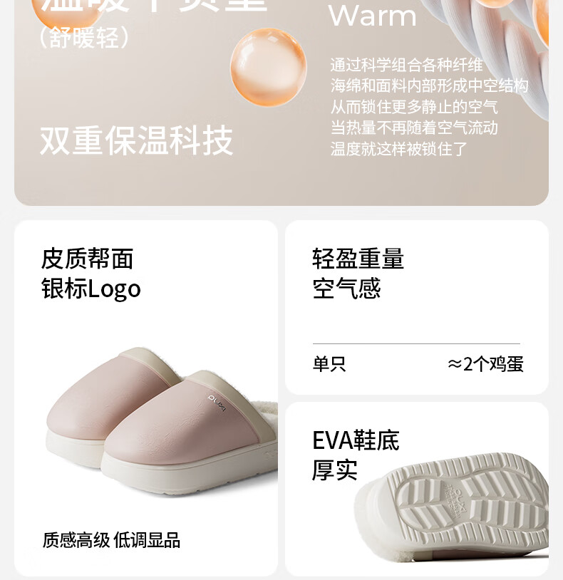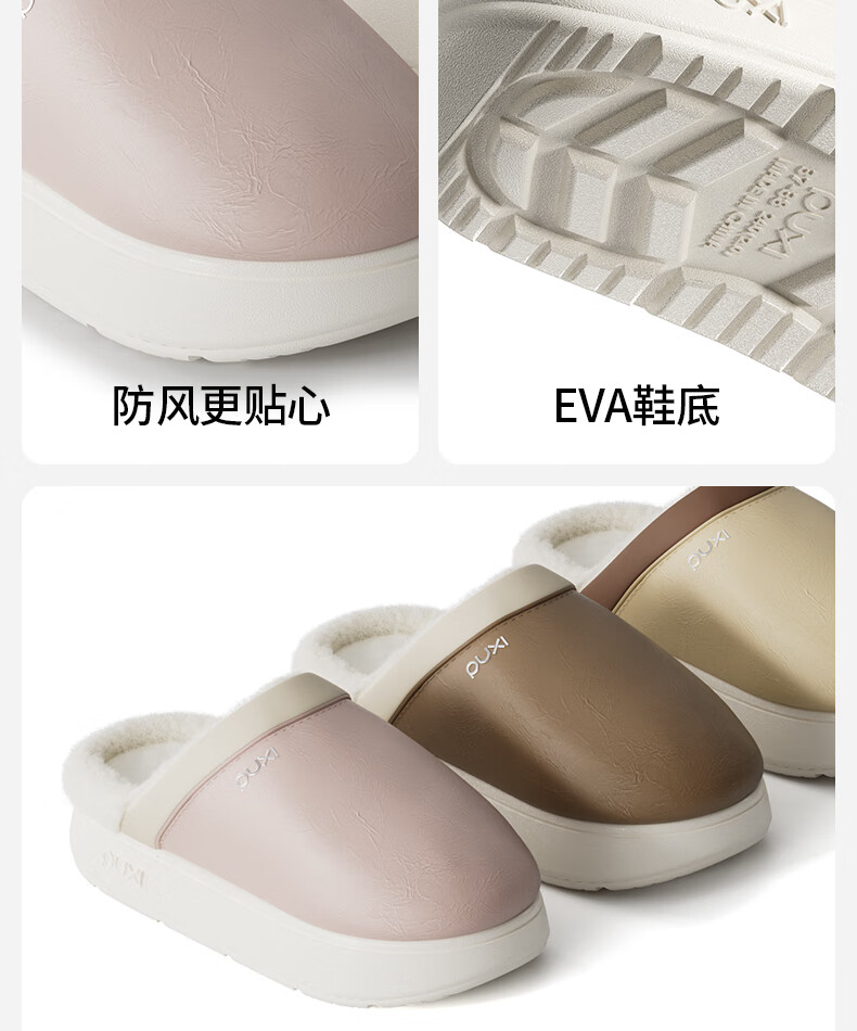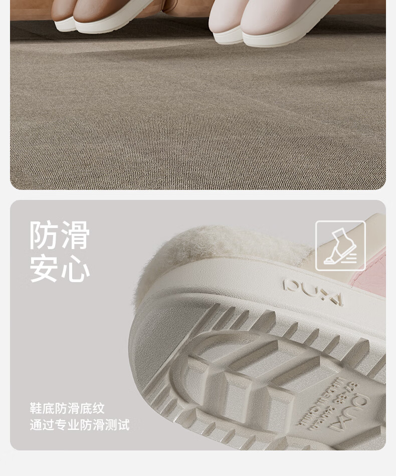 朴西栖梧情侣加绒棉拖鞋女士秋冬居家室内保暖防滑棉拖防泼水皮面 桃沙粉 35-36