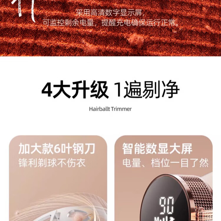 康佳(KONKA)粘毛器去球神器大功率剃毛器家用剃刮剔除充电去球毛球修剪器 大号旗舰款 自动集尘3刀头加大网罩
