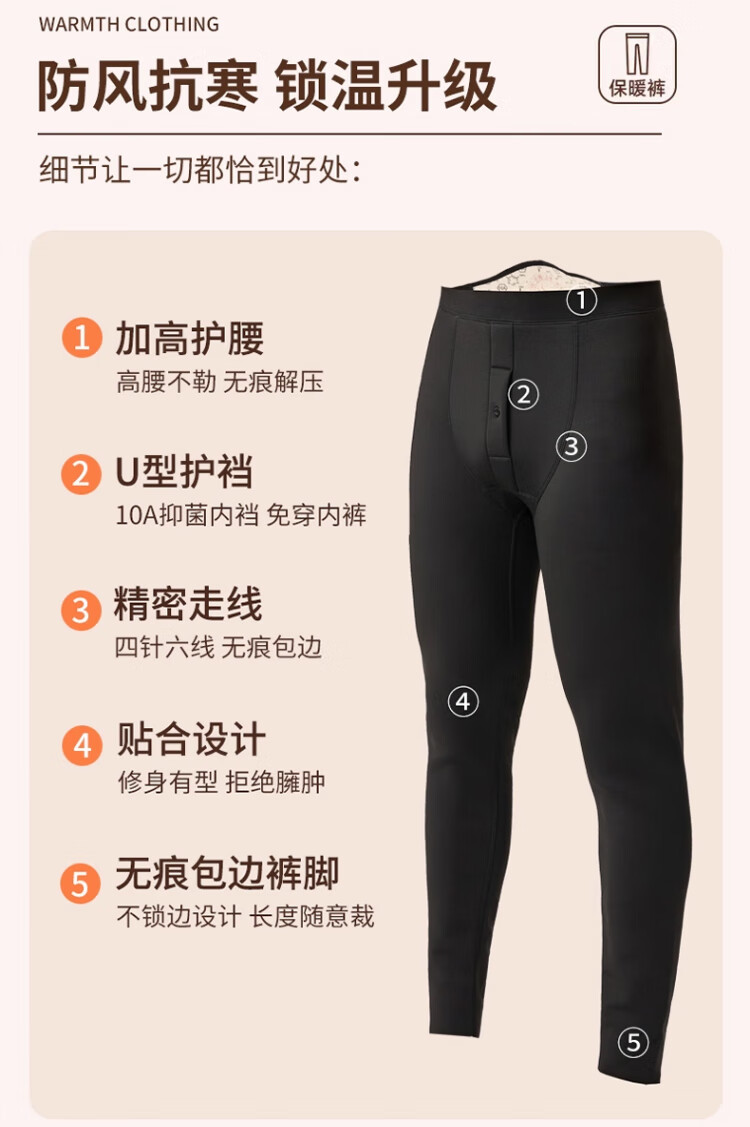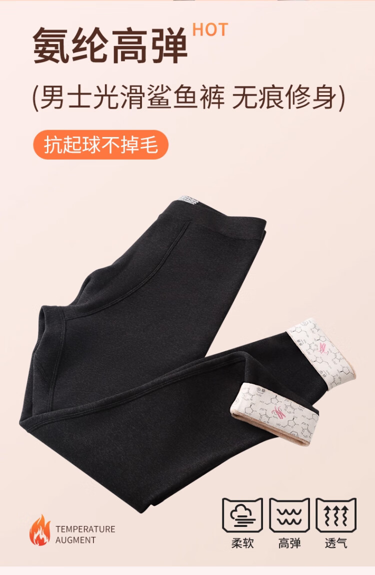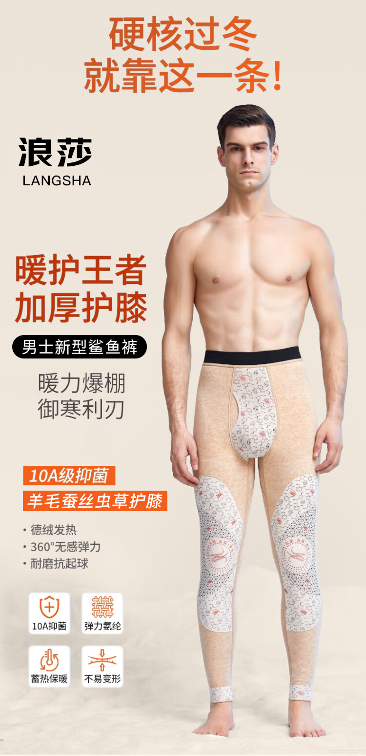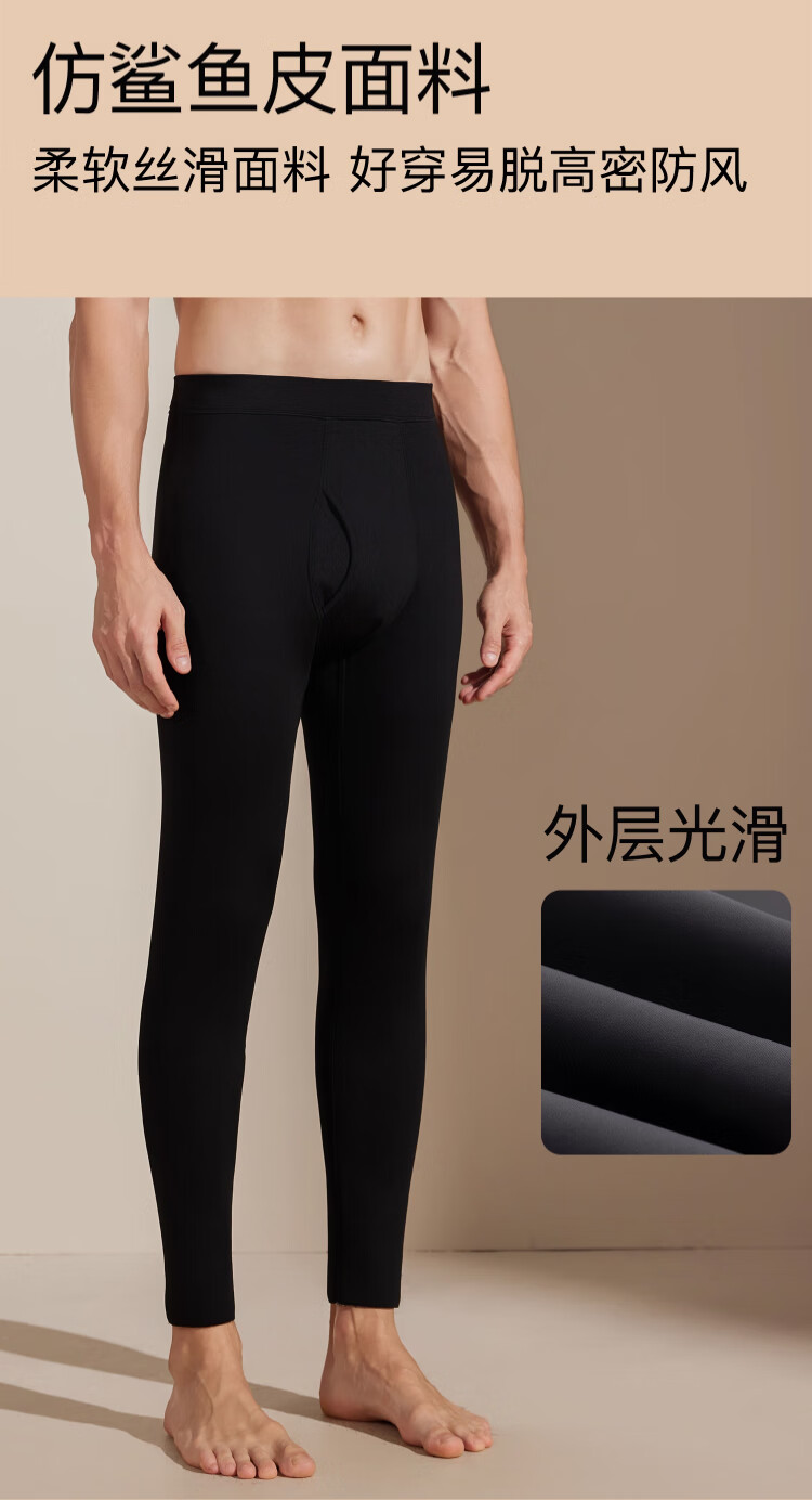 浪莎男士鲨鱼裤冬季防风寒裤护膝款保暖裤加厚秋裤打底机车芭比棉裤