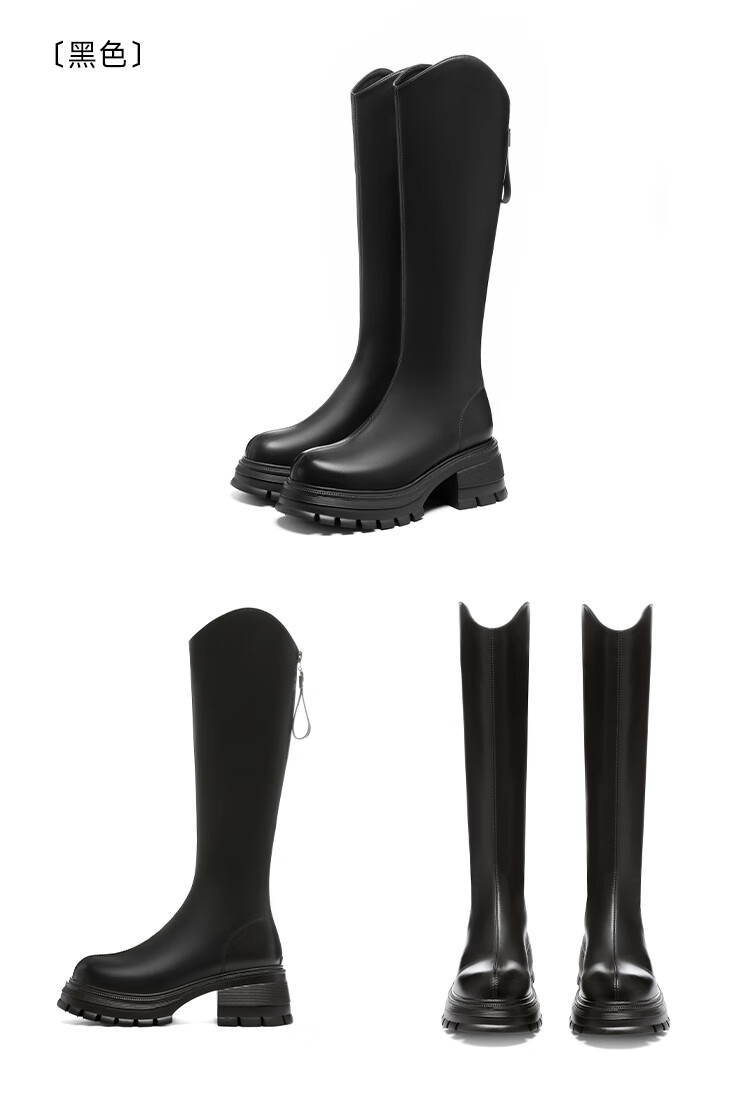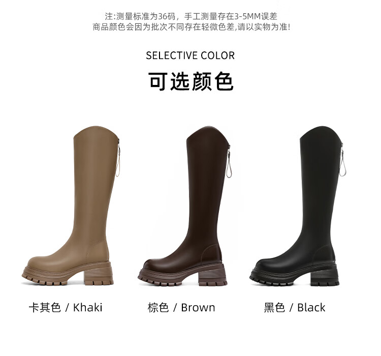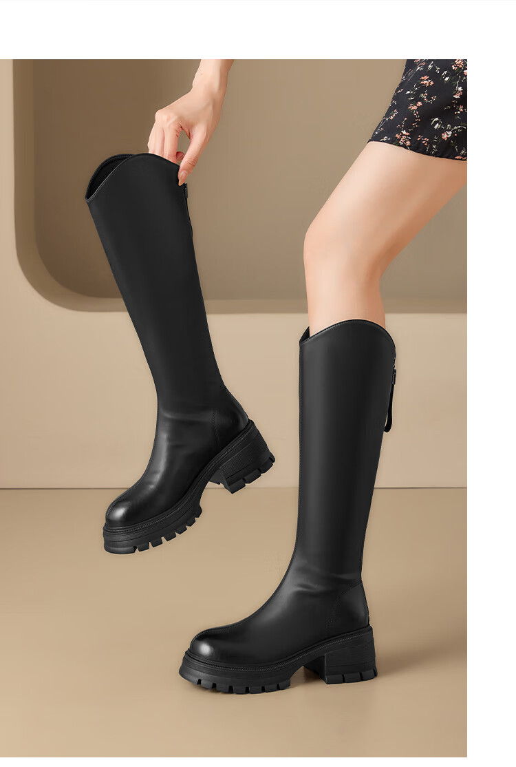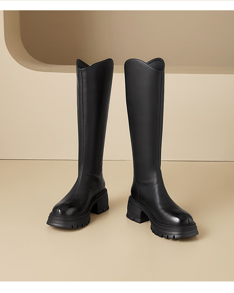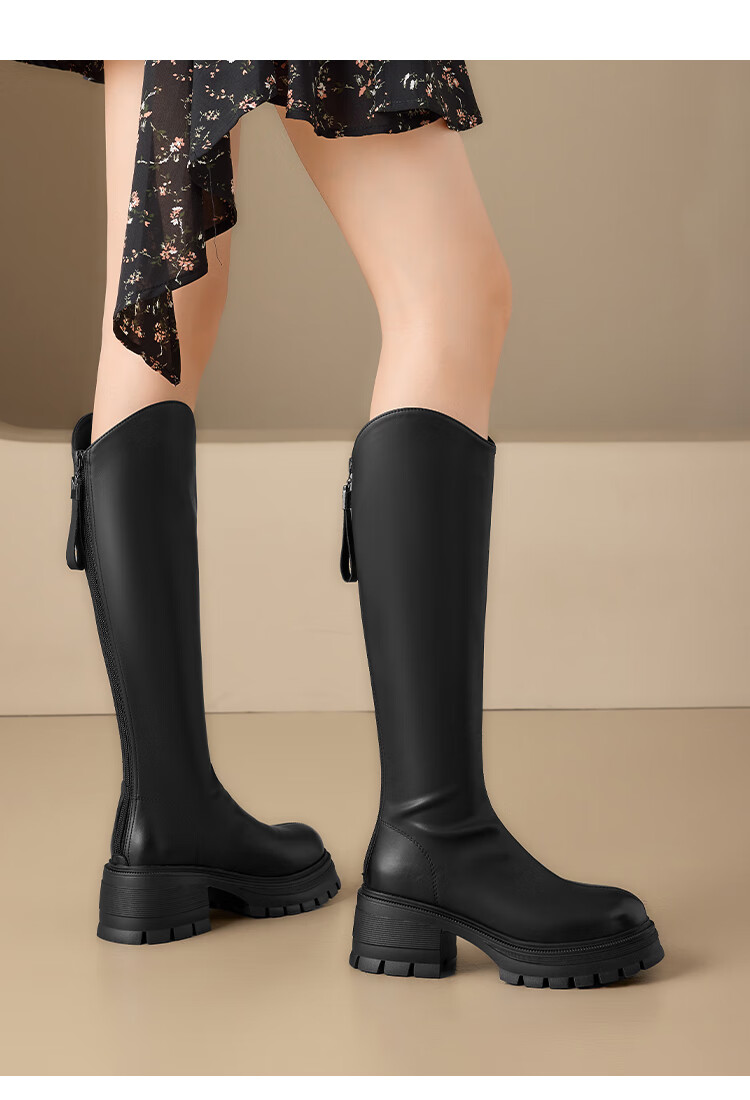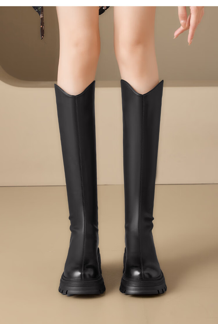 星期六v口长筒靴女2025新款秋冬复古英伦骑士靴高筒厚底增高显瘦靴子女 黑色 38