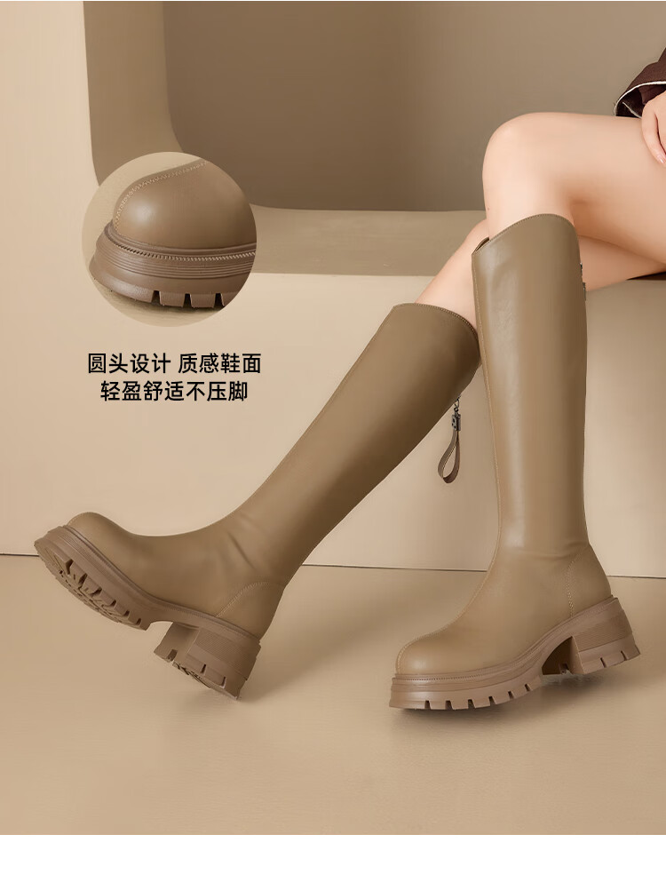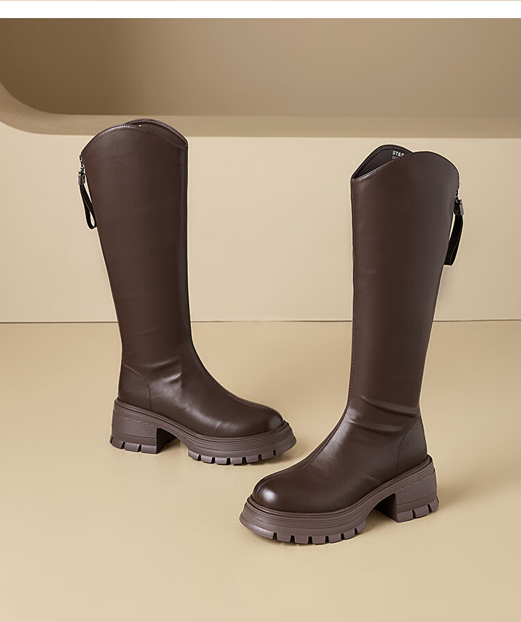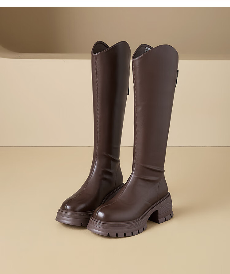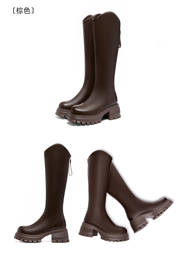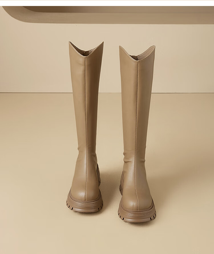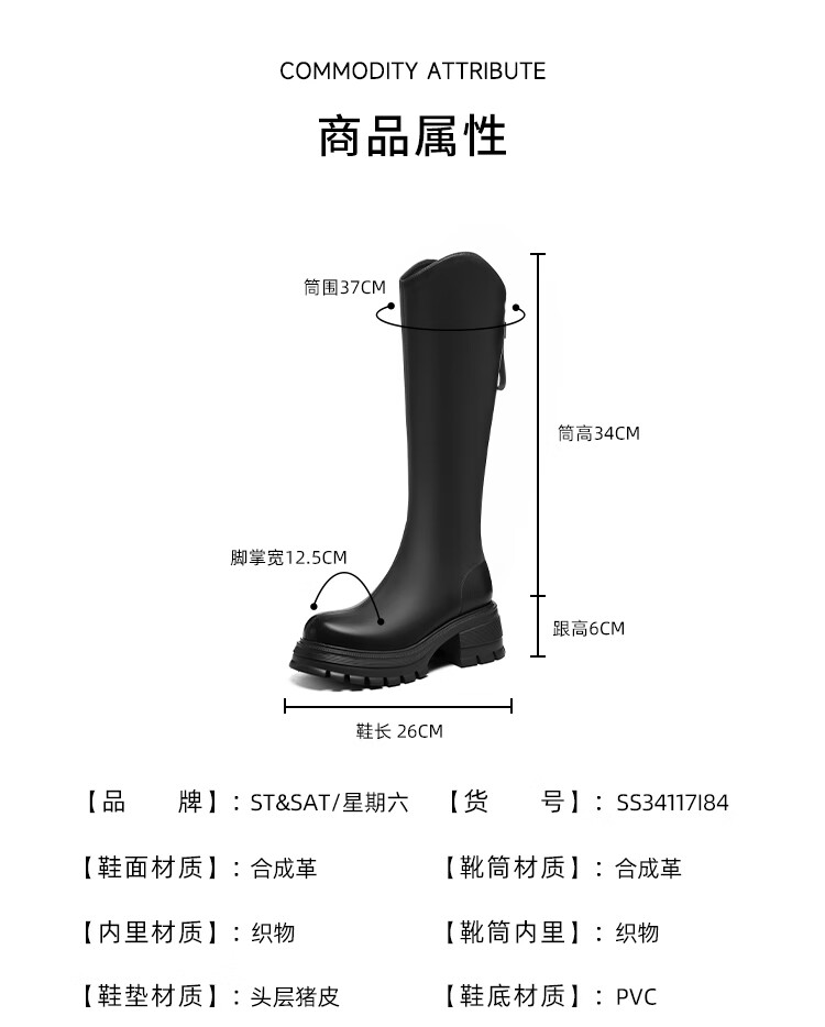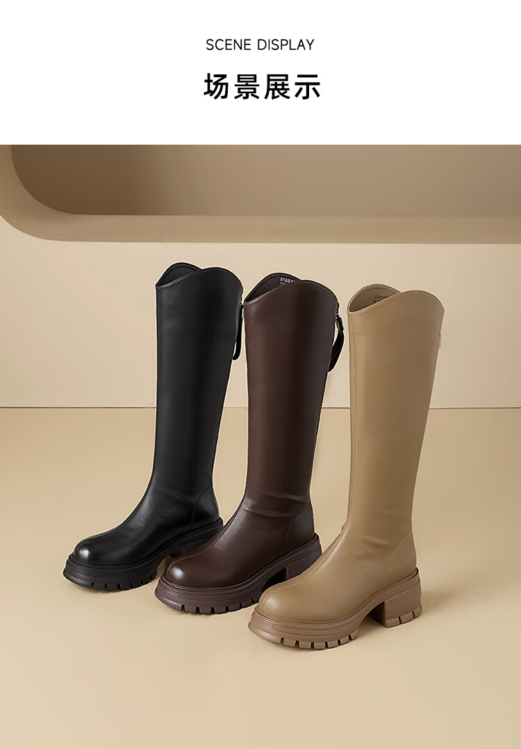 星期六v口长筒靴女2025新款秋冬复古英伦骑士靴高筒厚底增高显瘦靴子女 黑色 38
