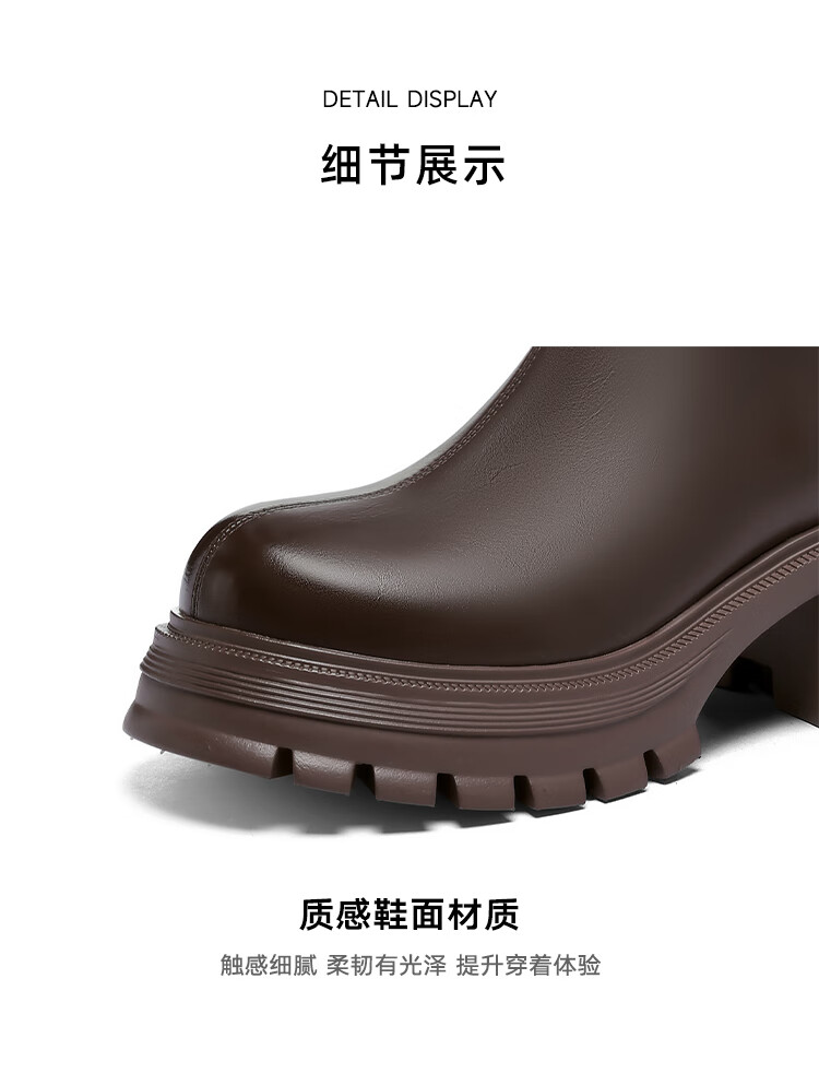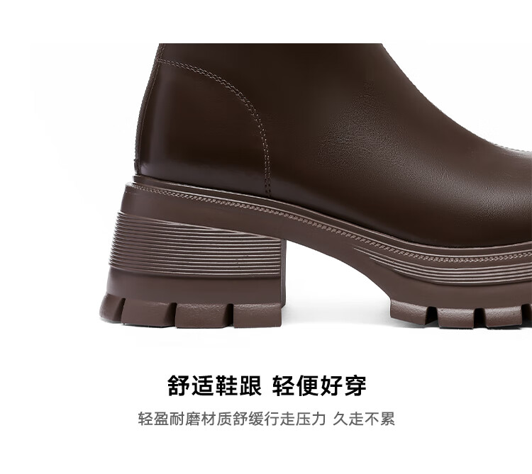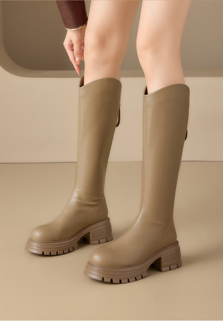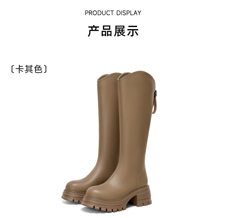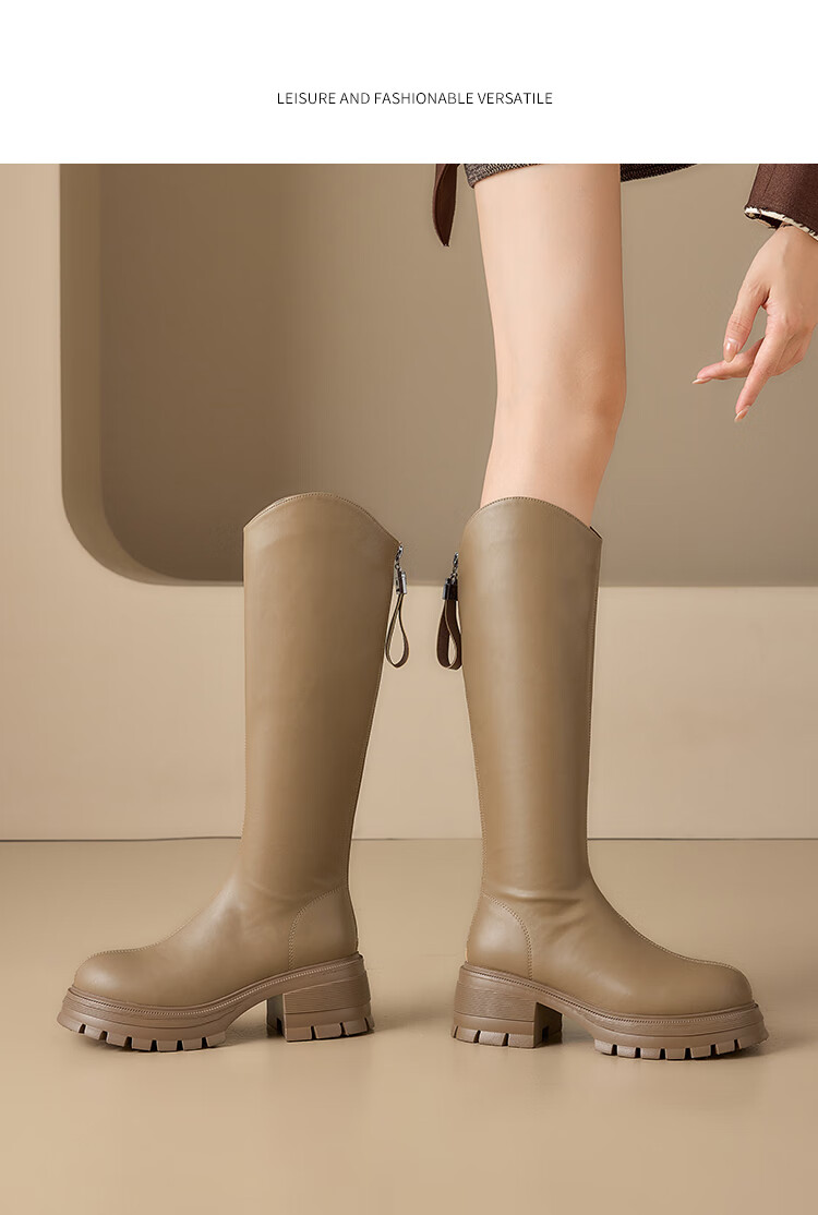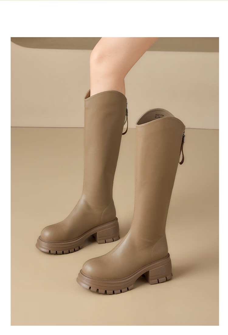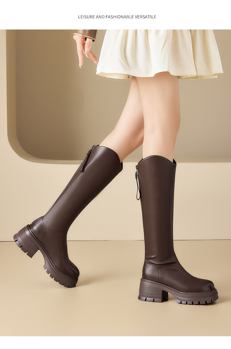 星期六v口长筒靴女2025新款秋冬复古英伦骑士靴高筒厚底增高显瘦靴子女 黑色 38