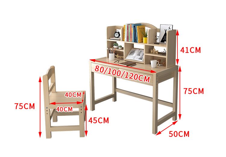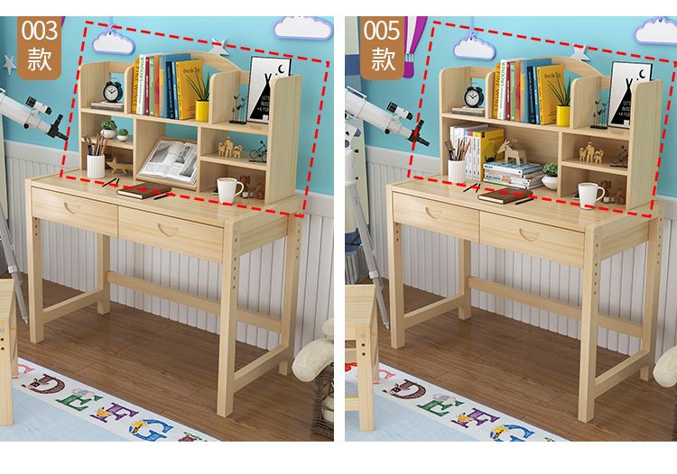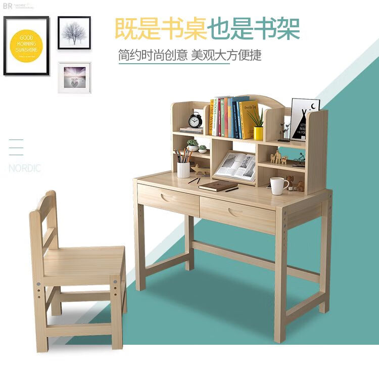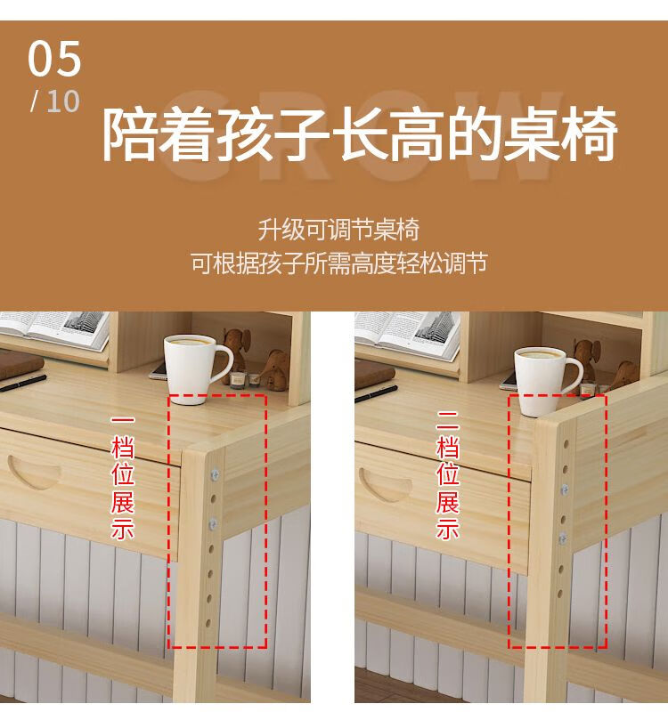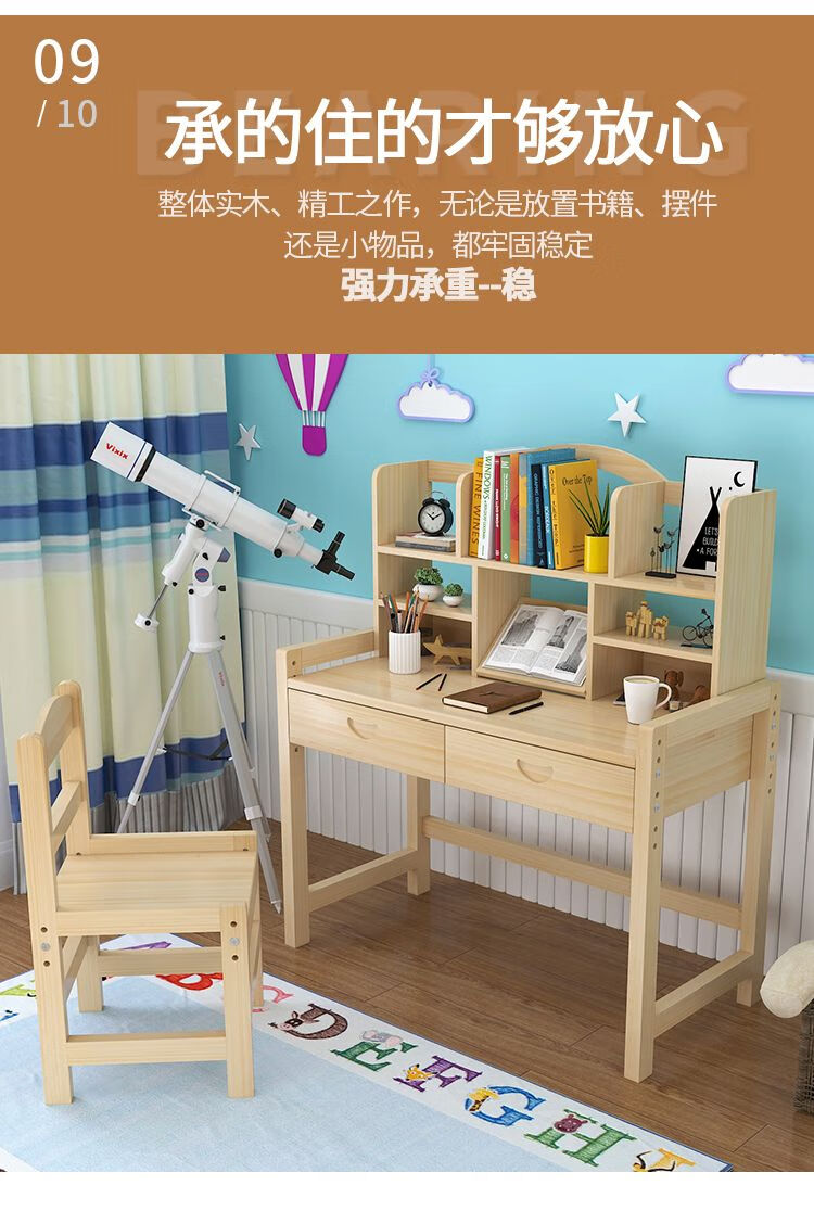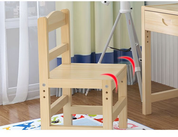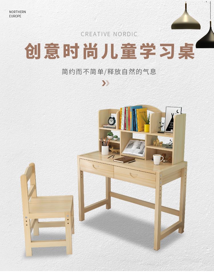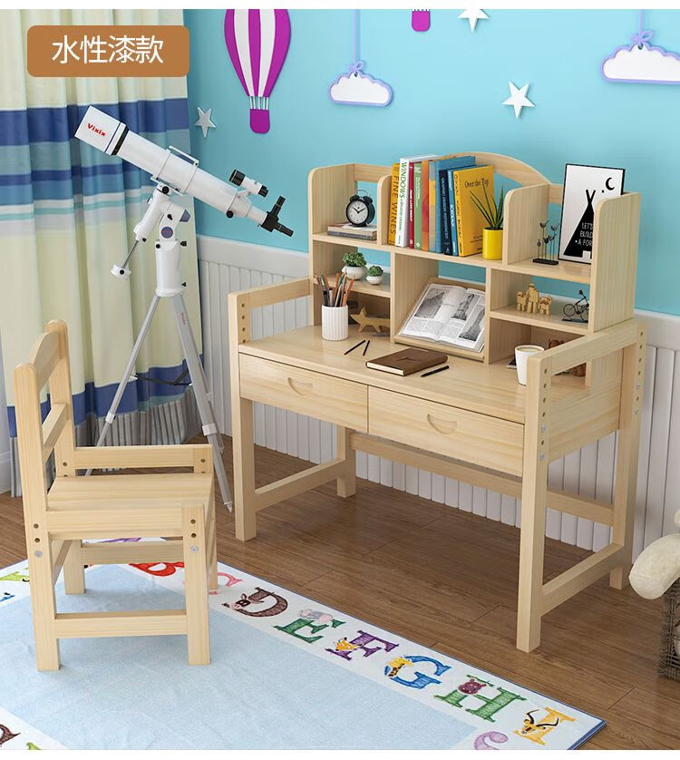 欣慕雅简约现代松木可升降学习桌小学生家用写字桌椅套装 05款原木无漆 80*50*75桌椅一套可升降