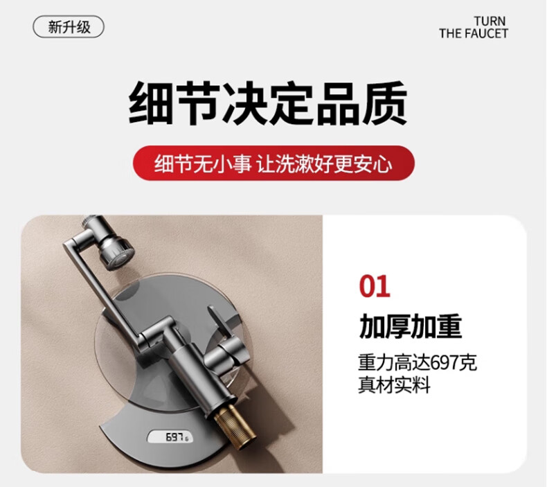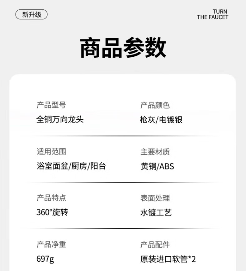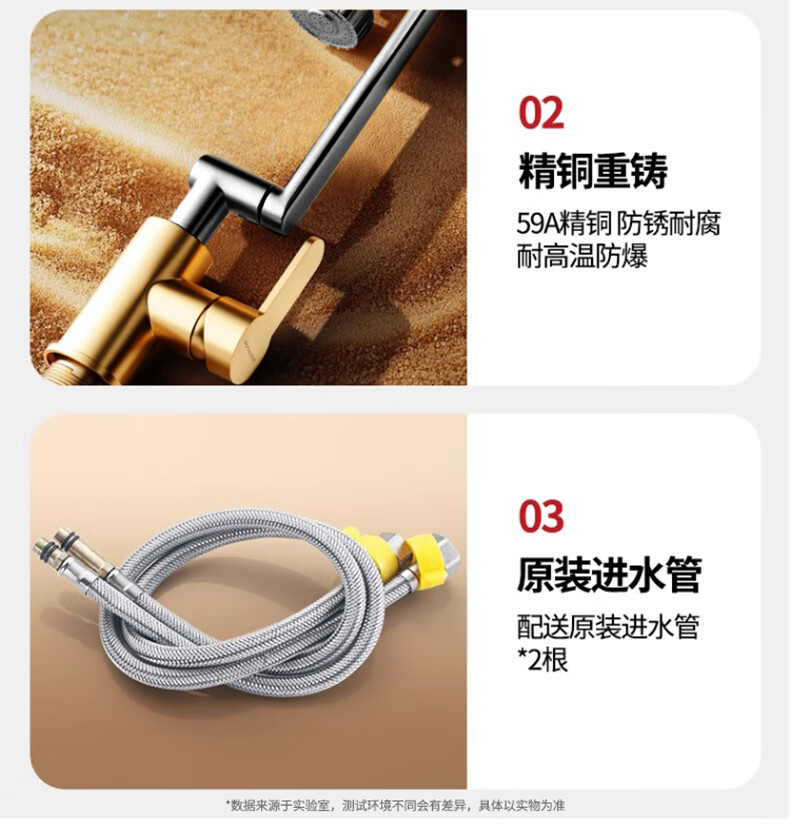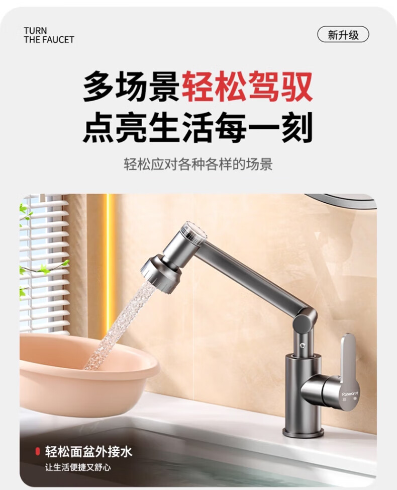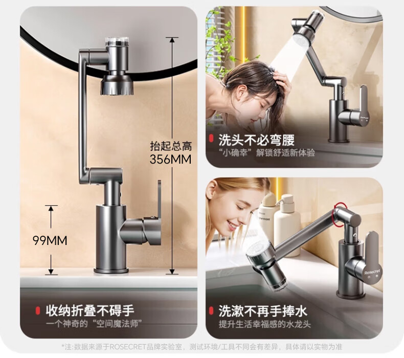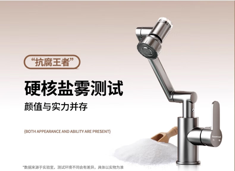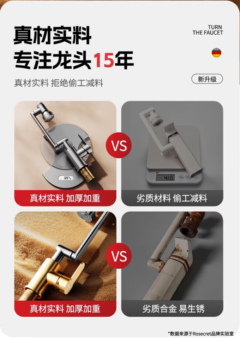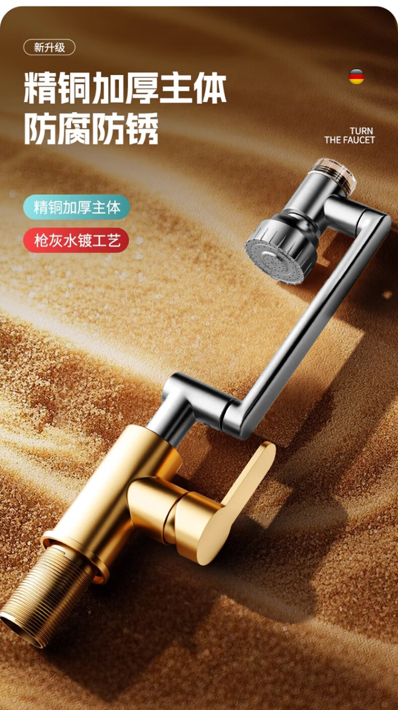 Rosecret【德国】全铜主体洗脸盆水龙头冷热水二合一过滤面盆万向旋转龙头 两档过滤面盆龙头-亮银色 加厚加重丨配80cm冷热进水管*2
