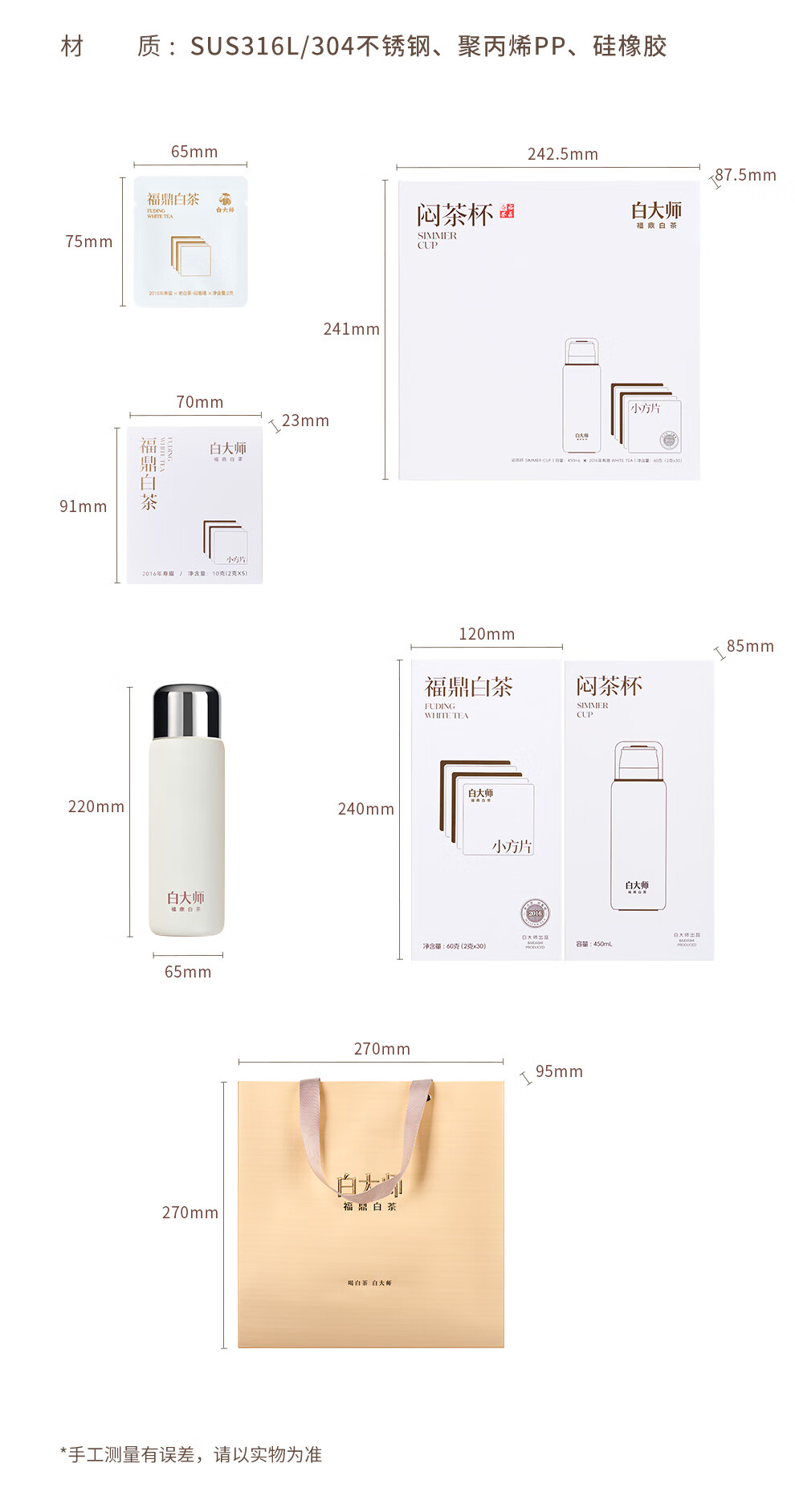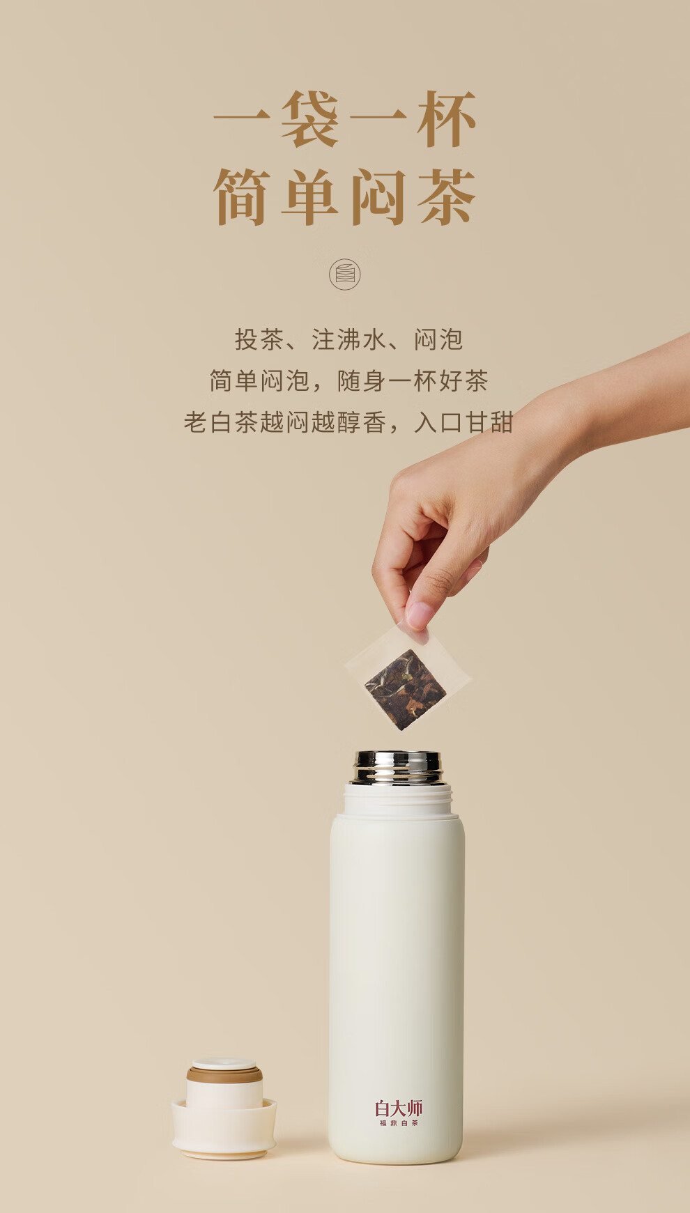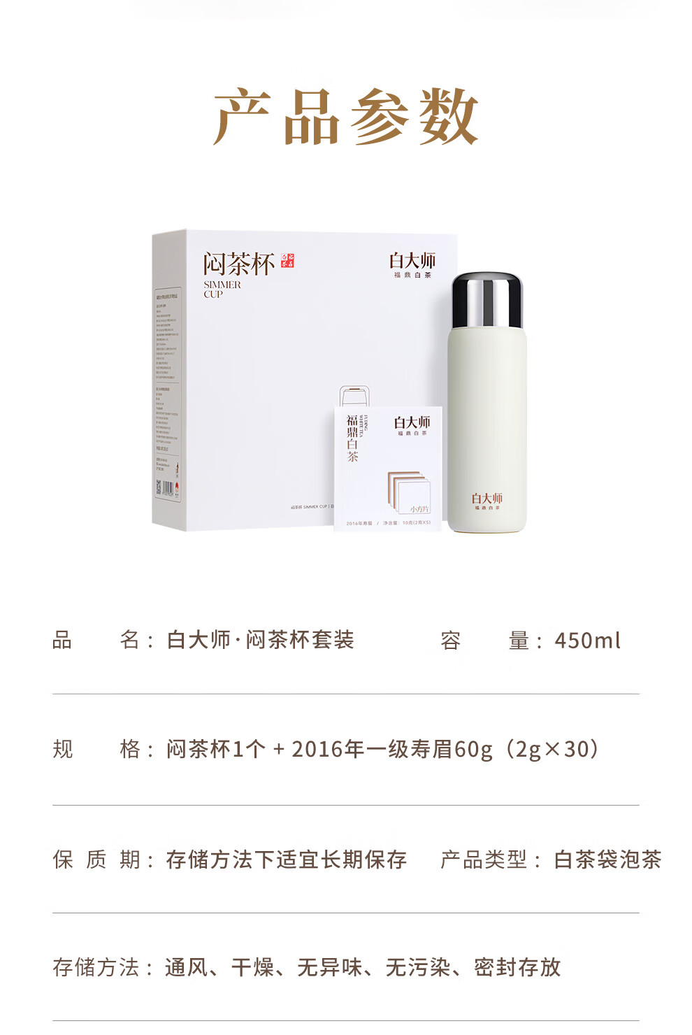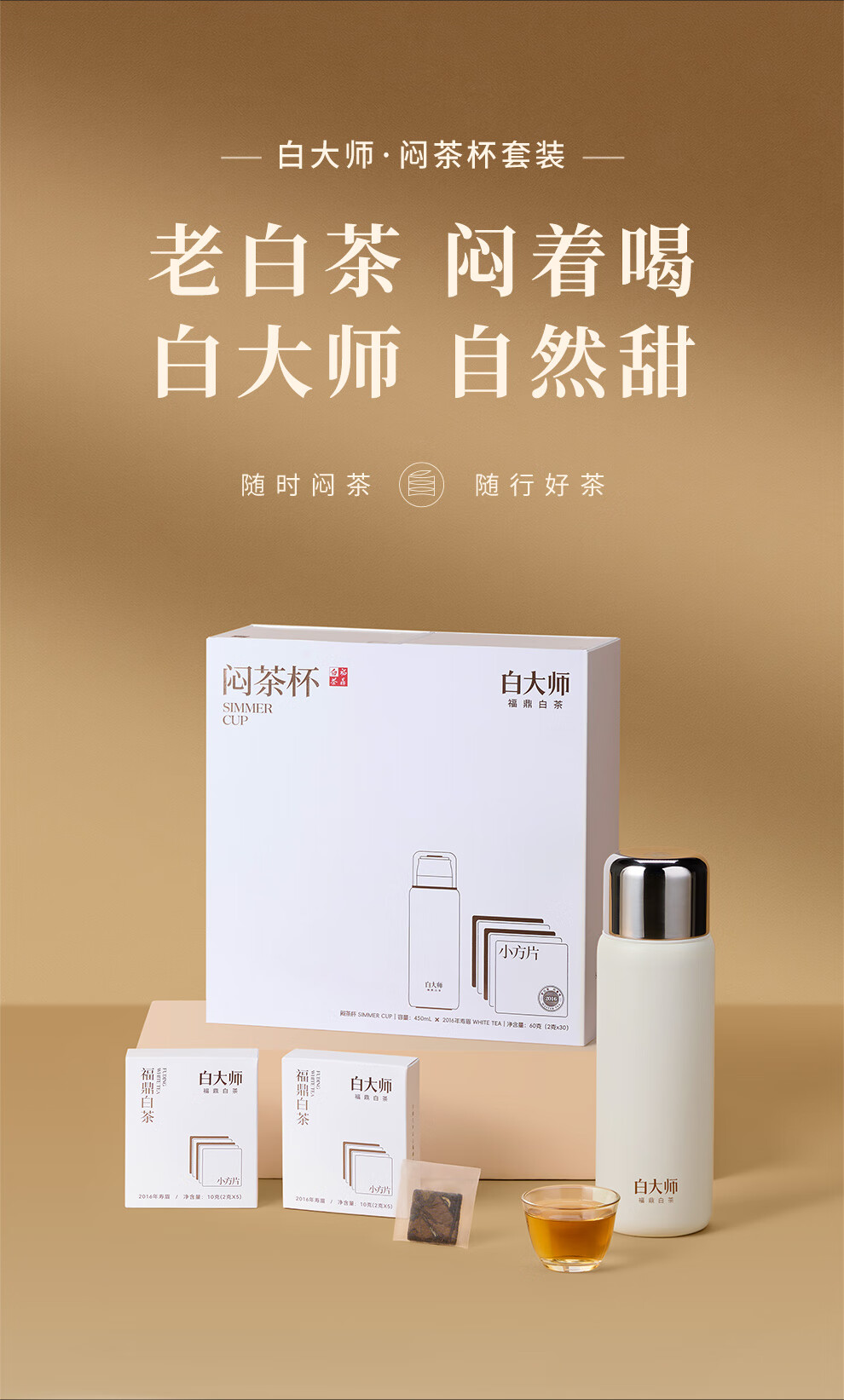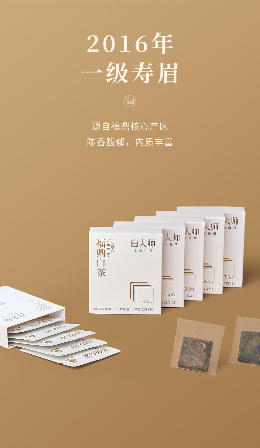 白大师白茶福鼎白茶2016年寿眉闷茶杯闷泡杯袋泡茶茶叶小方片礼盒送礼