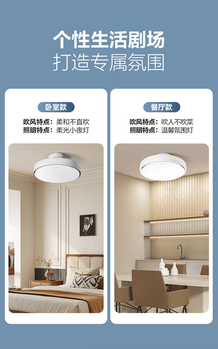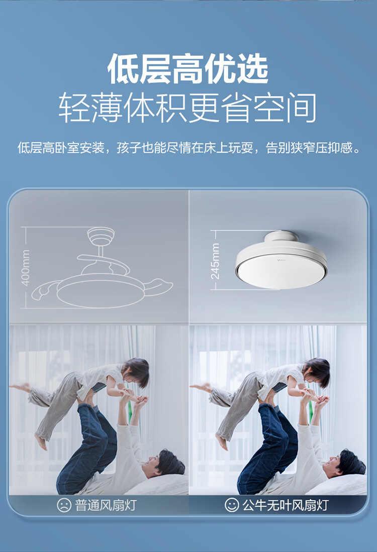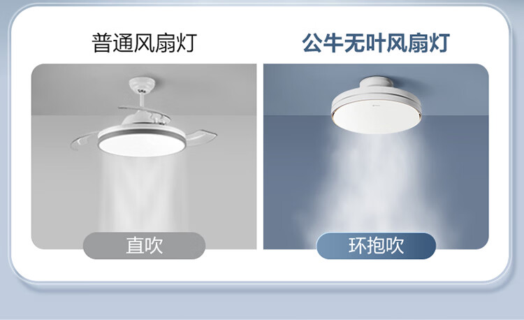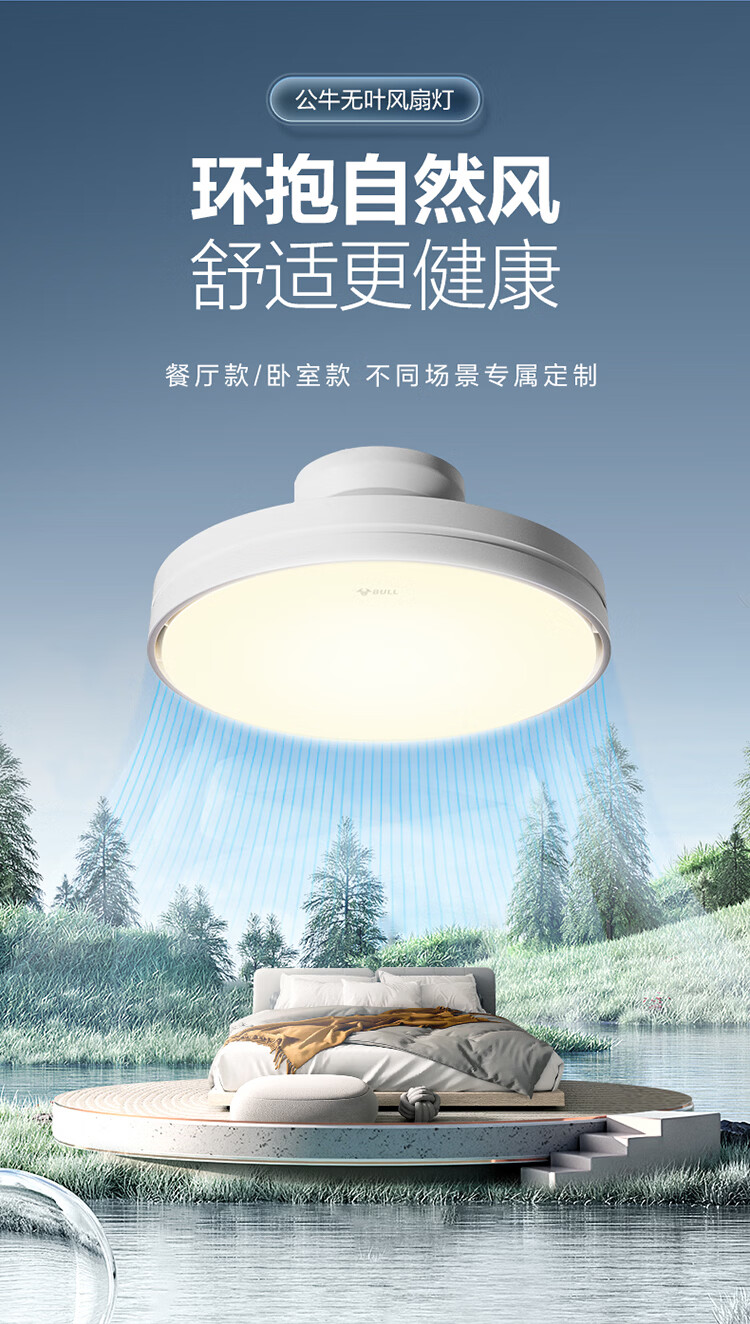 公牛(BULL)风扇灯 LED吊扇灯隐形扇叶简约中式餐厅卧室客厅遥控高显指包安装 【F39A|餐厅无叶款】91W