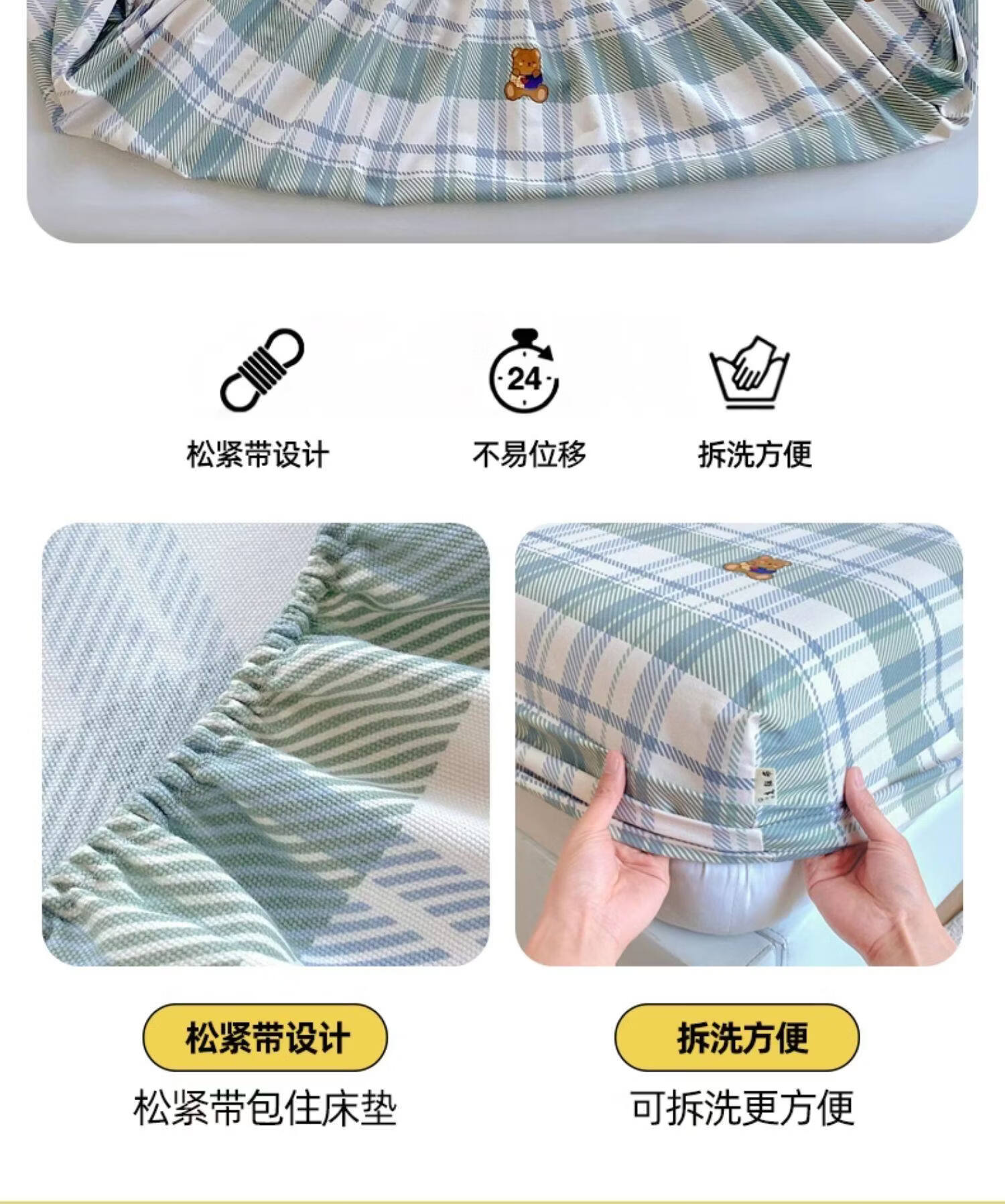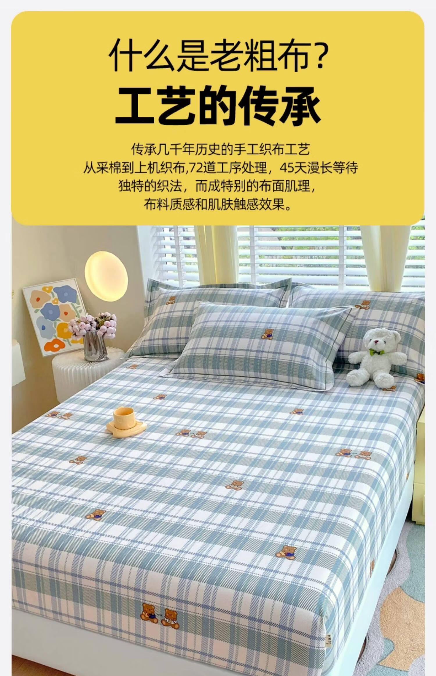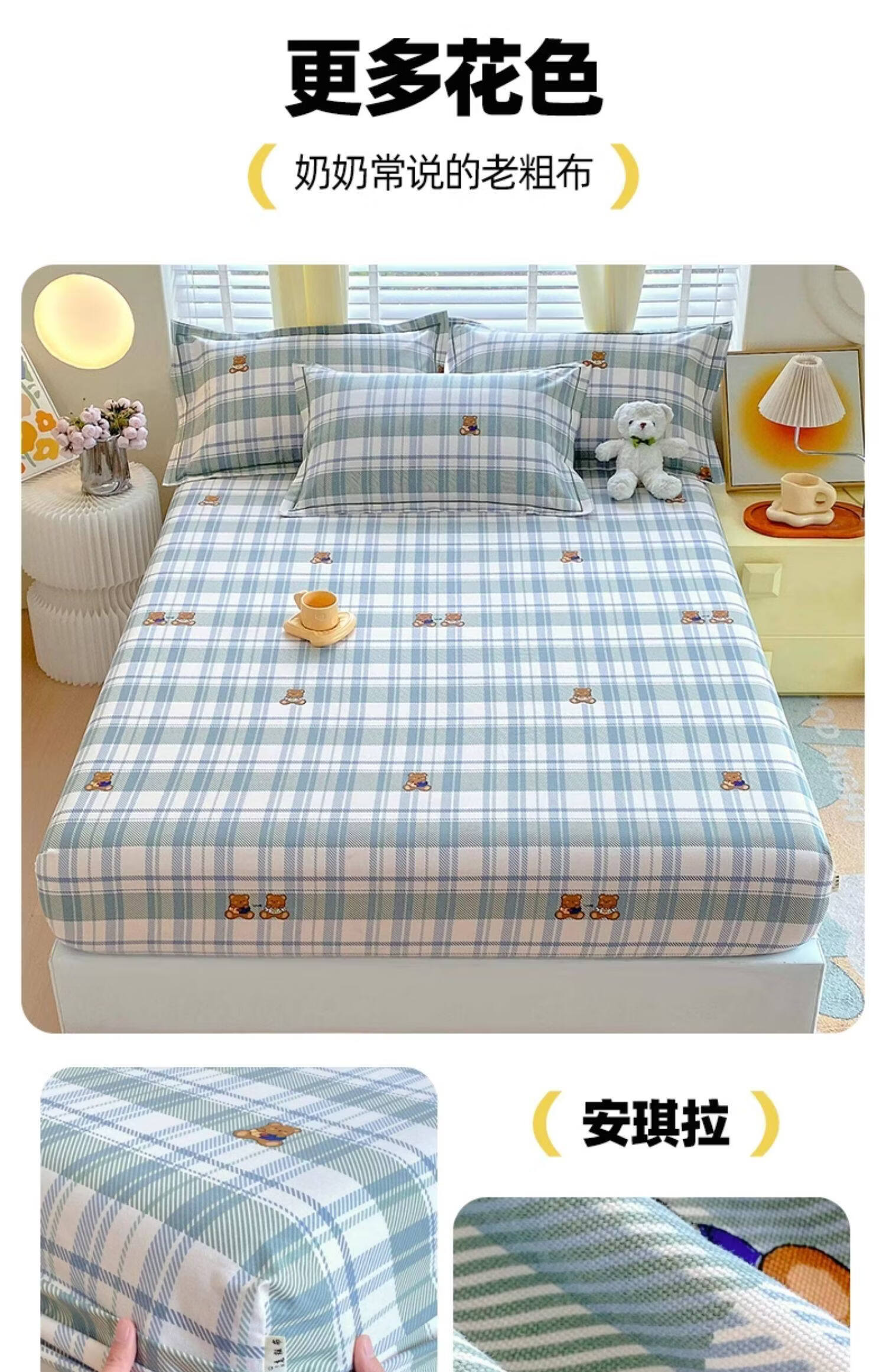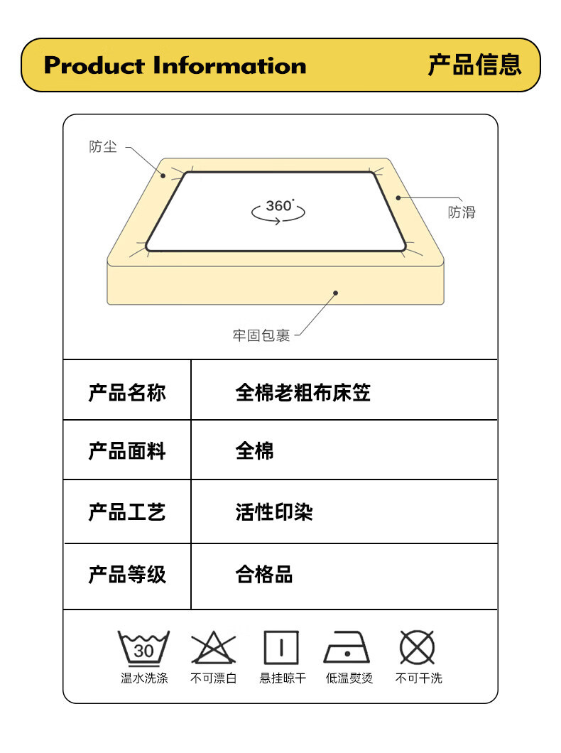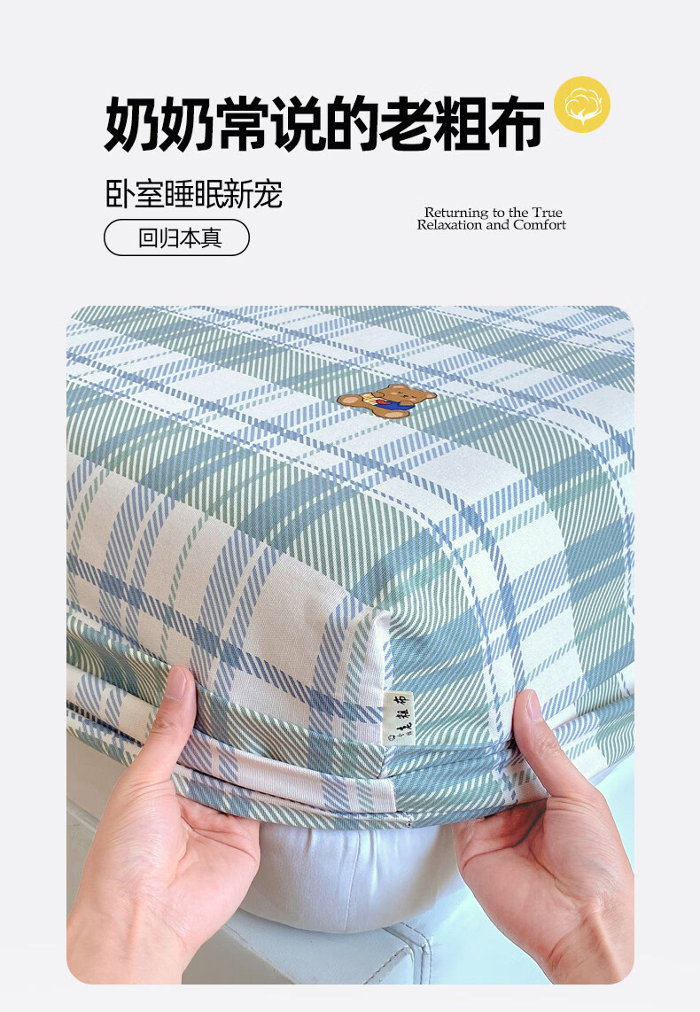 无印良品纯棉老粗布床笠单件全棉床垫保护套全包床罩加厚防滑床单套防尘罩 简约粉 【100%纯棉加厚老粗布】 三件套-150x200cm床笠+枕套一对