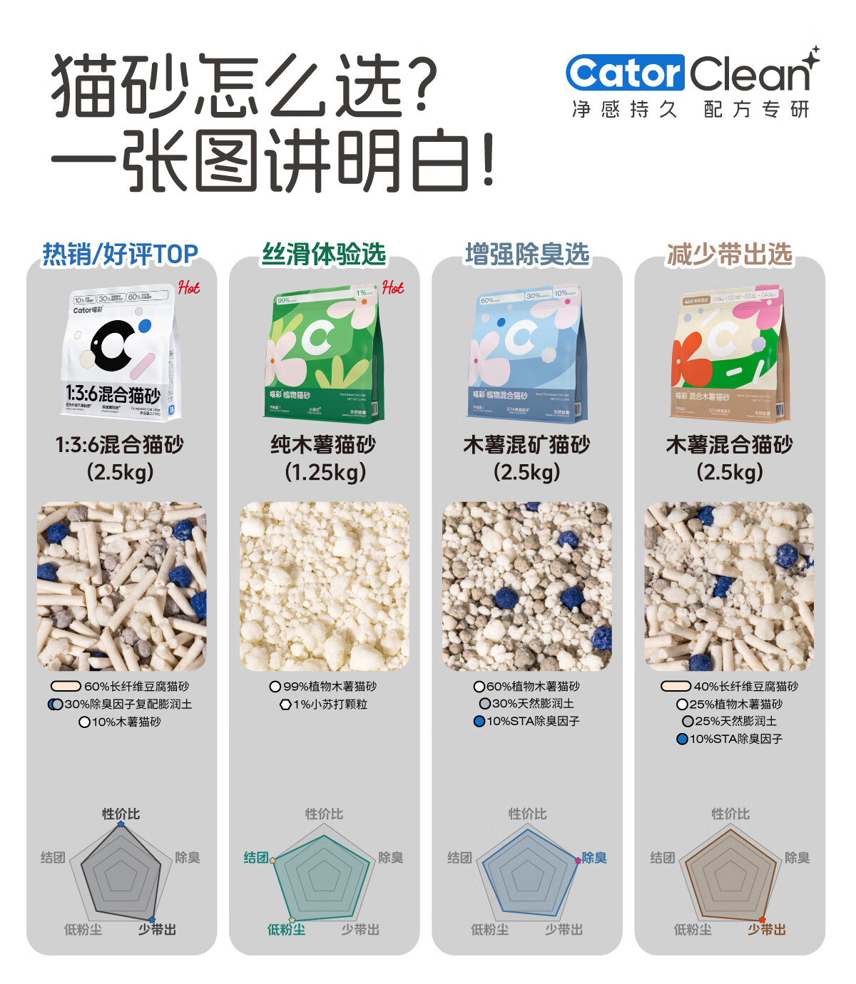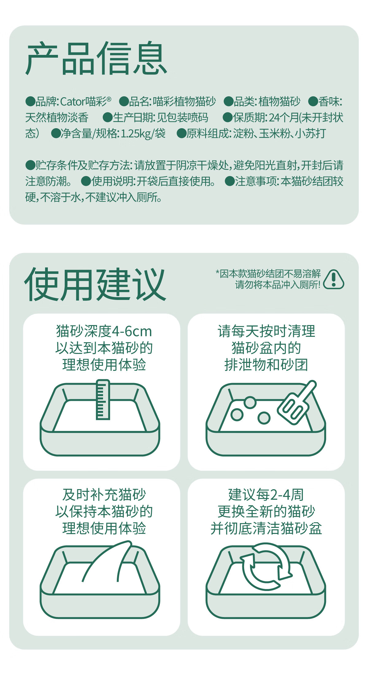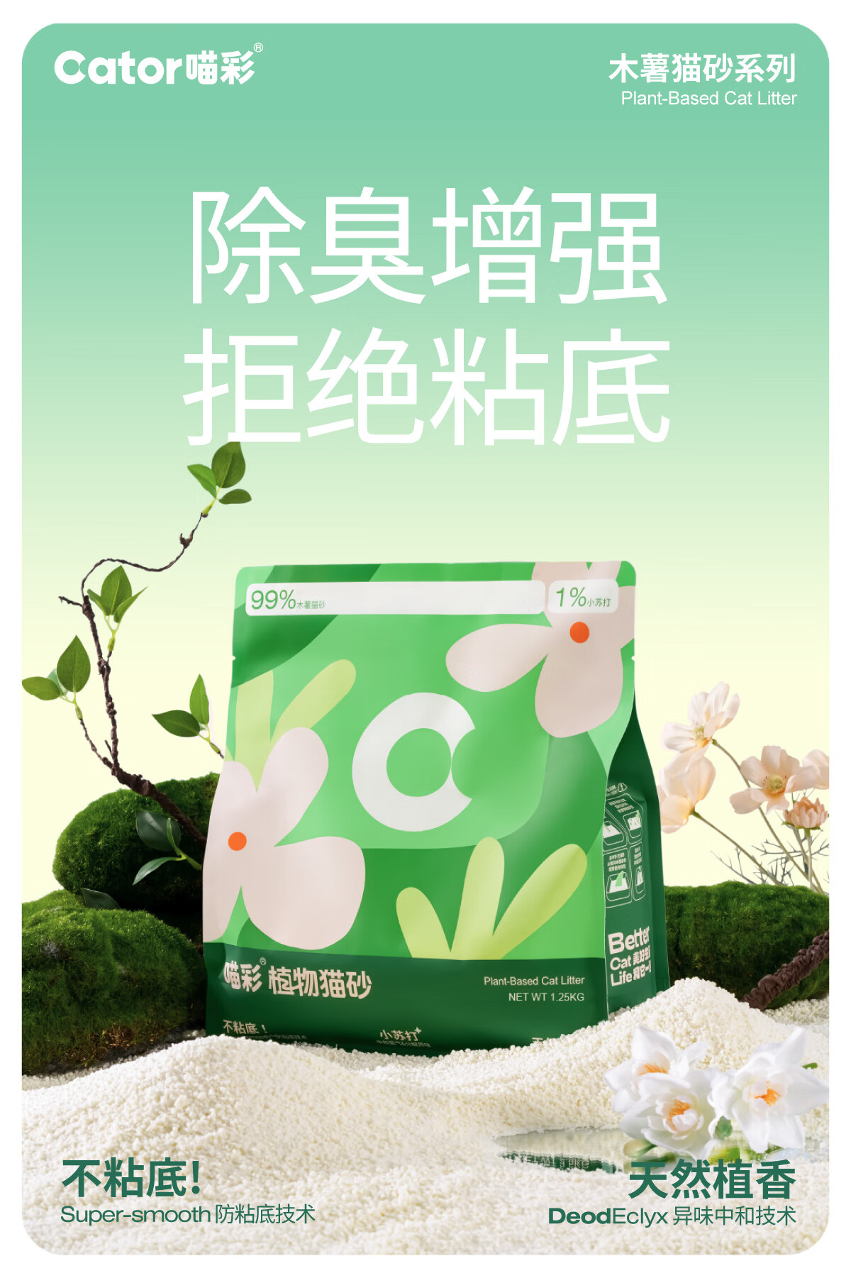 喵彩纯木薯猫砂不粘底除臭猫砂强吸水结团1.25kg/包 植物木薯砂*4【10斤】众砂可混