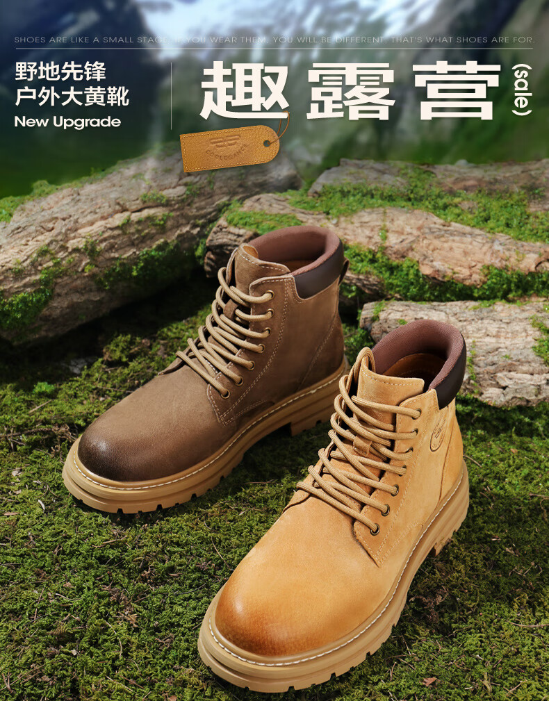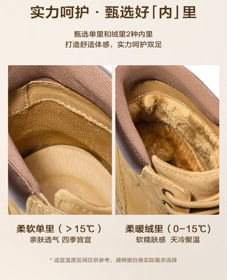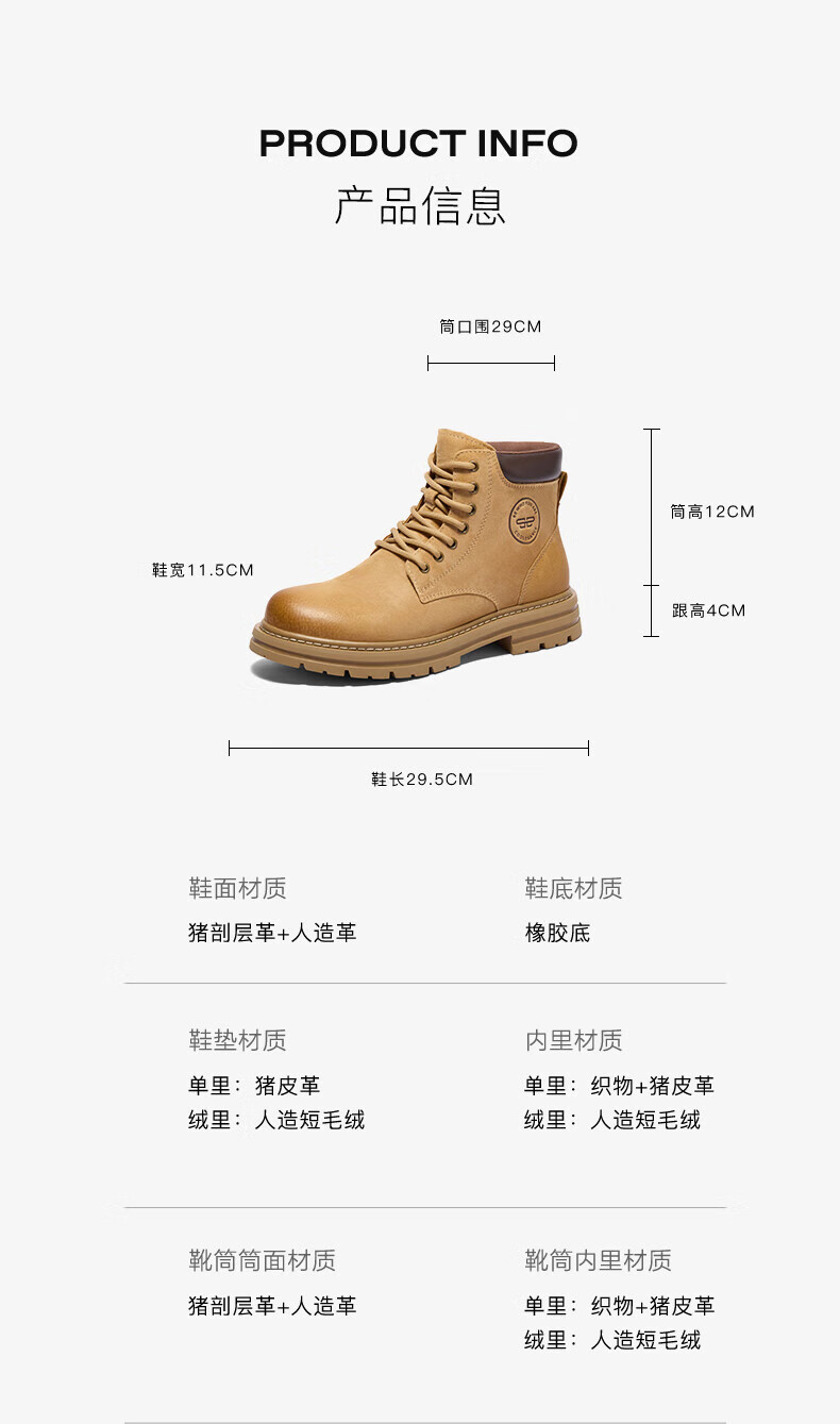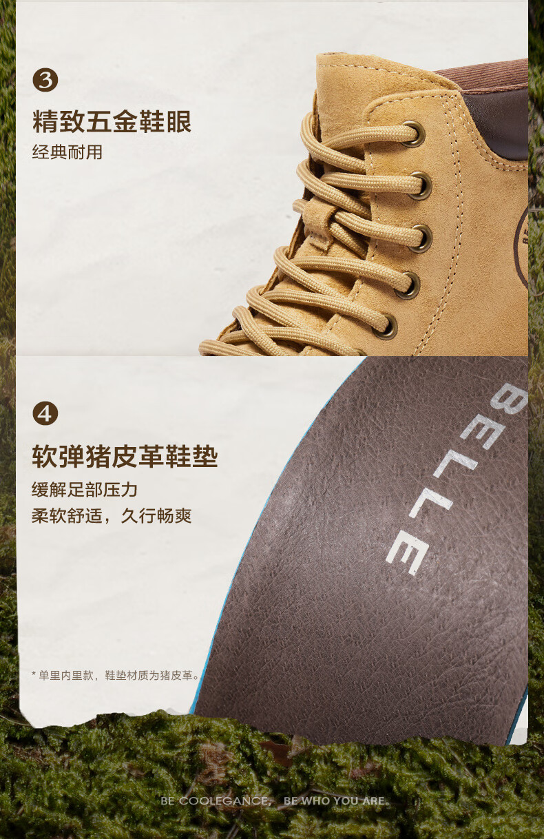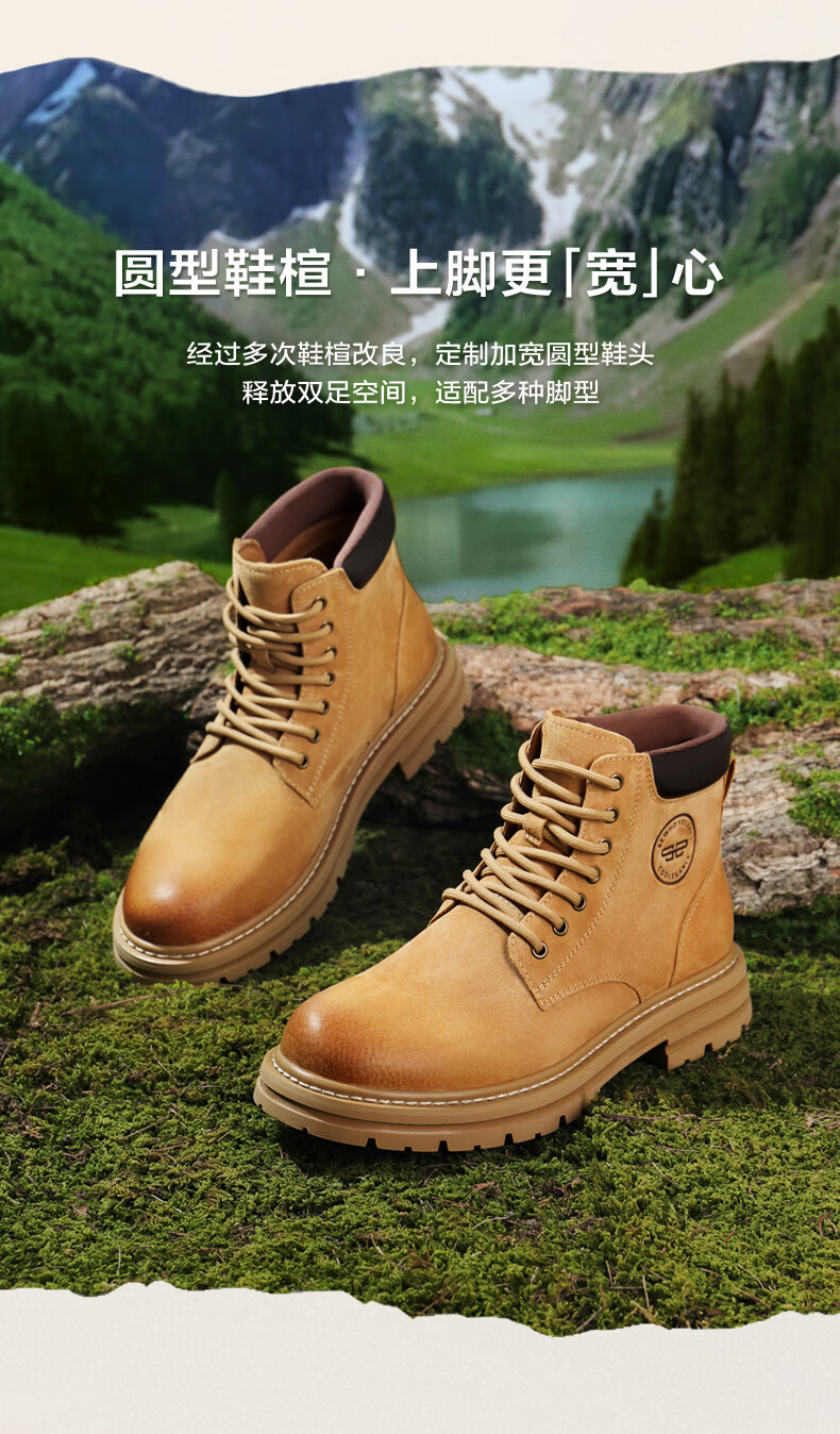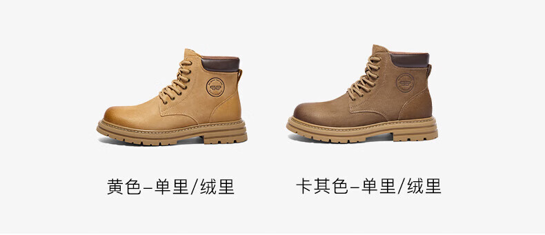 百丽趣露营野地先锋户外男厚底大黄靴子加绒保暖A1763DD4 土黄单里 40