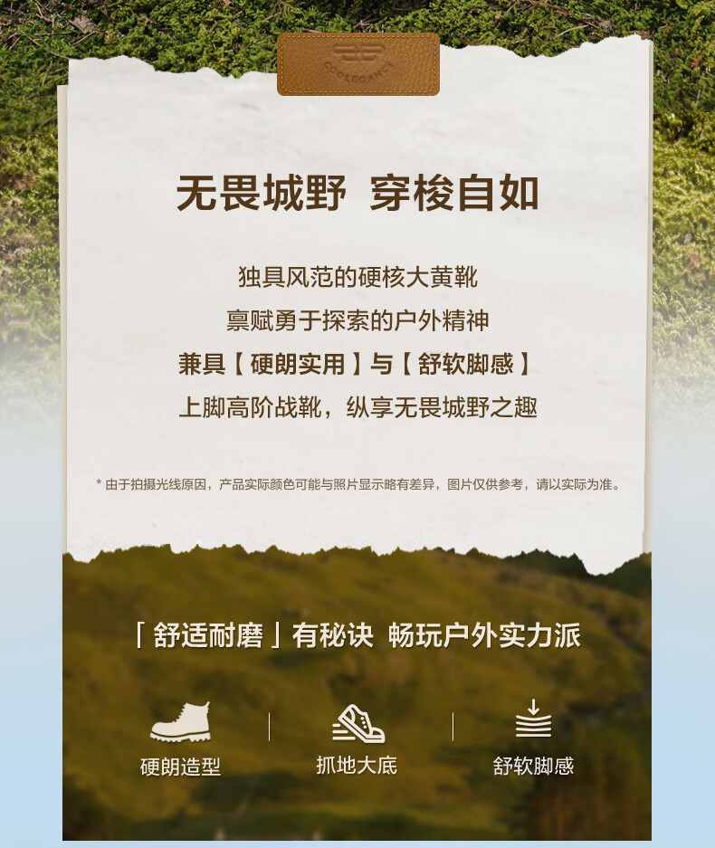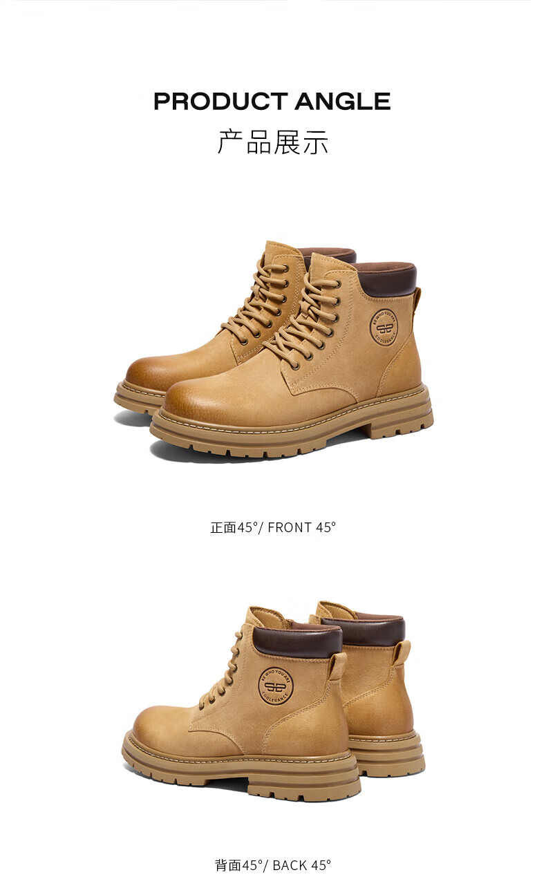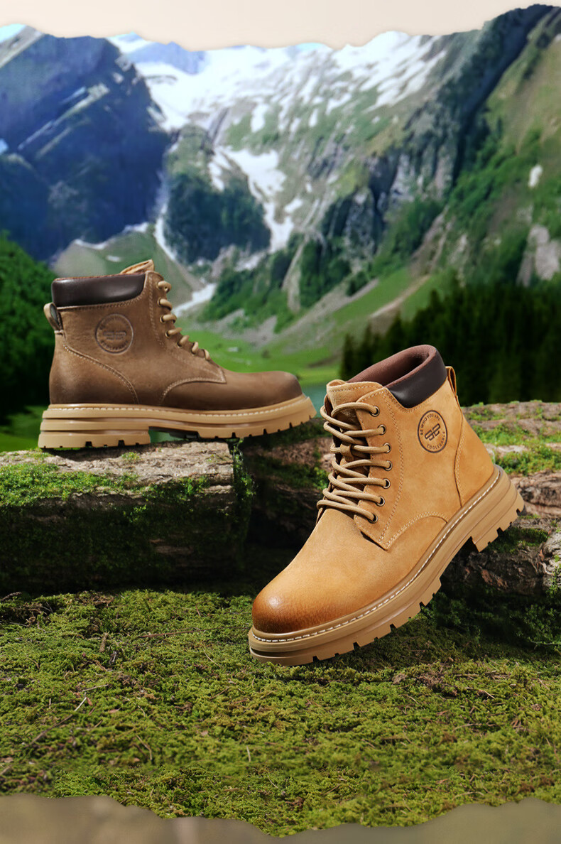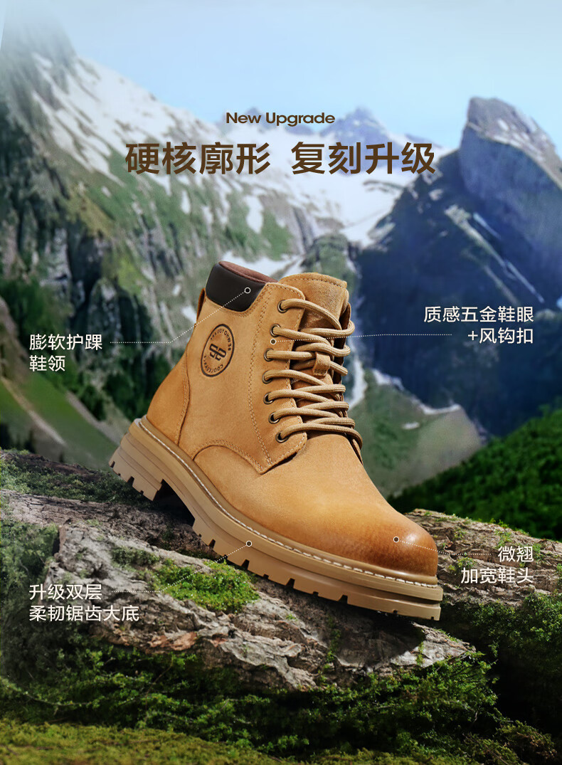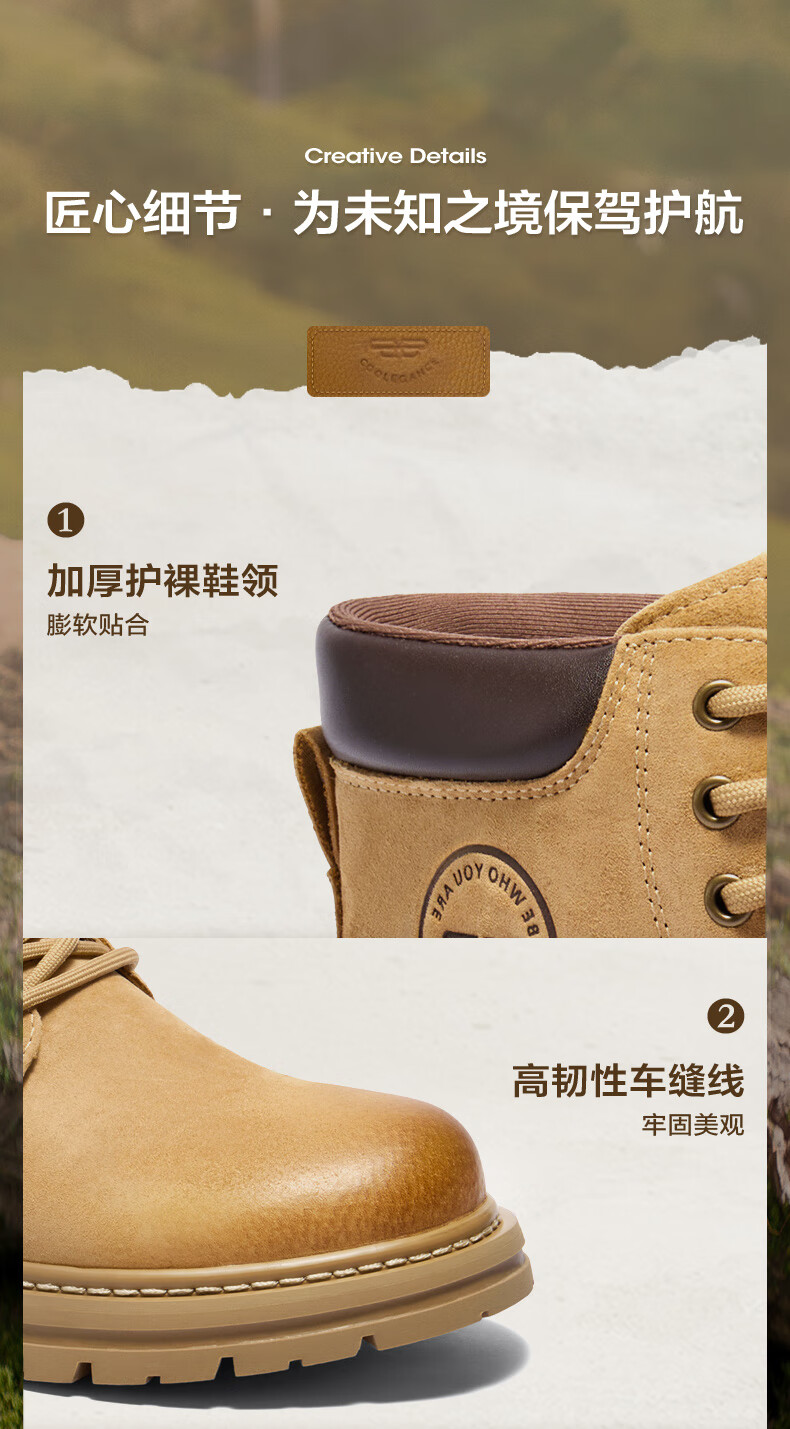 百丽趣露营野地先锋户外男厚底大黄靴子加绒保暖A1763DD4 土黄单里 40