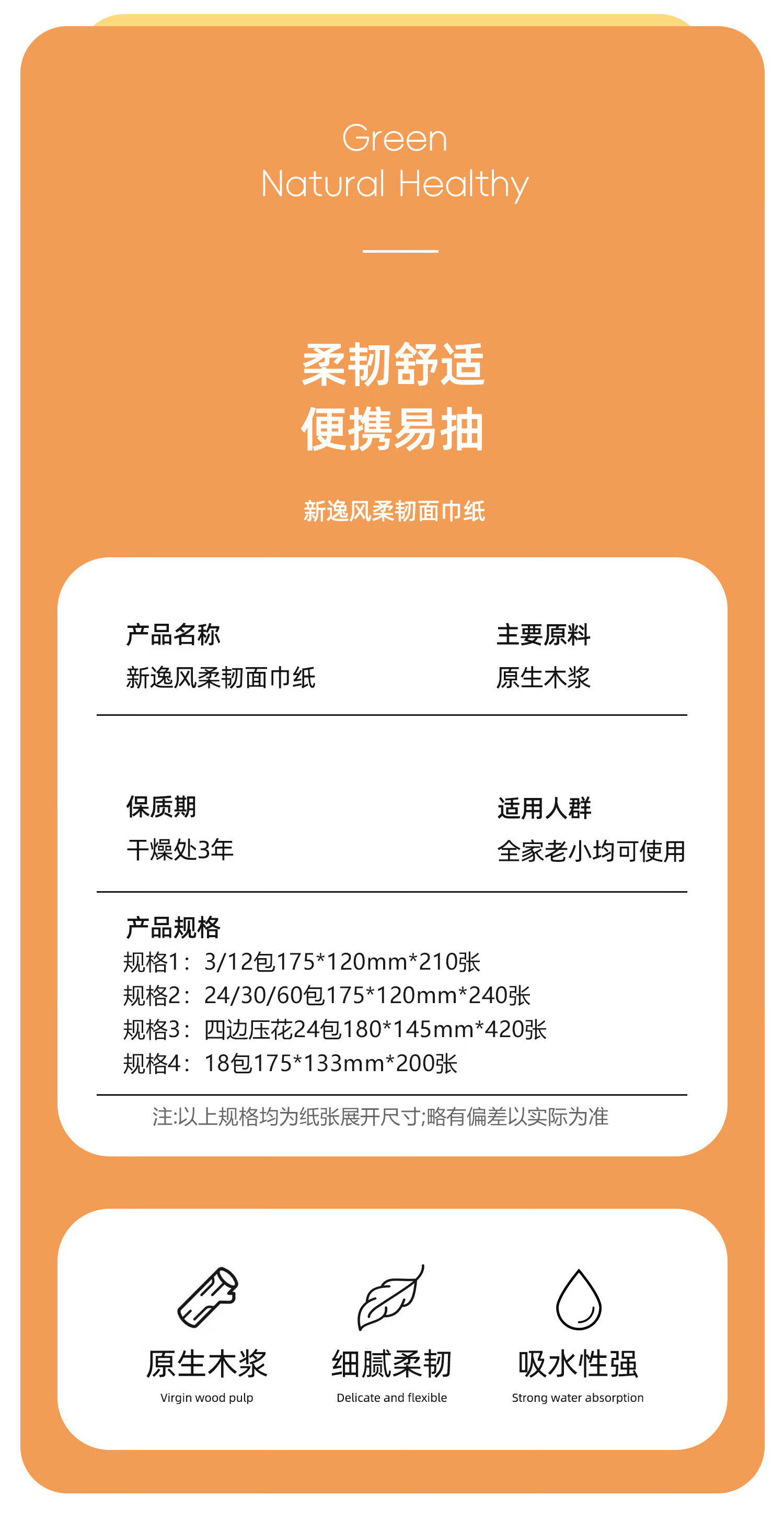 新逸风(XINYIFENG)抽纸卫生纸加厚面巾纸木浆抽纸家庭装抽取式纸巾 5层 210张*20包