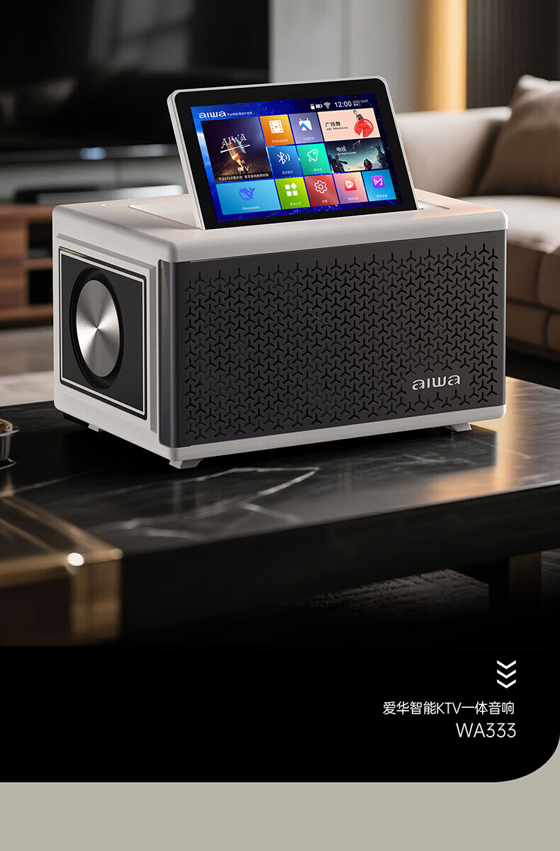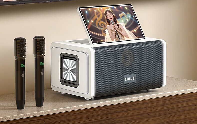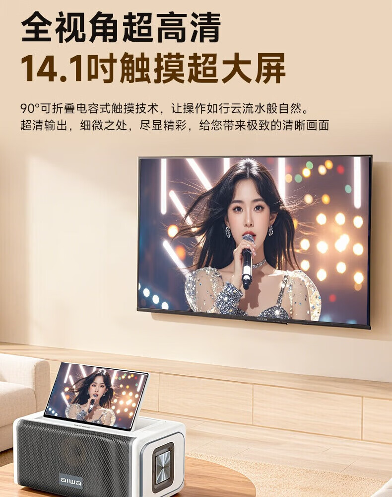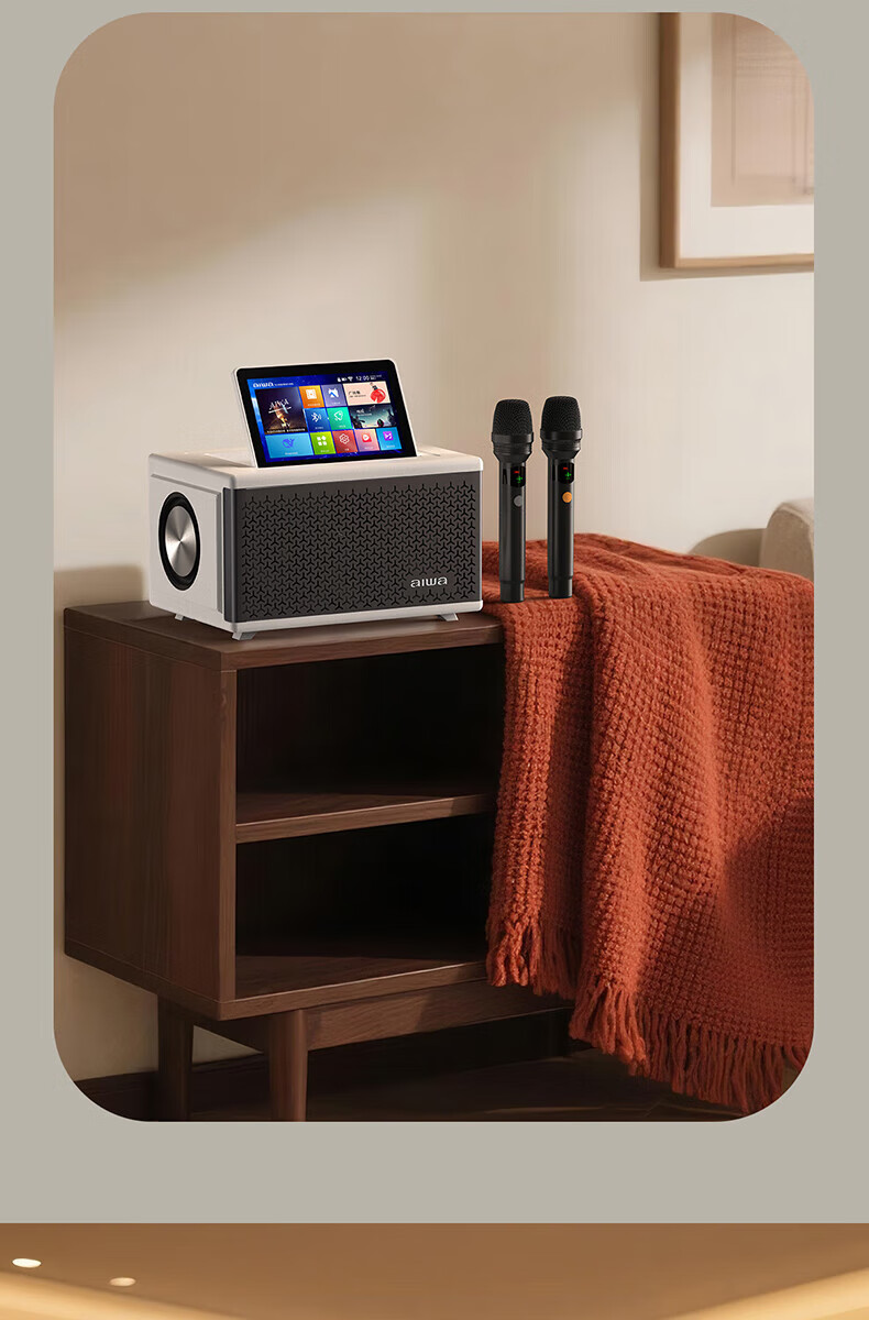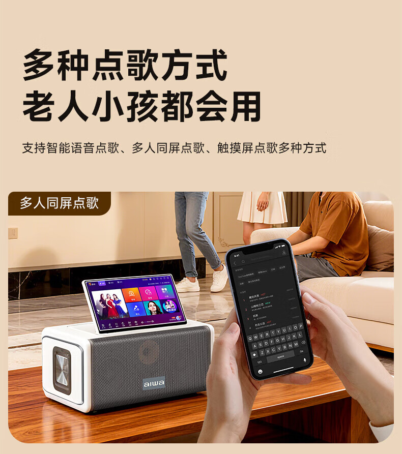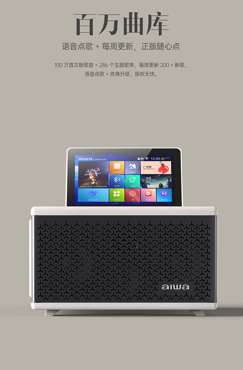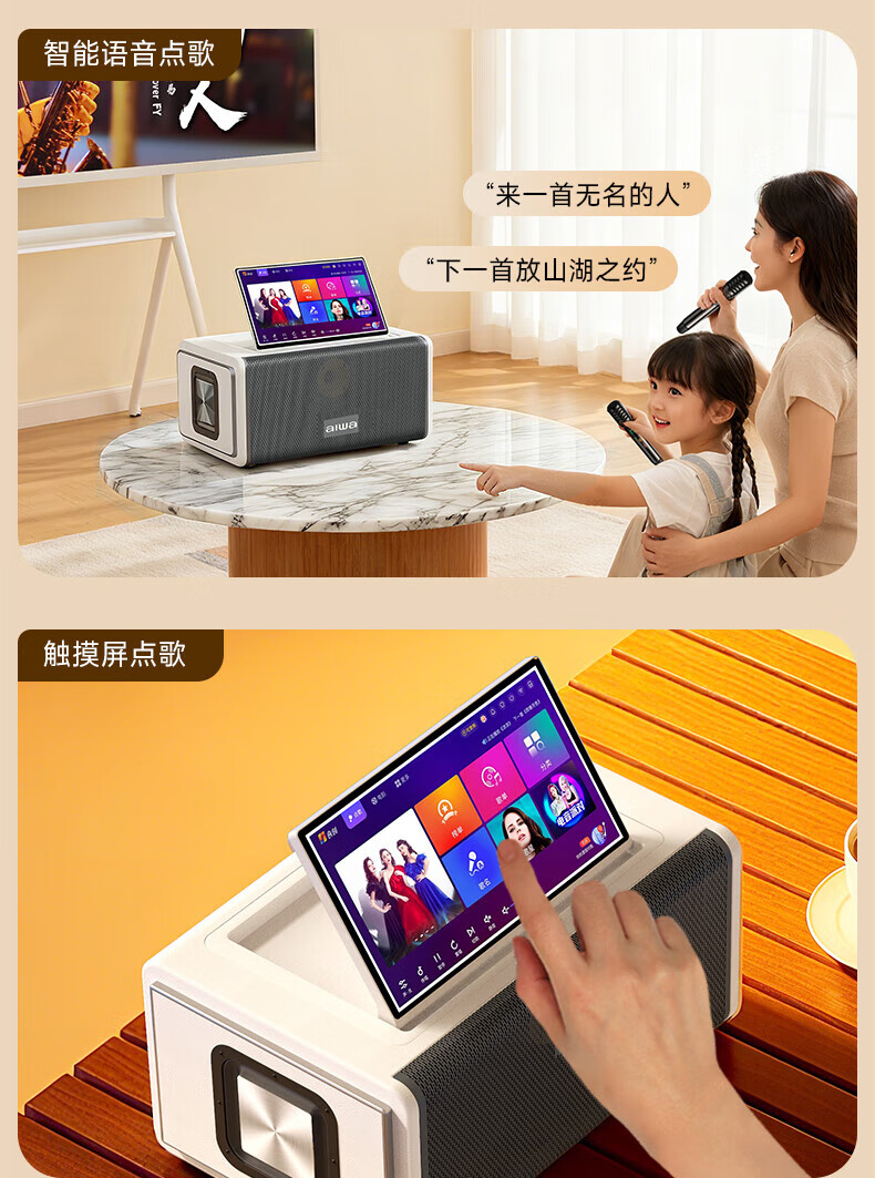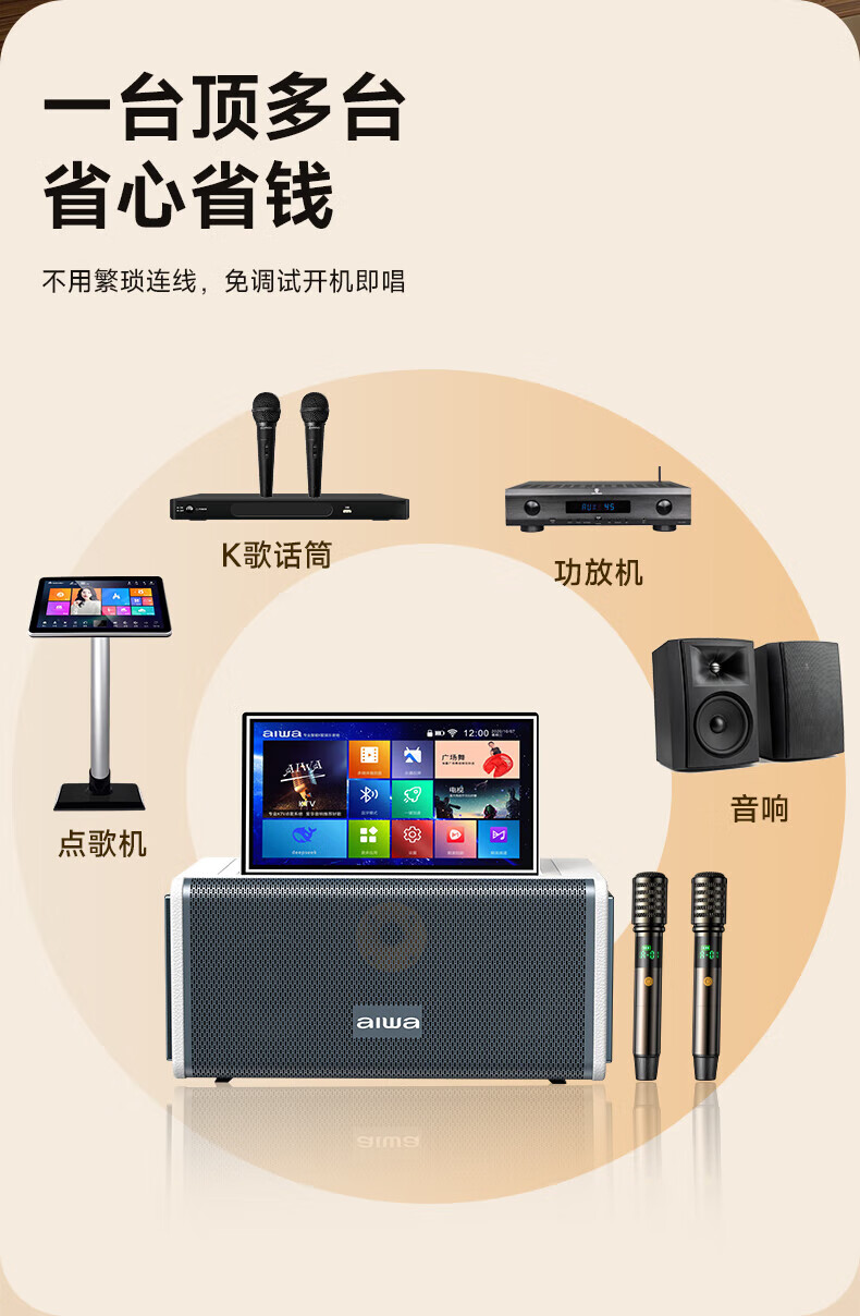 aiwa【2025新款】爱华家庭KTV音响套装户外广场舞便携式带屏点歌机一机多用蓝牙音响电木吉他乐器音箱 【14吋带屏点歌机】6个喇叭+KTV系统+广场舞+90万歌库 官方正品