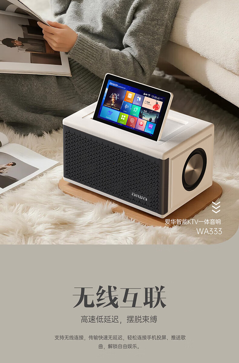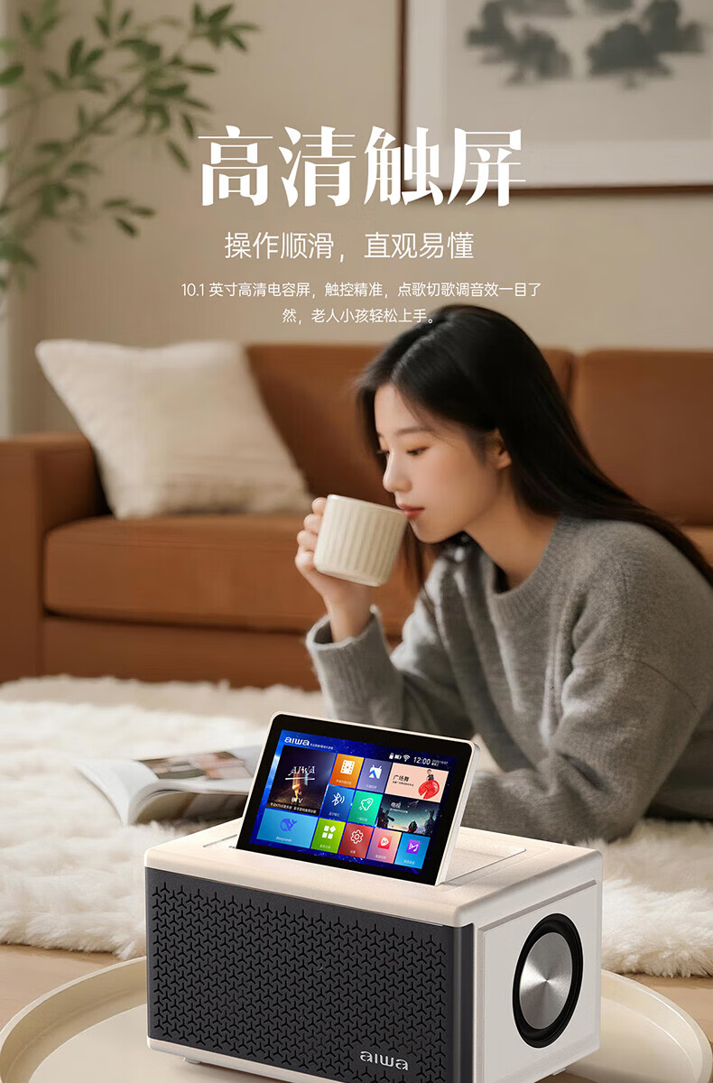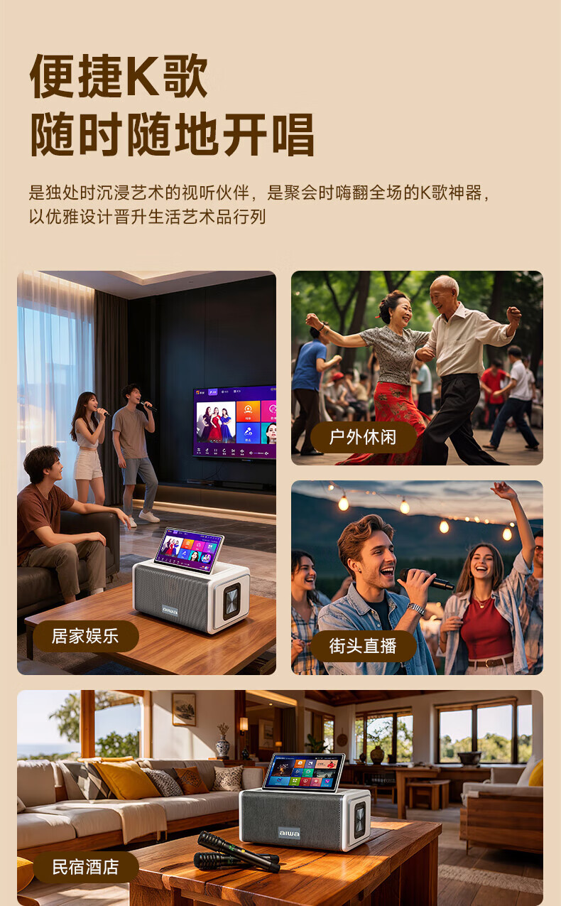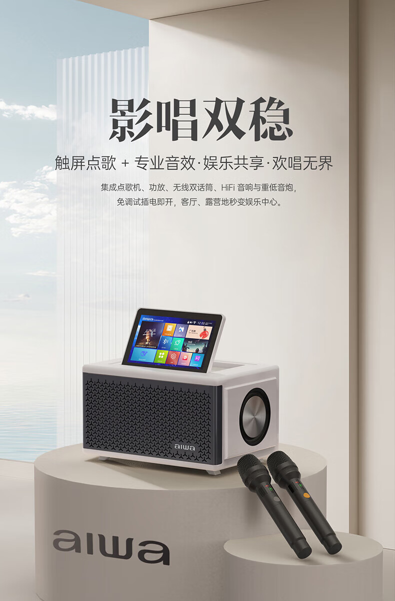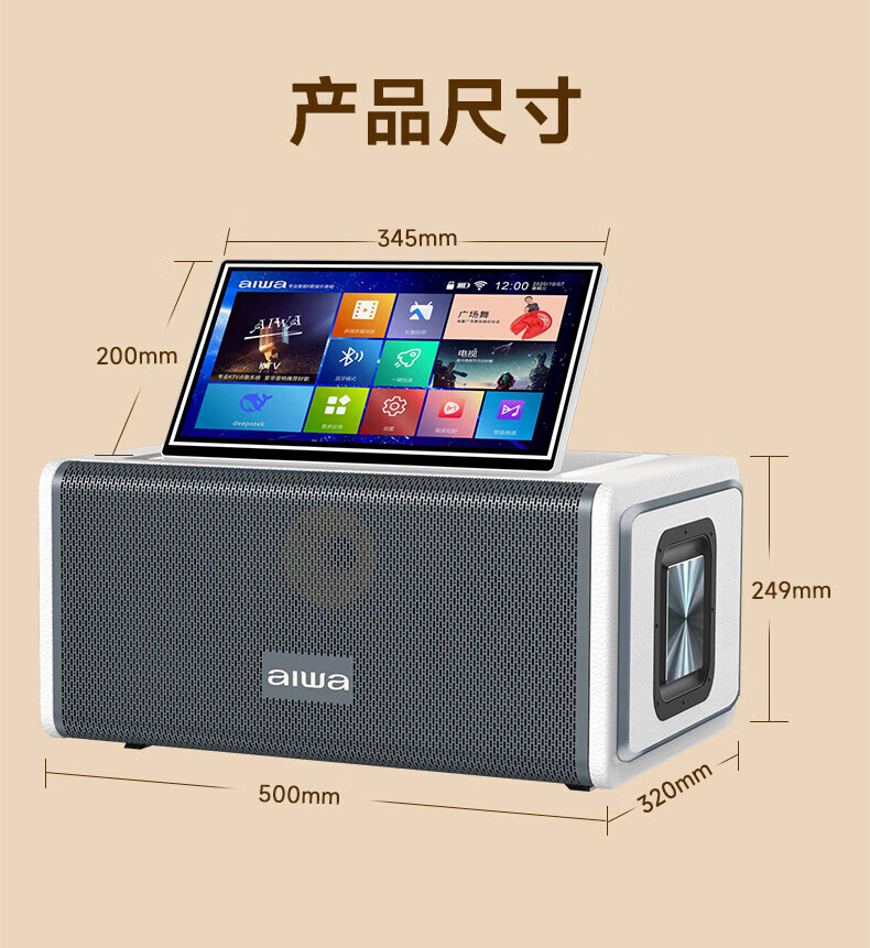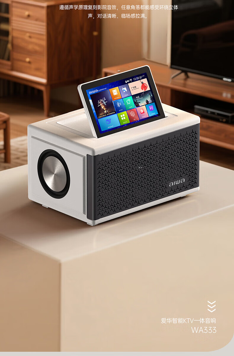 aiwa【2025新款】爱华家庭KTV音响套装户外广场舞便携式带屏点歌机一机多用蓝牙音响电木吉他乐器音箱 【14吋带屏点歌机】6个喇叭+KTV系统+广场舞+90万歌库 官方正品