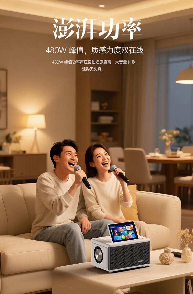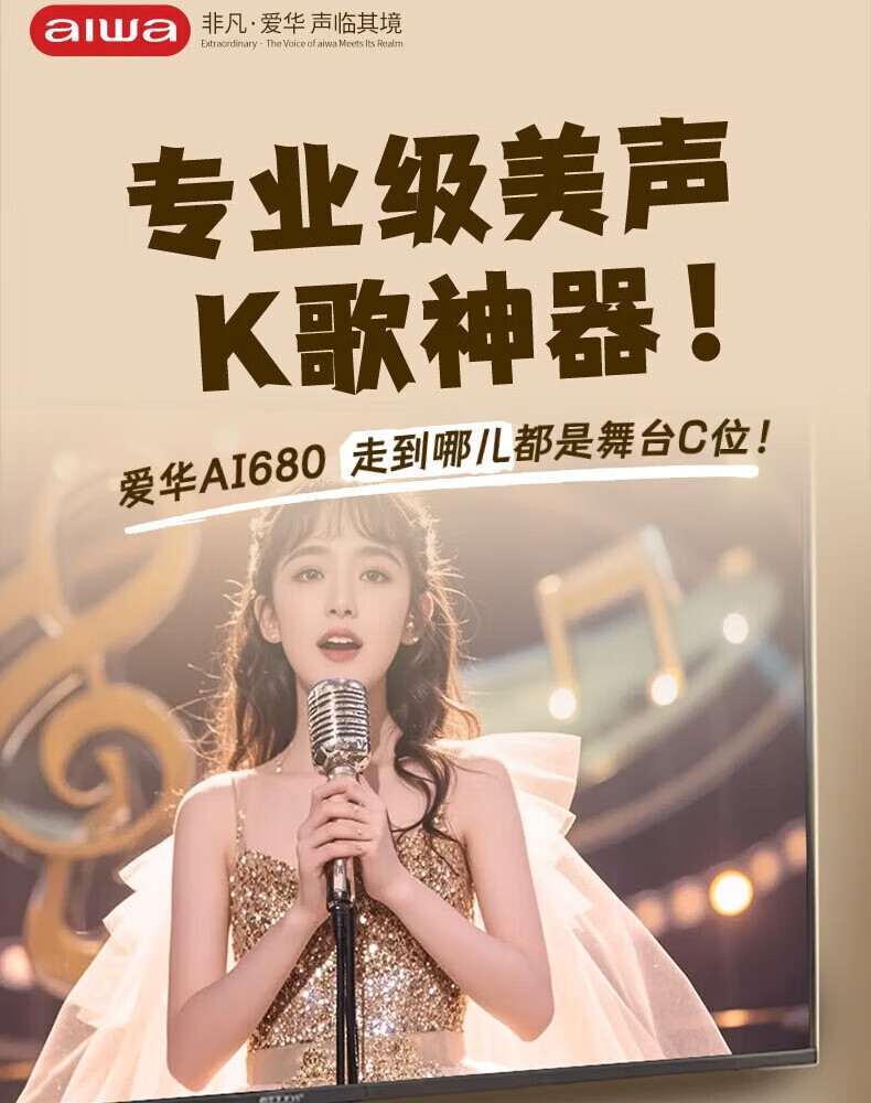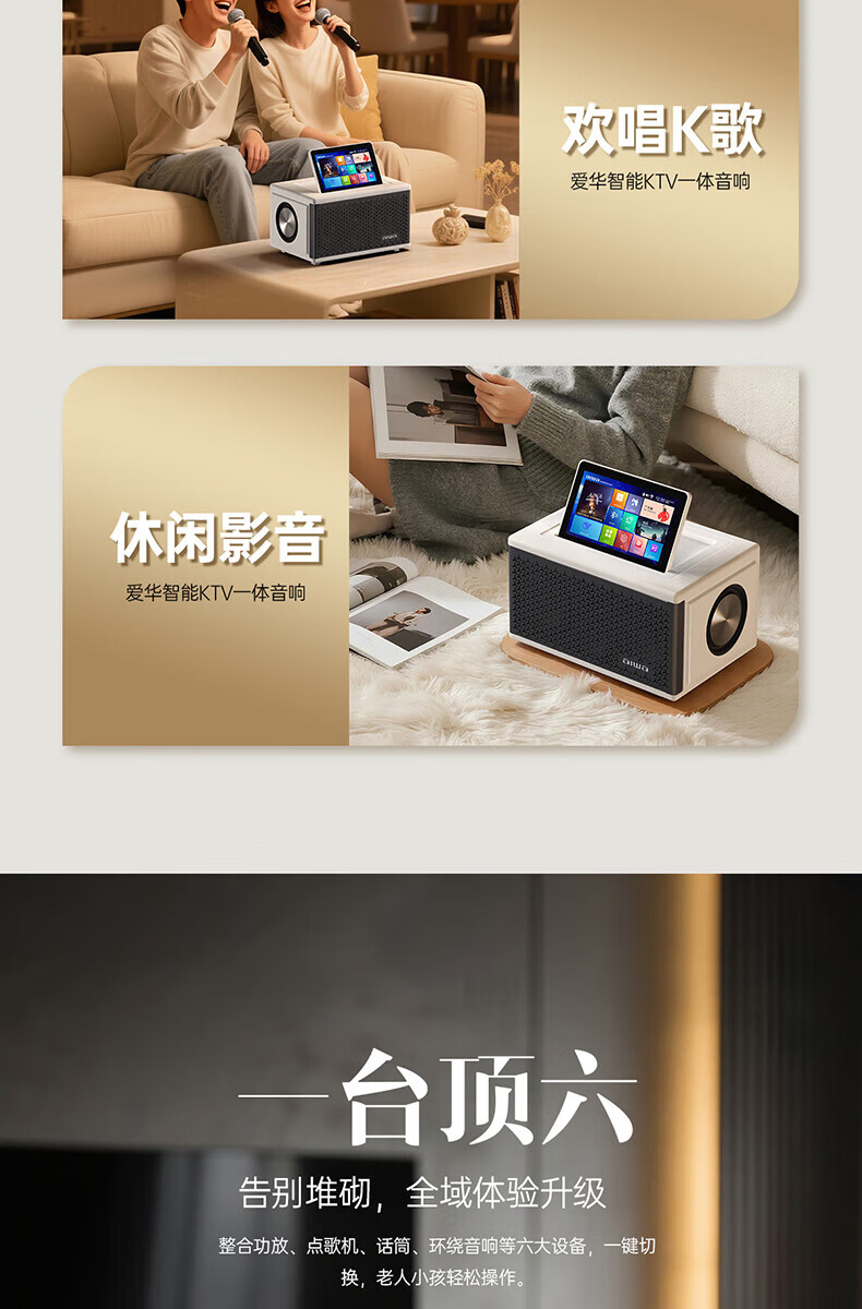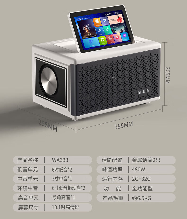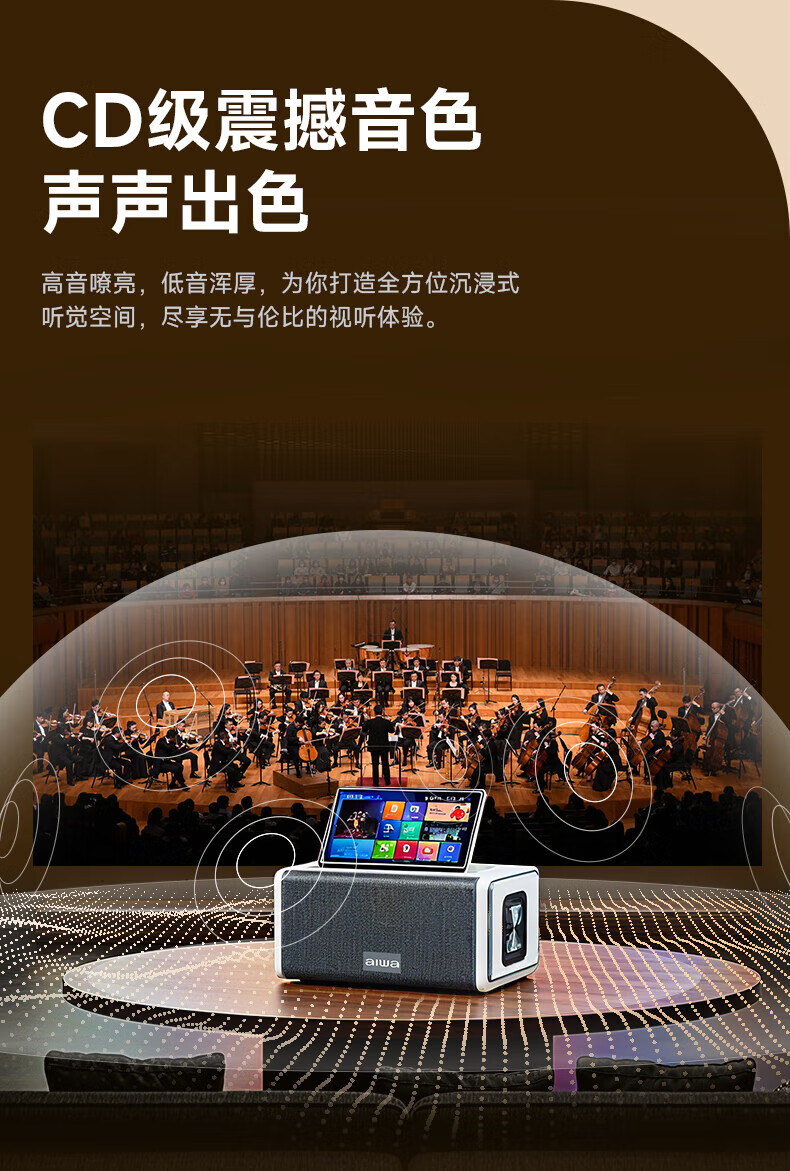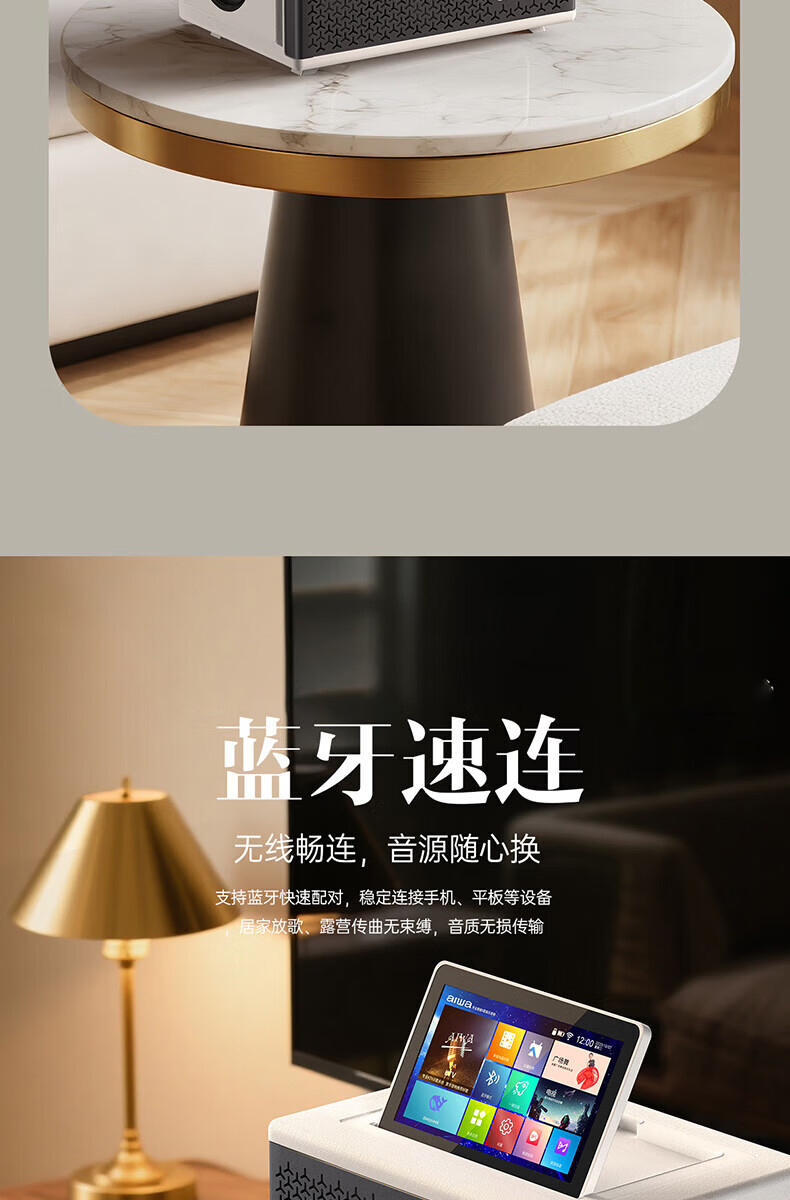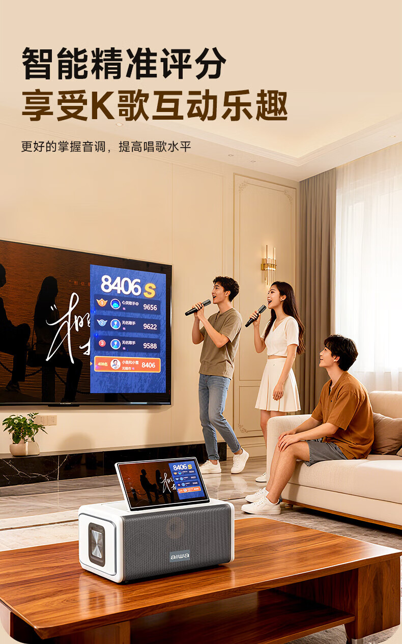 aiwa【2025新款】爱华家庭KTV音响套装户外广场舞便携式带屏点歌机一机多用蓝牙音响电木吉他乐器音箱 【14吋带屏点歌机】6个喇叭+KTV系统+广场舞+90万歌库 官方正品