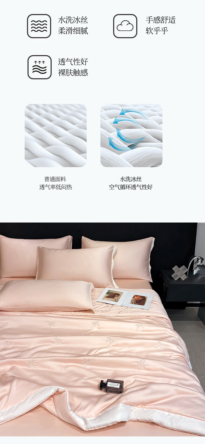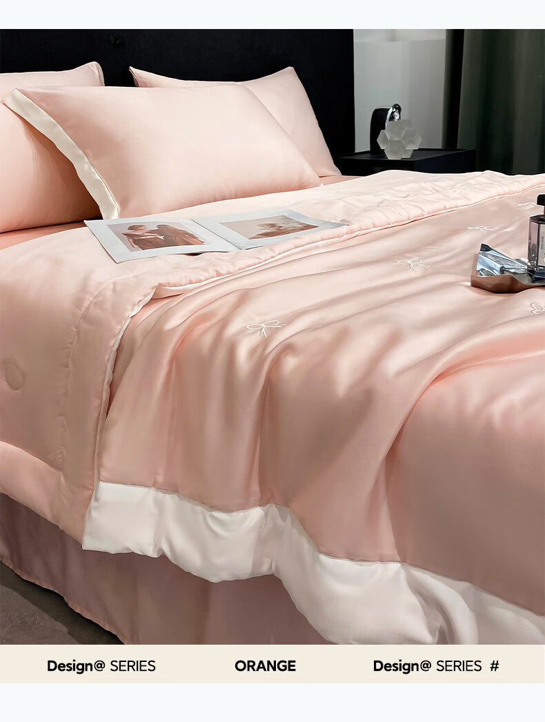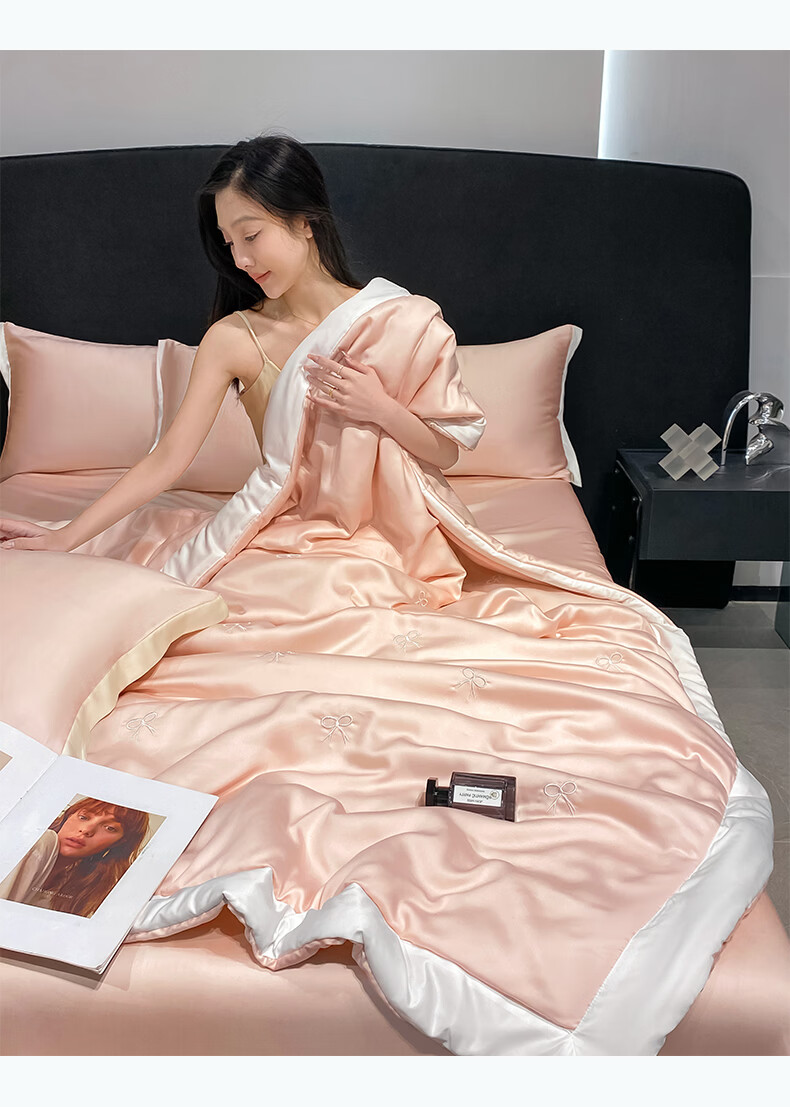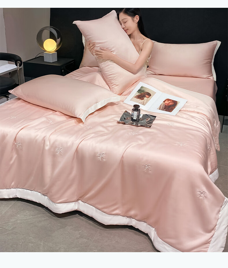 唐纳家纺冰丝印花夏凉被印花空调被夏凉被单人双人夏季薄被芯可机洗爆款 冰丝夏被-蝴蝶结-奶油粉【丝滑裸睡】 150*200cm【单夏被 裸睡】
