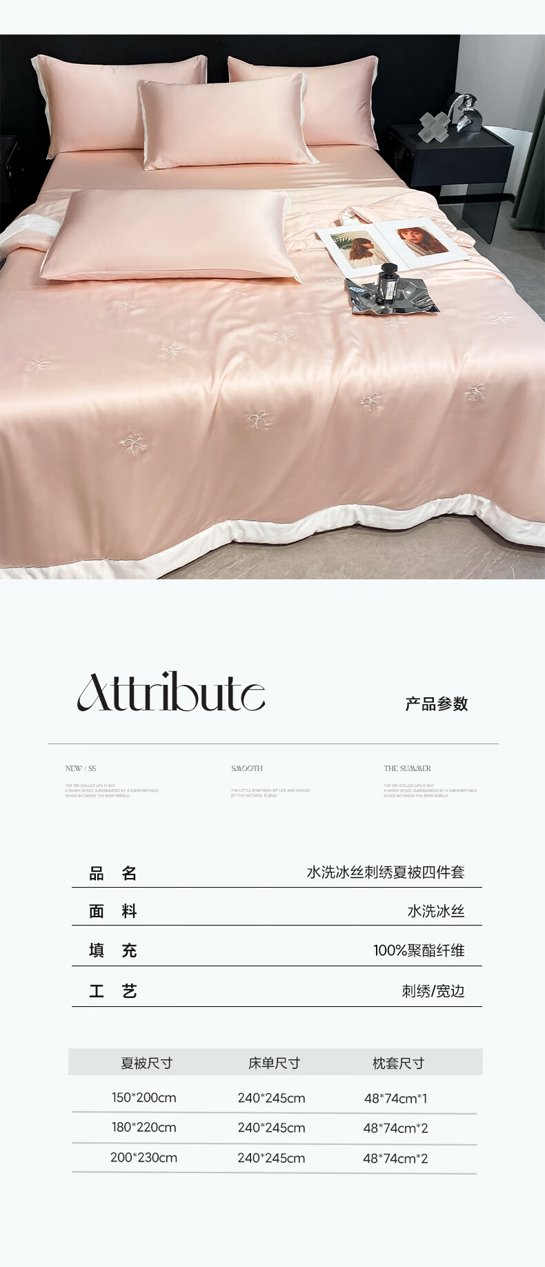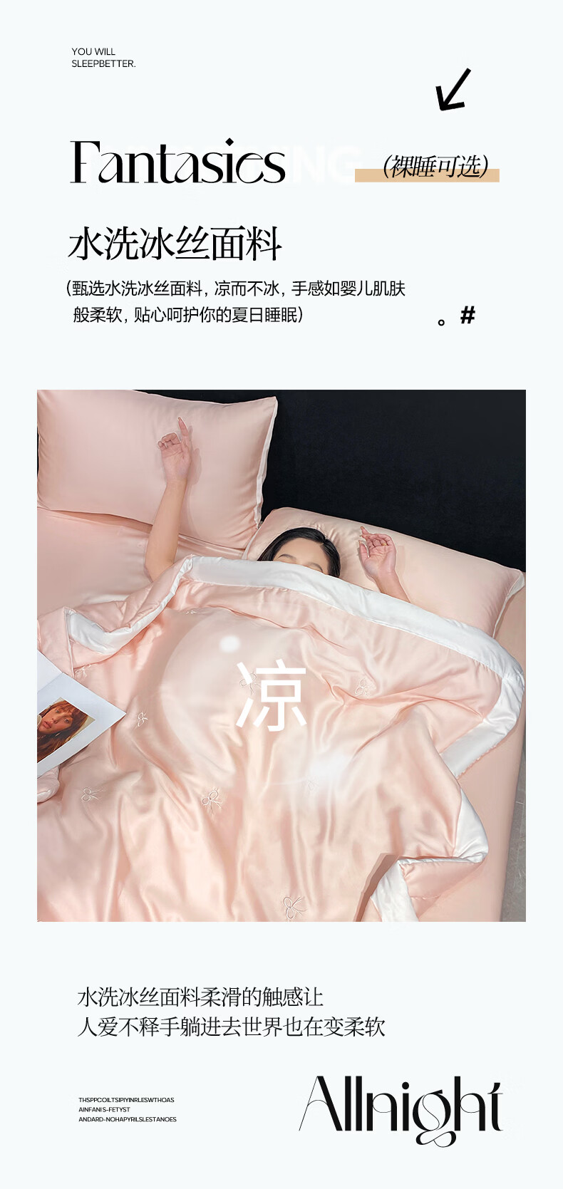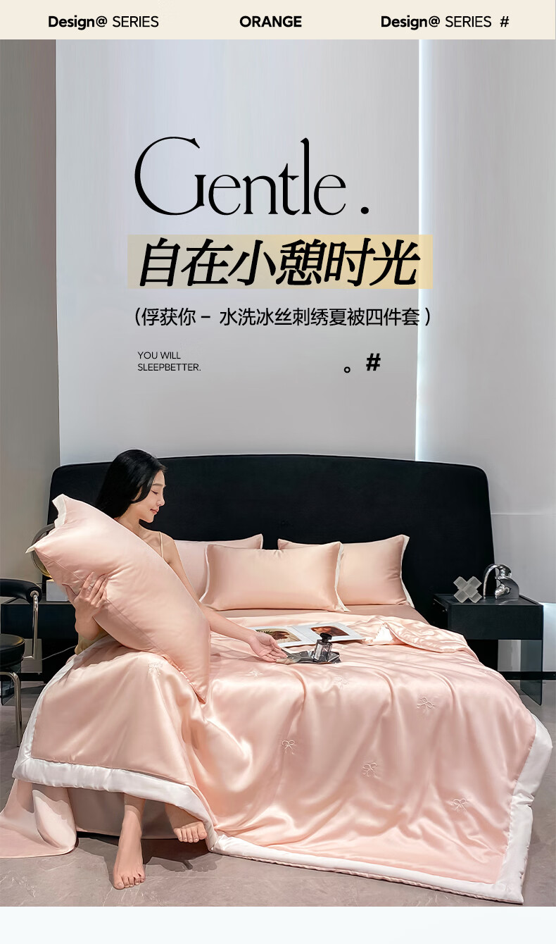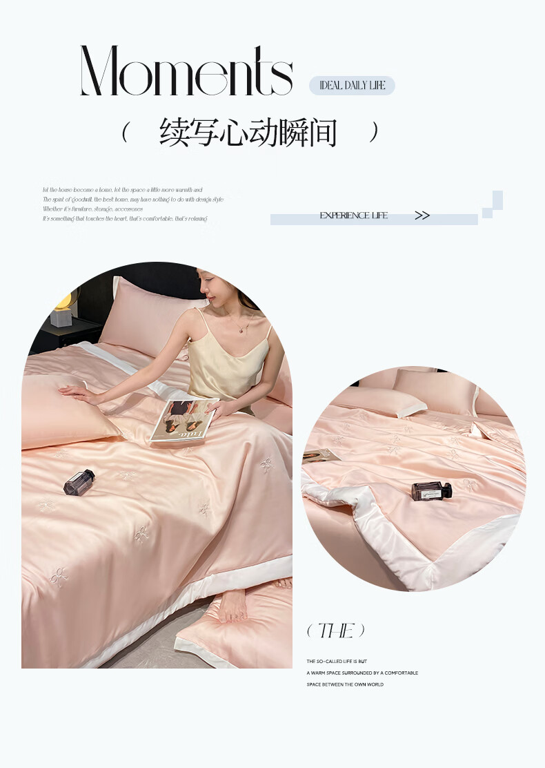 唐纳家纺冰丝印花夏凉被印花空调被夏凉被单人双人夏季薄被芯可机洗爆款 冰丝夏被-蝴蝶结-奶油粉【丝滑裸睡】 150*200cm【单夏被 裸睡】