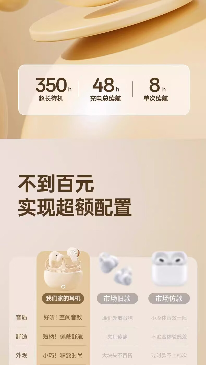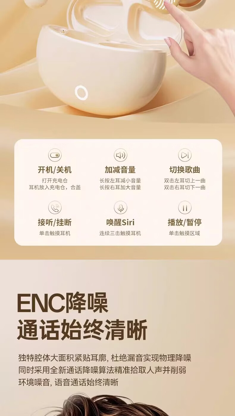音天华柏林之声2026年新款真无线蓝牙耳机入耳式长续航大电量游戏运动通话降噪高音质适用于小米华为苹果 圣洁白【蓝牙5.4芯片-杜比音效-ENC智能AI降噪】