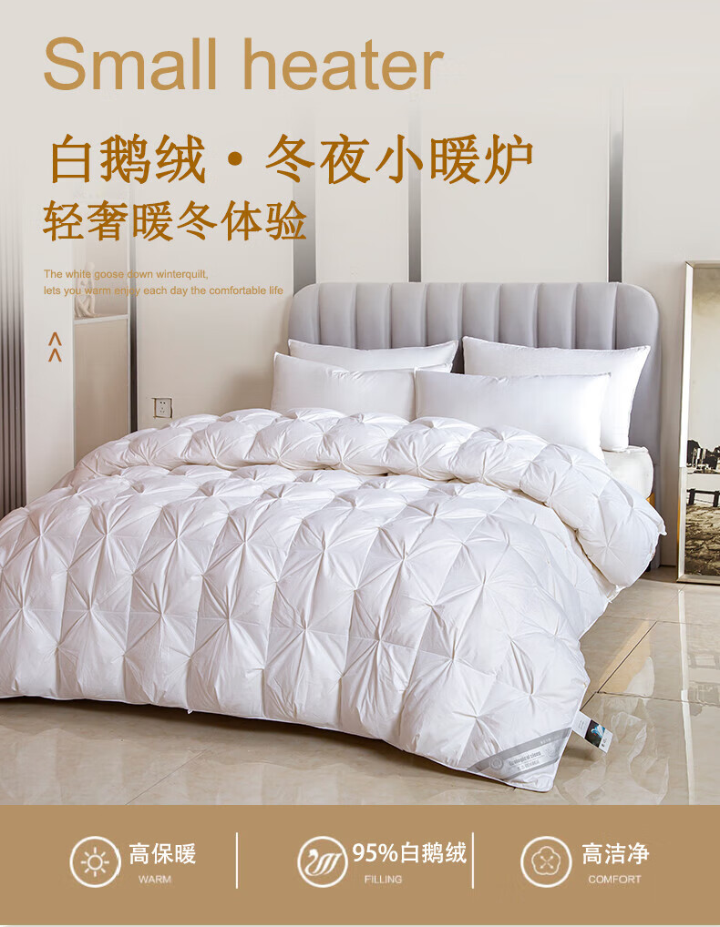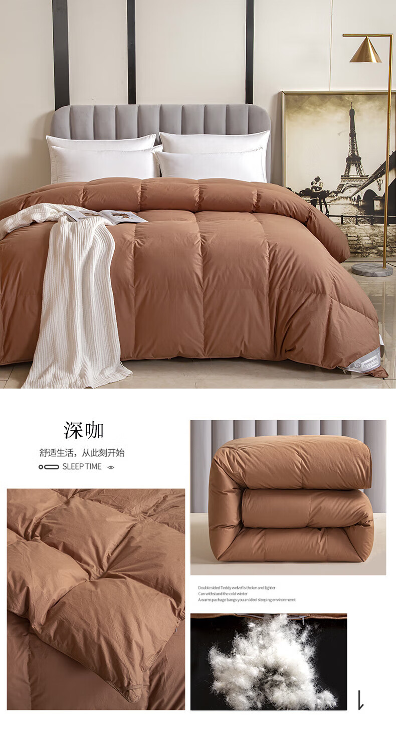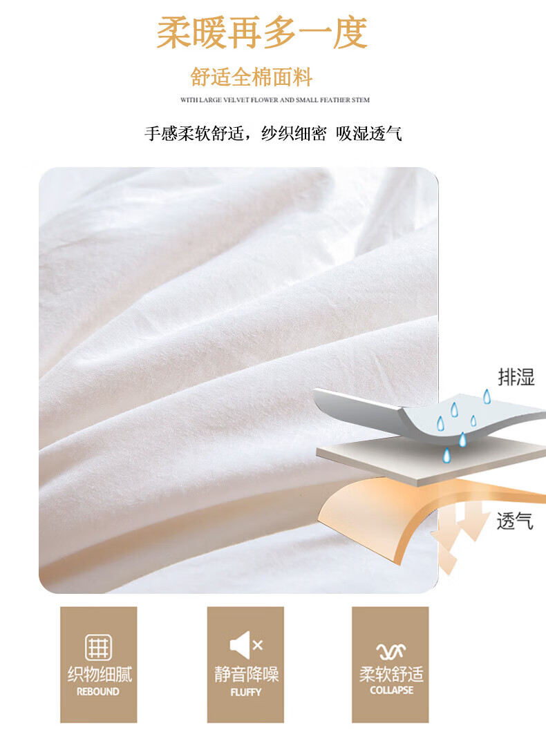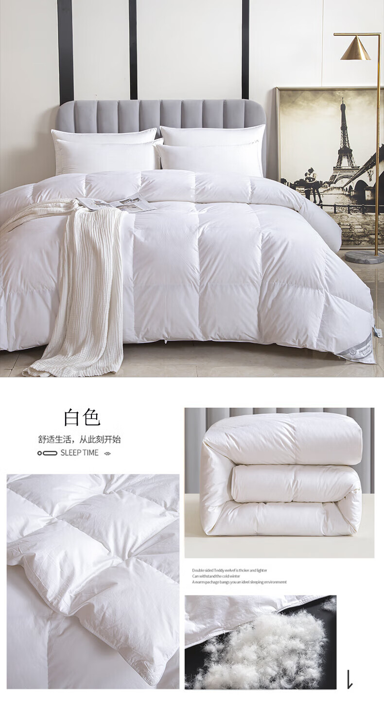 恒源祥扭花平格羽丝绒被冬季白鹅绒冬被8斤加厚保暖被单人春秋被空调被 平格-白色 180x220cm【6斤春秋被】